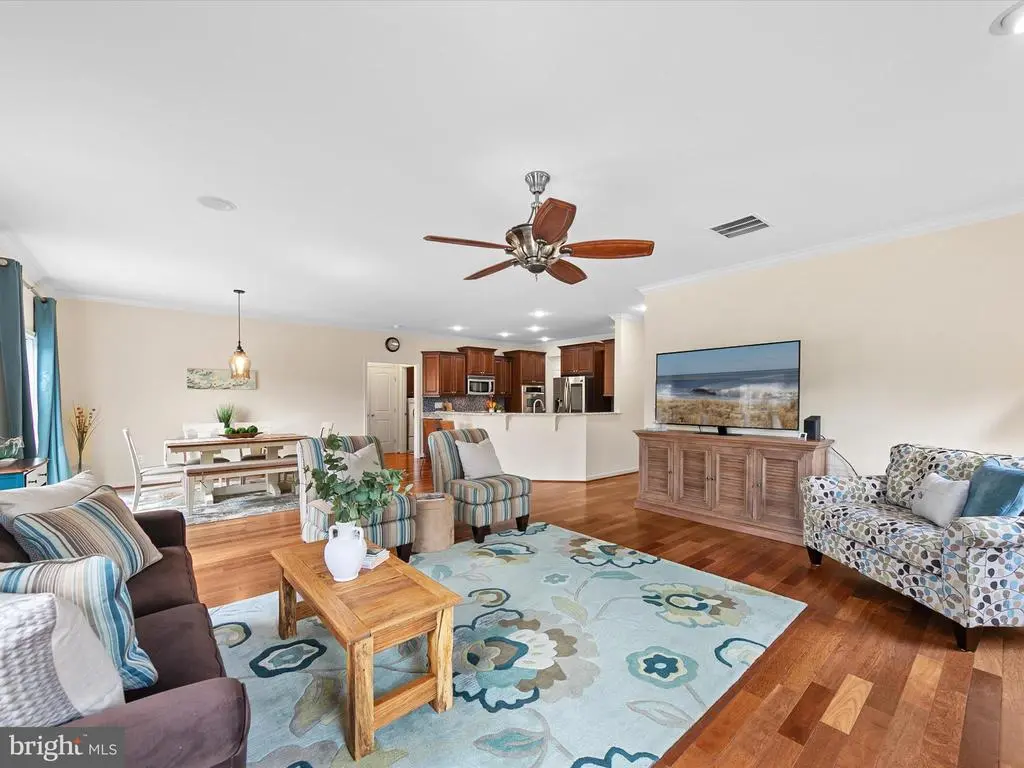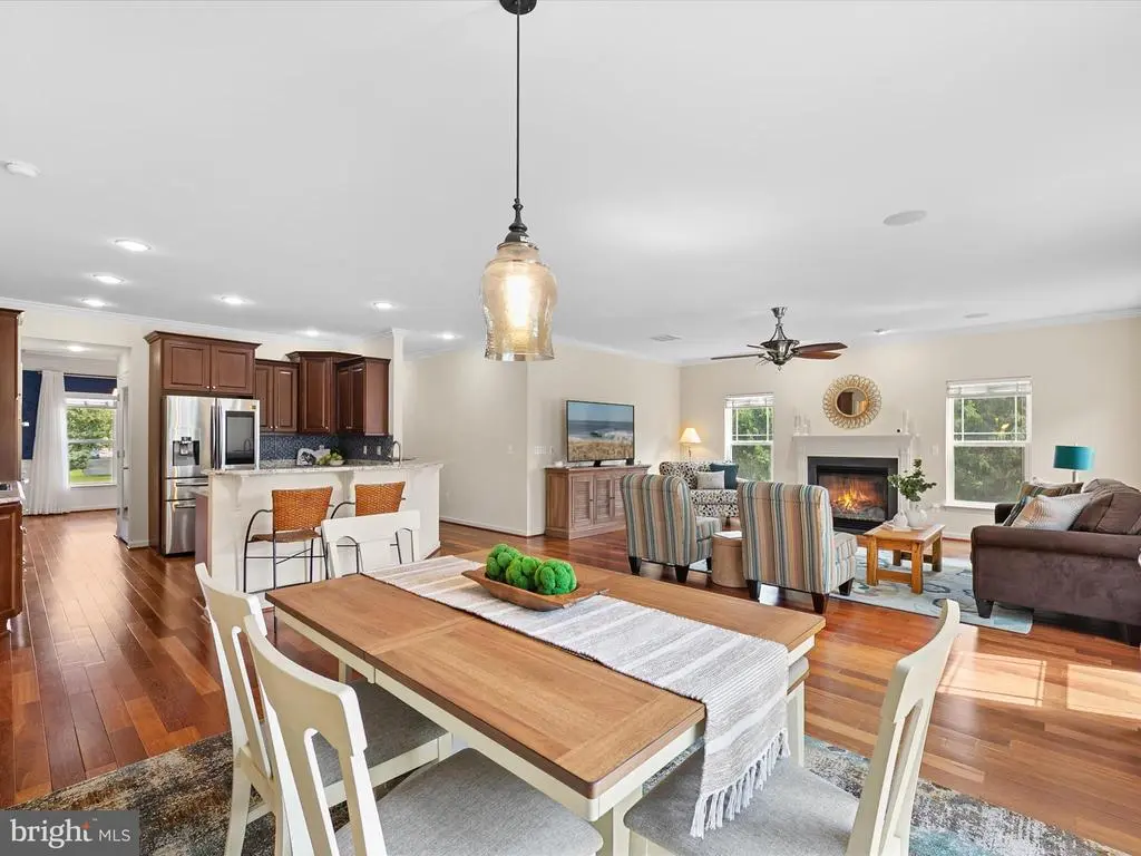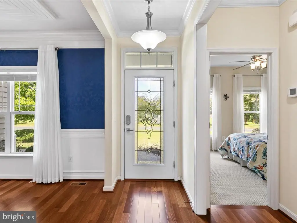 Introducing 18963 Beaver Creek Trail, an elegant residence perfectly positioned on a spacious corner lot in the established Trails at Beaver Creek community. Just minutes from the resort towns of Lewes and Rehoboth Beach and the historic charm of Milton, this location offers the best of coastal Delaware living—beaches, shopping, dining, entertainment, and endless miles of shoreline to explore. Originally built as the community’s model home, no detail was overlooked in creating this showcase of craftsmanship and style. From the moment you arrive, the lush custom landscaping and attention to detail set the stage for what awaits inside. A welcoming covered entry opens to three levels of thoughtfully designed living and entertaining spaces. Inside, architectural details abound, precise millwork, crown molding, wood ceilings, and gleaming hardwood floors carry throughout the main level, reflecting the home’s superior build quality. At the heart of the home lies the gourmet kitchen, appointed with rich 42-inch cabinetry, sparkling granite counters, and a full suite of energy-efficient stainless-steel appliances. A deep walk-in pantry with custom built-ins provides a place for every culinary tool, making this space as functional as it is beautiful. The kitchen flows seamlessly into the inviting living room, where family and friends can gather, or enjoy casual meals at the breakfast bar. For formal occasions, the dining room makes a lasting impression with paneled millwork walls and a wood medallion ceiling accented by a striking light fixture. The main-level primary suite offers a private retreat, spacious enough for a sitting area or home office. The spa-like ensuite bath features dual vanities separated by a custom storage tower, an expansive walk-in shower, and two large walk-in closets, one with custom built-ins. Two additional guest bedrooms, laundry room with utility sink and storage and a well-appointed hall bath complete this level. Upstairs, a cozy loft-style family room sits at the center of two more guest bedrooms and a full bath, creating the perfect space for guests or extended family. The home’s lower level is nothing short of remarkable. A finished walk-out basement with custom woodwork and unique spaces offers limitless possibilities, an entertainment lounge, home gym, hobby room, or game space, really you could do it all. With its open design and detailed craftsmanship, this level is ready to adapt to your lifestyle. Step outside and the backyard reveals a park-like escape. Blooming crepe myrtles, magnolias, and landscaped gardens frame serene pond views, complete with the soothing sound of a fountain. The elevated deck provides multiple options for outdoor living and entertaining. As the builder’s original model, this home was designed to impress, and it continues to stand as a true showstopper—a blend of timeless craftsmanship, versatile living spaces, and a stunning setting near Delaware’s most treasured coastal towns.
