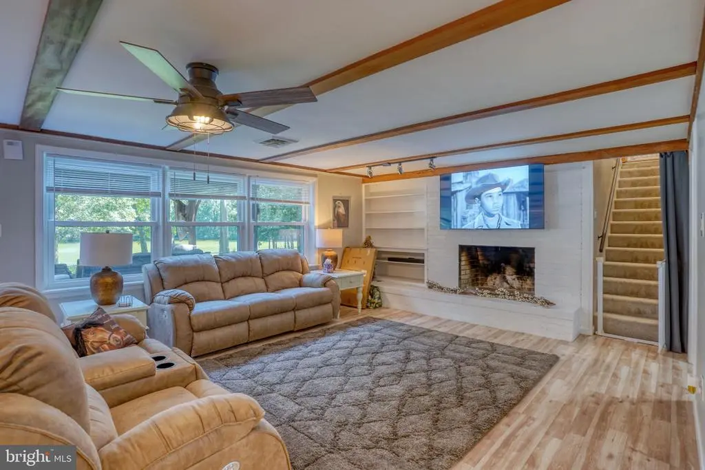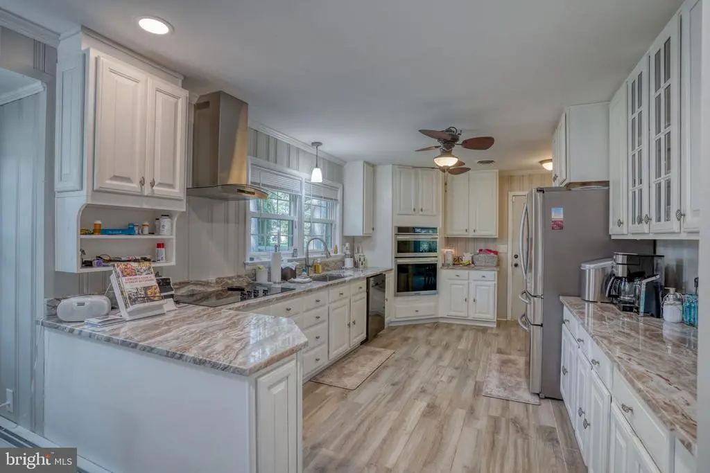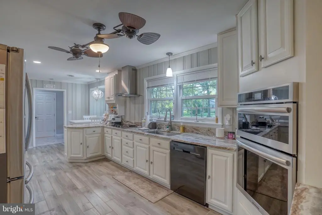 Welcome to WATERFRONT Living! This charming 3,000+or- sq. ft. brick ranch home with finished walk-out basement. The 1st floor features 2 ensuite bedrooms, each with newly updated tile baths. The living room has great views of the water, with a wood burning fireplace surrounded by beautiful built-ins. The kitchen features, an eat-in dinette, pantry and a new microwave/air fryer/oven combo with adjacent powder room. Finally there's a full garage and large tile screened porch that finish off the 1st floor! The 2nd floor features another living room with a fireplace, washer & dryer, a kitchenette with large pantry and dining room. Down the hall are 2 more bedrooms with a full bath making this an ideal area as an in-law suite. Exit onto the large tile patio with gazebo and 10' x 20' dip pool. When you leave the fenced in back yard head down to your own personal dock or gather around the brick firepit. There's plenty of paved off street parking up to 10 spaces. Home is offered mostly furnished and includes a golf cart with an acceptable offer. This is "A MUST SEE "? Call to make your appointment today!!The pond allows fishing from your dock or from kayak's, canoes and small boats powered by electric motors. NO HOA