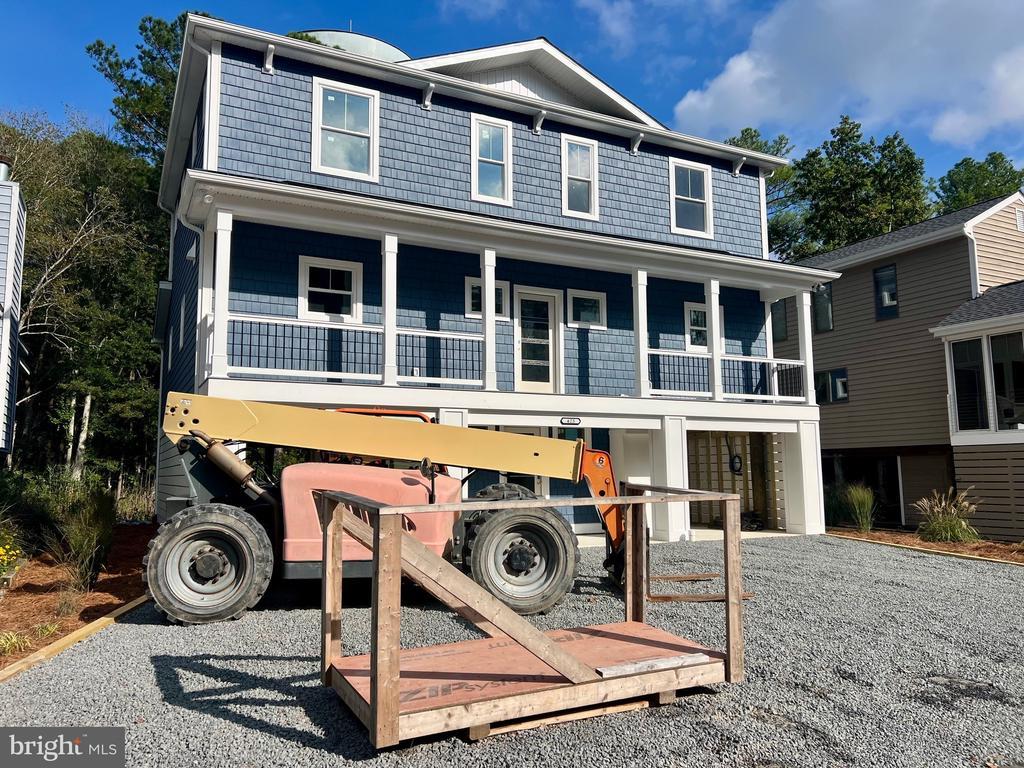 This new construction single family home in South Bethany is nearing completion and will be ready for you to enjoy soon. Built by a local builder that has been building in the area for nearly 50 years you will notice the attention to quality and detail as soon as you walk inside this property. Entering the ground level you are greeted with an abundance of storage and a custom elevator servicing all 3 floors. Passing through the foyer into the storage area you will take note of the 18-seer energy efficient heat pumps and the double tank electric hot water heater allowing for plentiful hot water for when the entire family is showering after a day at the beach. The first level of the home also features two car ports that are enclosed with an abundance of maintenance free composite boards to provide privacy as well as protection from the elements. Take the stairs adorning high end and durable luxury vinyl plank treads to the 2nd floor where you are greeted with a large great room featuring 9ft ceilings decorative crown molding. The living room leads to a screened in deck which then leads to an outdoor deck. Back inside the chef in your family will feel right at home in the large kitchen that includes black stainless appliances, quartz countertops, and a large island. The kitchen leads to a large deck spanning the front of the home. Additional outdoor space for guests to enjoy their coffee and breakfast each morning. This floor also features a half bath for guests to use and the primary bedroom suite. The primary bedroom has two closets and a super-sized bathroom with dual vanity, custom tile shower with rainfall showerhead, and a linens closet. Takes the stairs or elevator to the 3rd floor of the home that includes 3 bedrooms and 2 additional bathrooms. One of the 3 bedrooms is a second primary suite including a walk-in closet as well as a stunning attached bath appointed similarly to the 2nd floor primary bath. The 2 additional bedrooms share a Jack and Jill bathroom. This level also includes a laundry room with folding area and laundry sink. All rooms including closets have crown molding. Additional features include framers' series 2x12 framing on the first floor, zip walls that were taped and then the entire waterproof building was then wrapped for extra efficiency and wrapping the front pilings with decorative composite board to enhance the Architectual appearance of the home. Finally, one of the best features of the home is a large private outdoor shower with hot and cold water. Current property taxes based on land assessment only.