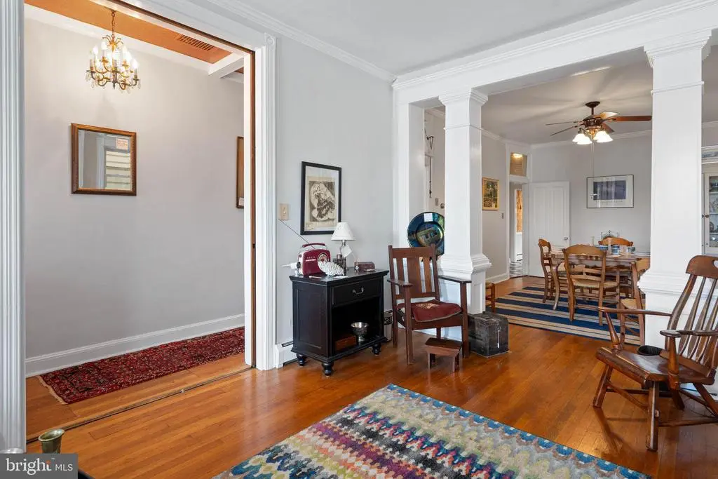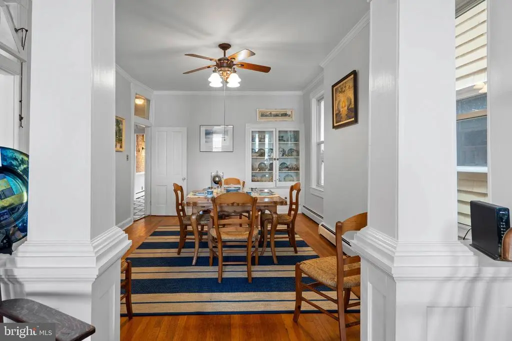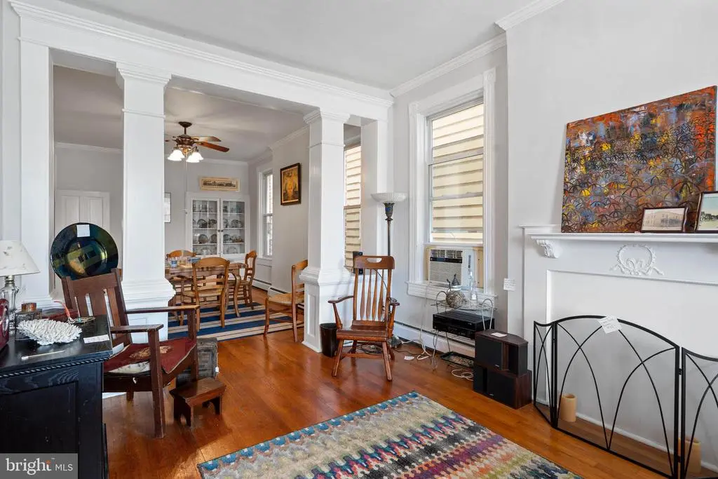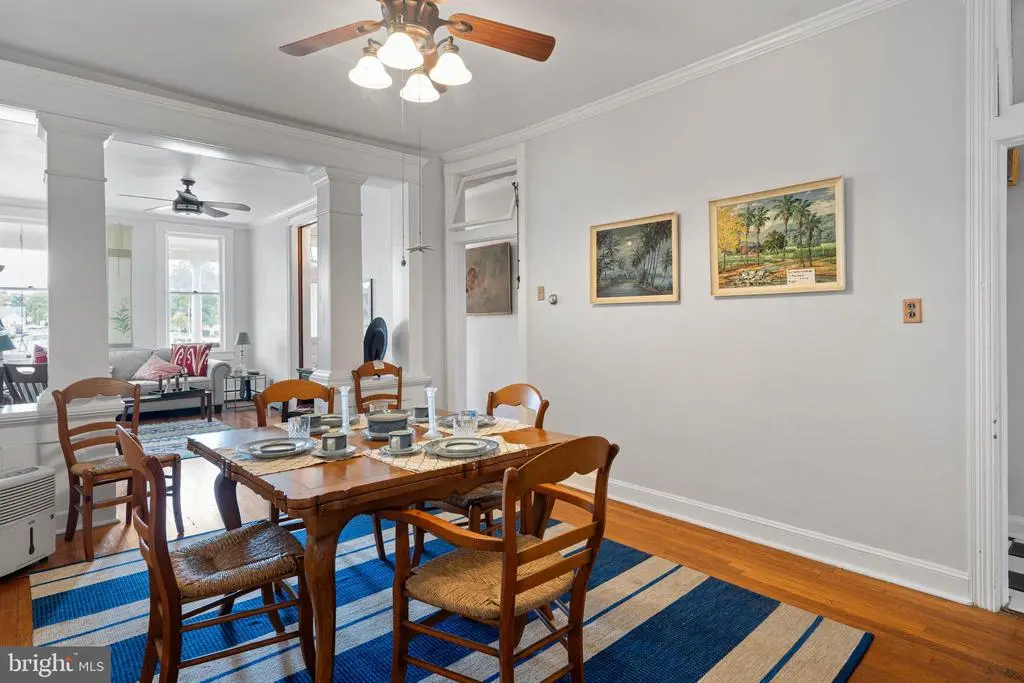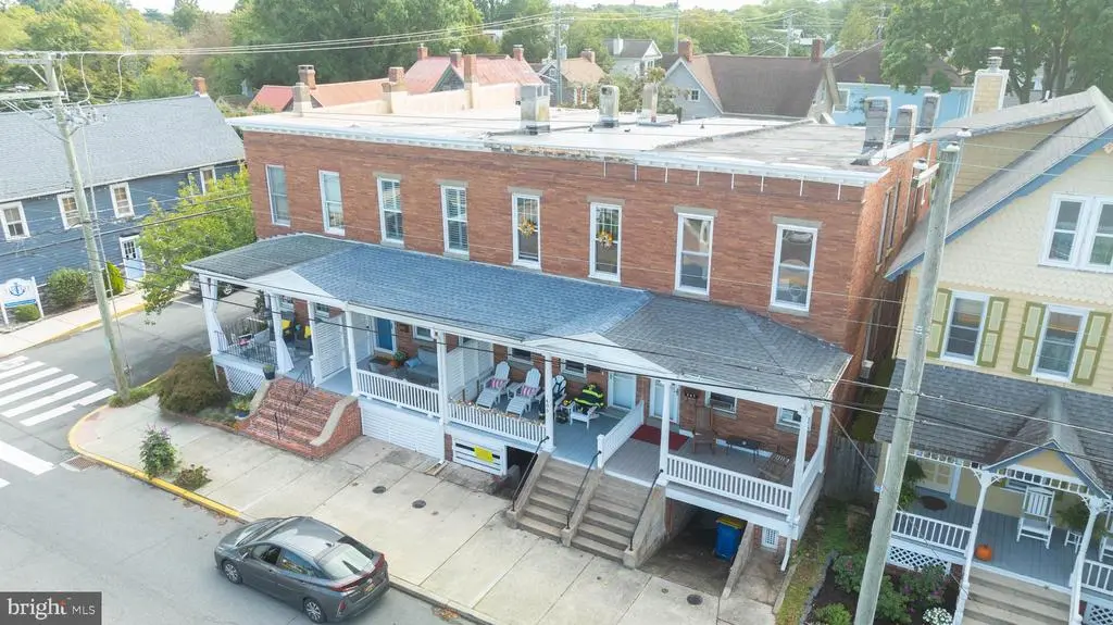 Welcome to Doctors' Row Historic, a limited commercial/residential Arts Gem. Brick with 10' ceilings, original architectural details: Chestnut Pocket doors, Bull's-eye wood trim, Arches, Transom windows above the doors, Built-in Cabinets, Oak and heart Pine floors. Large Bedrooms, Exposed brick in a large eat-in kitchen, a full unfinished walk-out basement, a Charming English garden with exotic Japanese Hydrangea. Expansive west-facing front porch with columns. This lovely historic home is not in the Flood zone. Less than 1 mile to Savanna beach. This beautifully preserved 3-bedroom, 1.5-bathroom gem with a full basement located in the highly sought-after Historic District of downtown Lewes. Just steps from premier dining, boutique shopping, pristine beaches, and scenic boating opportunities, this home offers the perfect blend of classic charm and coastal convenience. Perched a few stairs up from street level, the classic front porch welcomes you to this delightful home where you will find a warm and inviting living room featuring beautiful wood floors gleaming hardwood floors and timeless architectural details that speak to the home's rich heritage. Adjacent is a formal dining room accented by a charming built-in cabinet, perfect for entertaining or showcasing your favorite pieces. The kitchen is full of character, boasting black and white checkerboard tile flooring, a stamped tin ceiling, and a window over the sink that fills the space with natural light. A door off the kitchen leads to a cozy sunroom—ideal for morning coffee or an afternoon read. A convenient powder room completes the main living level. Upstairs, you’ll find two comfortable bedrooms with continued wood flooring and a full bathroom. This home blends timeless details with functional living space—ready for your personal touch. With no rental restrictions, this property offers excellent potential as a vacation rental, full-time residence, or weekend retreat. Enjoy being just a short drive to Lewes and Rehoboth Beaches and miles of the beautiful Delaware shoreline. Experience the best of coastal living with the charm of historic Lewes right at your doorstep.