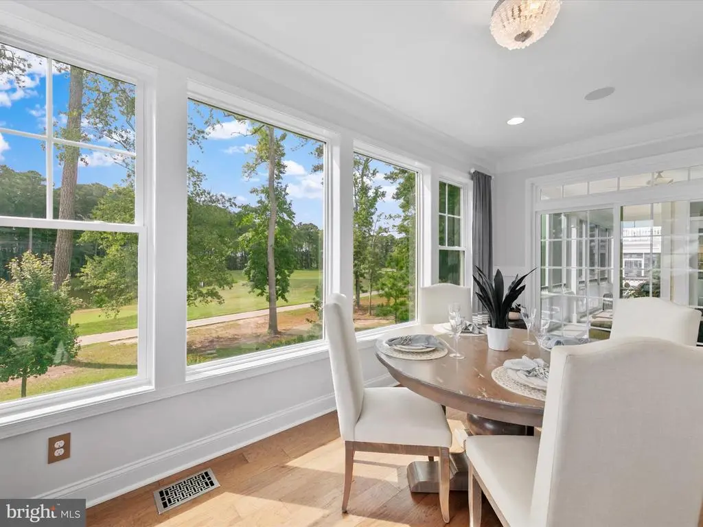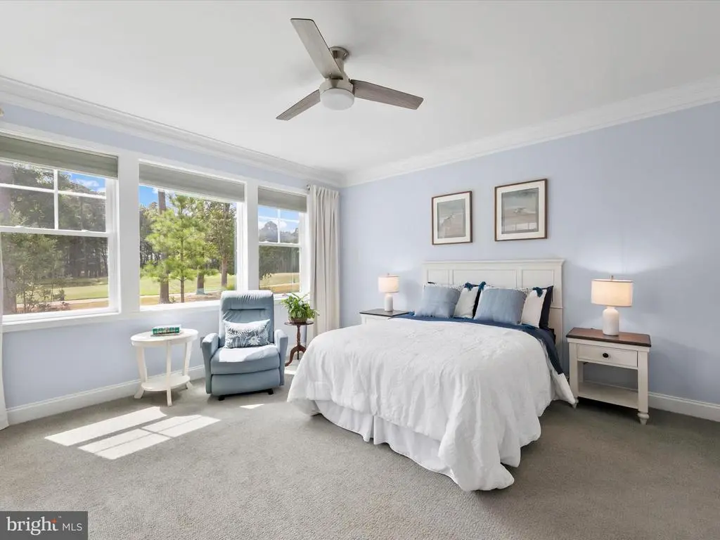 Nestled in the sought-after enclave of North Haven- a premier collection of only single-family homes with no thru traffic. This magnificent, fully furnished coastal-style residence offers turn key luxury living on the 4th tee. Just a short stroll to Bayside’s unmatched amenities, this home places you in the heart of one of the East Coast’s most celebrated resort communities- Bayside’s award-winning, amenity-rich neighborhood, home to the prestigious Jack Nicklaus Signature Golf Course. Cruise in the 6 Seat Golf cart which conveys with property. From the moment you arrive, lush landscaping and a lighted covered front porch set the tone for the elegance inside. This stunning 5-bedroom, 3.5-bath home boasts premium upgrades throughout, including a whole-home surround sound system (inside and out), extensive custom millwork with shiplap and board & batten accents, tray ceilings, crown moldings, plantation shutters, recessed and timed lighting, and more. The heart of the home is the chef's kitchen, an entertainer’s dream. Custom display cabinetry with under-cabinet lighting, expansive Quartz counters, a ceramic tile backsplash, oversized island with storage and breakfast bar, GE Monogram appliances, planning center, and walk-in pantry combine to create both beauty and function. The adjoining dining room, wrapped in crown molding and custom lighting, offers sweeping views and is ideal for both intimate dinners and festive gatherings. The open floor plan flows seamlessly into the great room, crowned with an 18’ vaulted ceiling, dramatic shiplap feature wall, and walls of windows that flood the space with natural light. Step through atrium doors to the EZ Breeze three-season porch, where panoramic views of the 4th tee, pond, and Roy Creek await, an idyllic spot to relax or entertain. The main-level primary suite is a private retreat with tray ceiling, recessed lighting, dual walk-in closets with custom built-ins, direct access to the porch, and a luxe spa-inspired bath featuring dual vanities separated by a custom tower, a soaking tub, and a substantial tiled shower beneath a tray ceiling. Also on this level: a second bedroom (currently an office), an oversized laundry room, and a stylish powder room. The lower level offers a remarkable private living space, perfect for guests or multigenerational living. Behind French doors, discover a full kitchen, dining/living area, bedroom with ensuite, plus direct access to the outdoor living spaces. Two additional bedrooms, a well-appointed hall bath, second laundry center, and a custom motor enthusiast’s dream garage, fully outfitted and truly a must-see, complete the lower level. The outdoor experience is equally impressive. Overlooking the golf course yet thoughtfully designed for privacy, this custom-built retreat features a built-in island kitchen, multiple gathering zones, lush planters, and tranquil fountains, all creating an atmosphere of relaxation and enjoyment. Bayside provides the ultimate maintenance-free lifestyle with a stunning array of amenities: multiple outdoor pools with splash zones and snack shacks, an indoor pool and hot tub, state-of-the-art fitness centers with classes, saunas, locker rooms, Har-Tru tennis courts, pickleball, basketball, sand volleyball, playgrounds, trails, dog park, community lakes, kayak storage, fishing pier, year-round security, and a beach shuttle. Dine at Signatures or 38 Degrees overlooking the bay, and enjoy concerts at the Freeman Arts Pavilion, all just steps from your door. North Haven community pool is for the use of Bayside homeowners and guests only- no vacation renters. Extensive list of upgrades and improvements is available in the documents section. Rear yard is eligible to be fenced with black aluminum fencing and a private pool. Additional parking is permitted on the clamshells for guests.