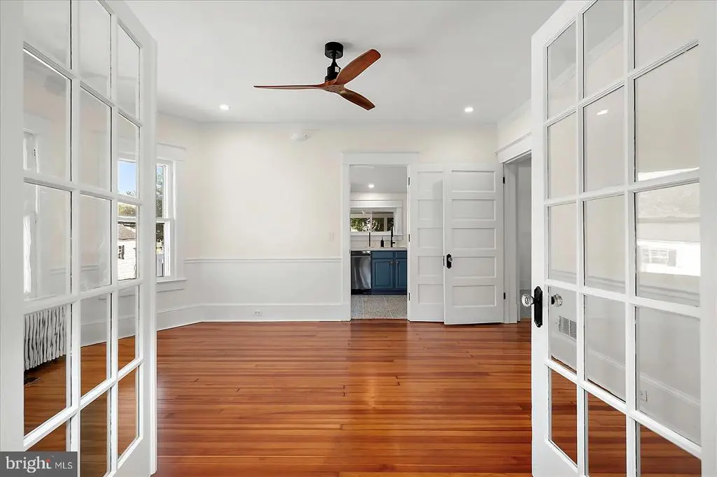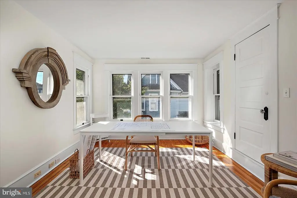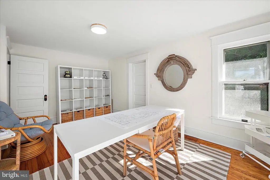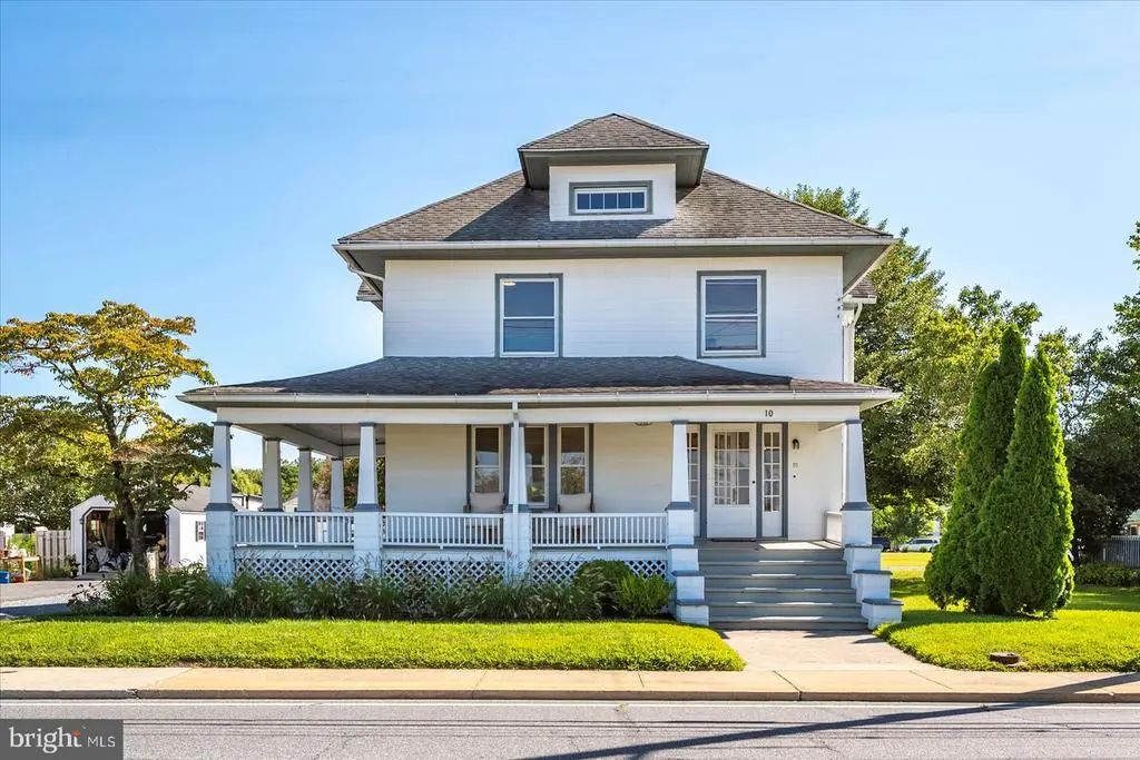 Charming and versatile 3-bedroom, 1.5-bathroom home in the heart of Selbyville, DE with NO HOA fees! This well-maintained property offers a flexible layout perfect for residential living or a professional home office setup. The first floor features a bright living room, a cozy den, a formal dining room, and a convenient half bath off the galley-style kitchenette. Upstairs, you'll find three spacious bedrooms and a full bathroom. The home boasts 9+ foot ceilings and original hardwood floors throughout, adding character and warmth. Additional features include a full attic, a partial full basement for storage or future expansion, and a detached garage. Emergency lighting and exit signs are already installed, making this property move-in ready for either personal or professional use. With its prime location, thoughtful updates, and turn-key condition, this home presents a rare opportunity in Selbyville with no HOA restrictions.