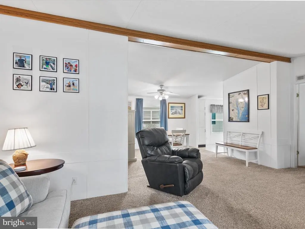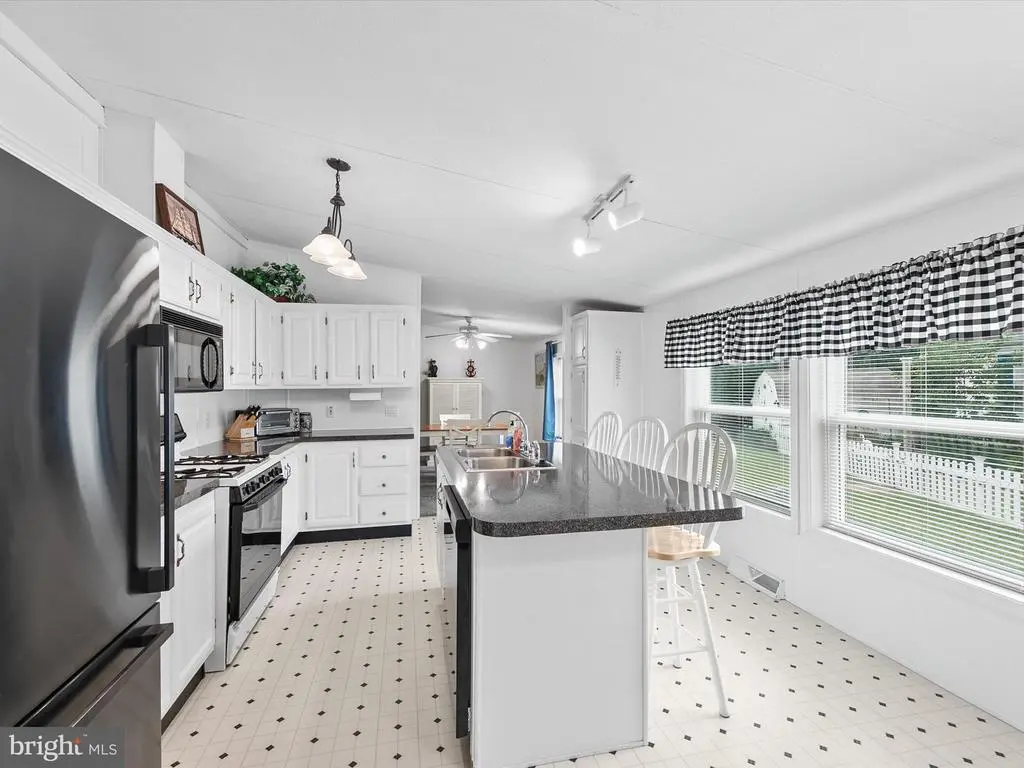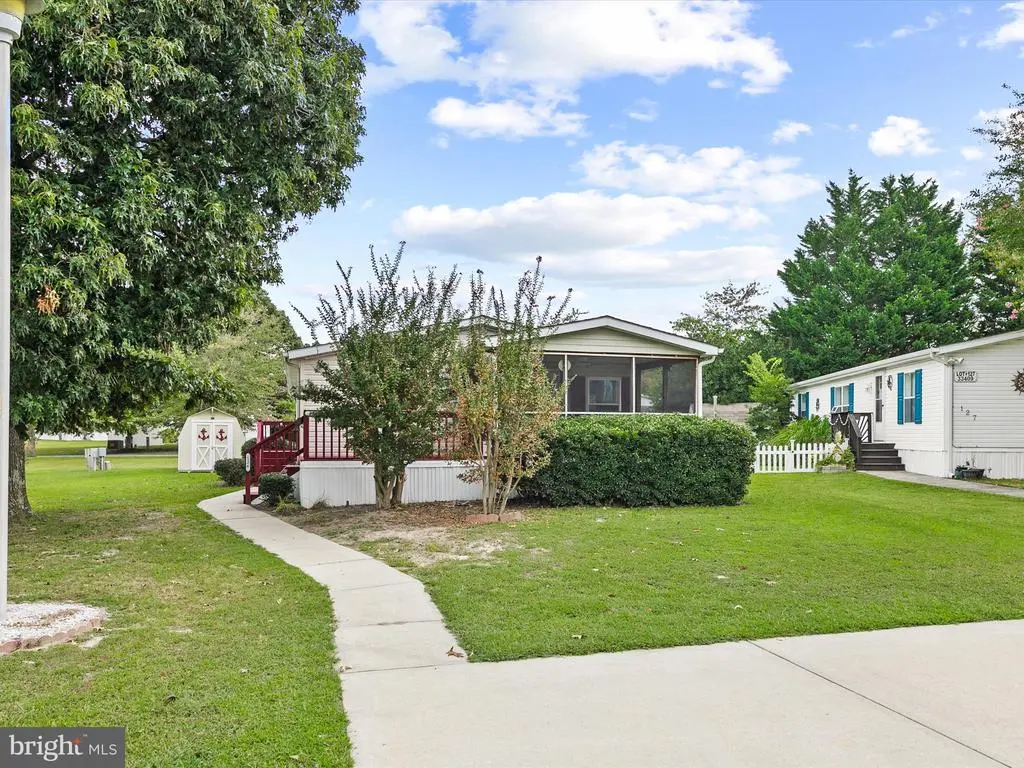 This absolutely lovely doublewide is set on one of this waterfront, marina community’s most desirable courts, with a spacious grassy common area at the center and the community center right across the street. From this spot, you’re just steps to monthly meetings, resident-planned activities like craft fairs, dinners and parties, plus the front pool. The location couldn’t be better! A freshly screened front porch with ceiling fan welcomes you and offers a perfect place for outdoor dining or quiet relaxation, with blooming crepe myrtles for a touch of privacy. Just beside it, a deck gives you even more space to enjoy the outdoors. Inside, the kitchen is beautifully bright and cheerful, with crisp white cabinetry, ample counter space, a large island with bar seating, stainless steel sink and gooseneck faucet, and a suite of appliances including a newer bottom-mount refrigerator, new dishwasher, over-the-range microwave, and gas stove. A full sized laundry pair with a newer dryer is tucked behind bifold doors in the dinette, and there’s also a separate dining room. Vaulted ceilings continue into the open concept dining and living areas, each comfortably sized for you and your guests, with an exposed beam for architectural interest. Bedrooms are generously sized, with the guest rooms offering comfortable space (one large enough for a king). The hall bath has been redone with a new vanity and sink top, elongated toilet, framed mirror, handy storage, and sliding textured glass doors at the step-in shower. The owner’s suite features its own bath with a soaking tub/shower combo, wide vanity, linen closet, and newer toilet. The home has been freshly painted and carpeted thoughout, with new energy-efficient windows (warranty transferable), a new 2025 water heater, and even a new electrical breaker for the AC. Outside, a large shed is perfect for storing beach gear, garden tools, and more. The home is sold furnished and turnkey—the newer furniture, TVs, some kitchenware, window coverings, and more convey (tabletop décor and some wall décor excluded). For peace of mind, the sellers are also including a one-year home warranty! Angola Beach & Estates offers an incredible waterfront lifestyle with two swimming pools, a private floating dock marina, boat ramp on the wide river, storage yard for boats/trailers/rv's, kayak racks, full sized tennis and basketball courts, 2 fun playgrounds, and a fishing pier, all in a friendly waterfront community. Park application is required for residency, approval subject to credit and background checks. Reasonable land lease includes trash, recycling and sewer.