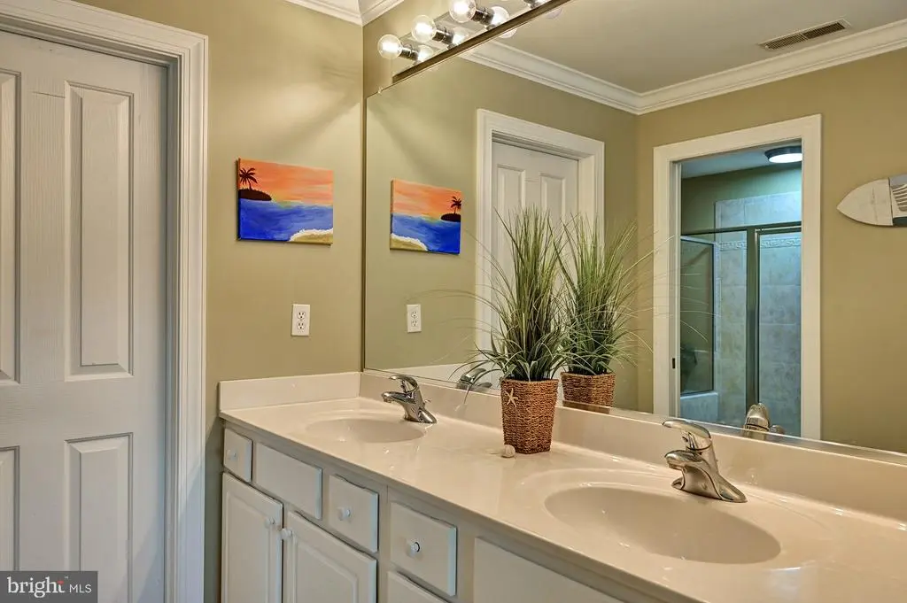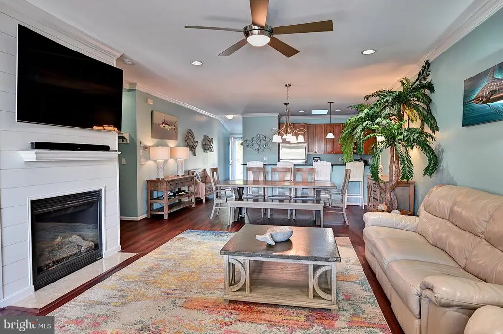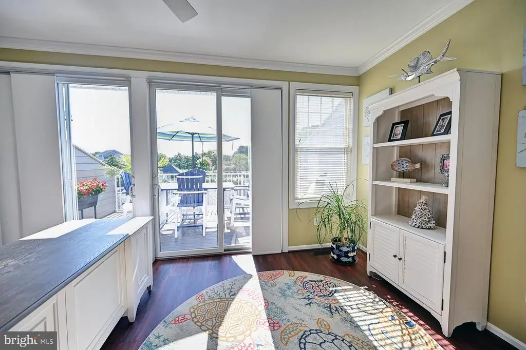 Beautifully furnished townhome with pond water views from the deck, located just 3 miles to the beach! The main floor offers an inviting open floor plan featuring a galley kitchen with a large breakfast bar, dining area, and living room that opens to a spacious sunroom. The upper level features a primary bedroom and bathroom with it's own soaking tub, separate shower, and dual vanity sinks. Just down the hall is a spacious second ensuite bedroom with a full bathroom. The ground level offers the third bedroom ensuite with its own wet bar and full bathroom featuring it's own soaking tub and separate shower. This bedroom also has access to a private screened in porch. The garage provides plenty of room for a vehicle as well as all your beach gear. This home has new LVP flooring in the living area! The community of Bayville Shores offers many amenities including an outdoor pool, baby pool, tennis/pickleball courts, fitness center, stocked fishing ponds, a basketball court, a playground, sidewalks and walking trails, a private beach with a kayak launch, boat ramp, all conveniently located within minutes to Fenwick Island and Ocean City beaches.