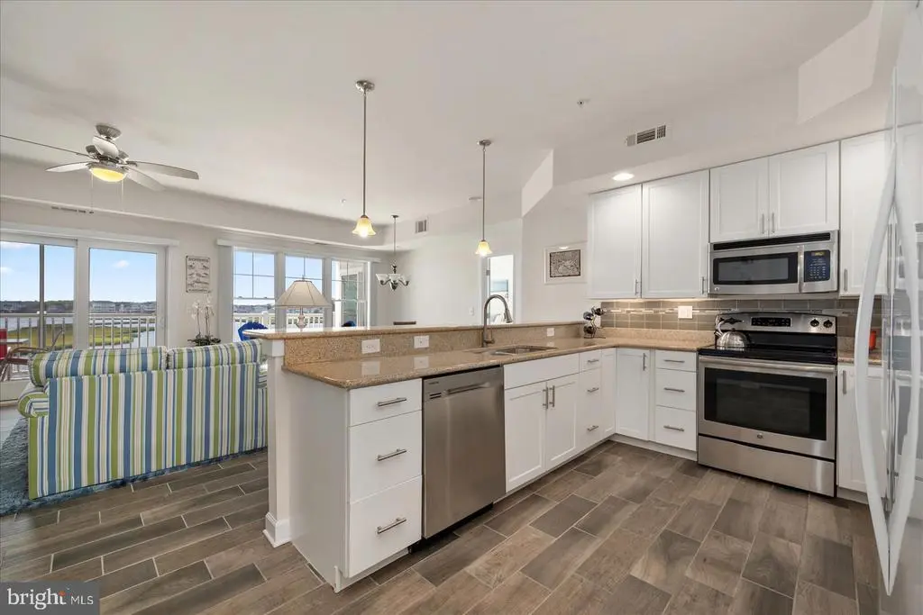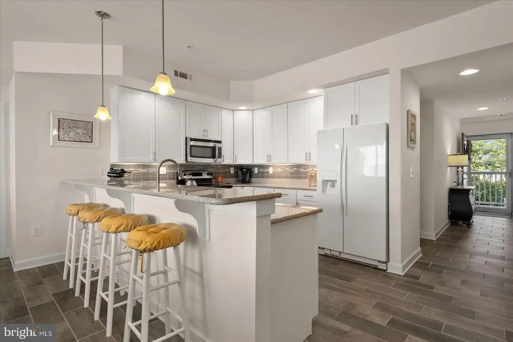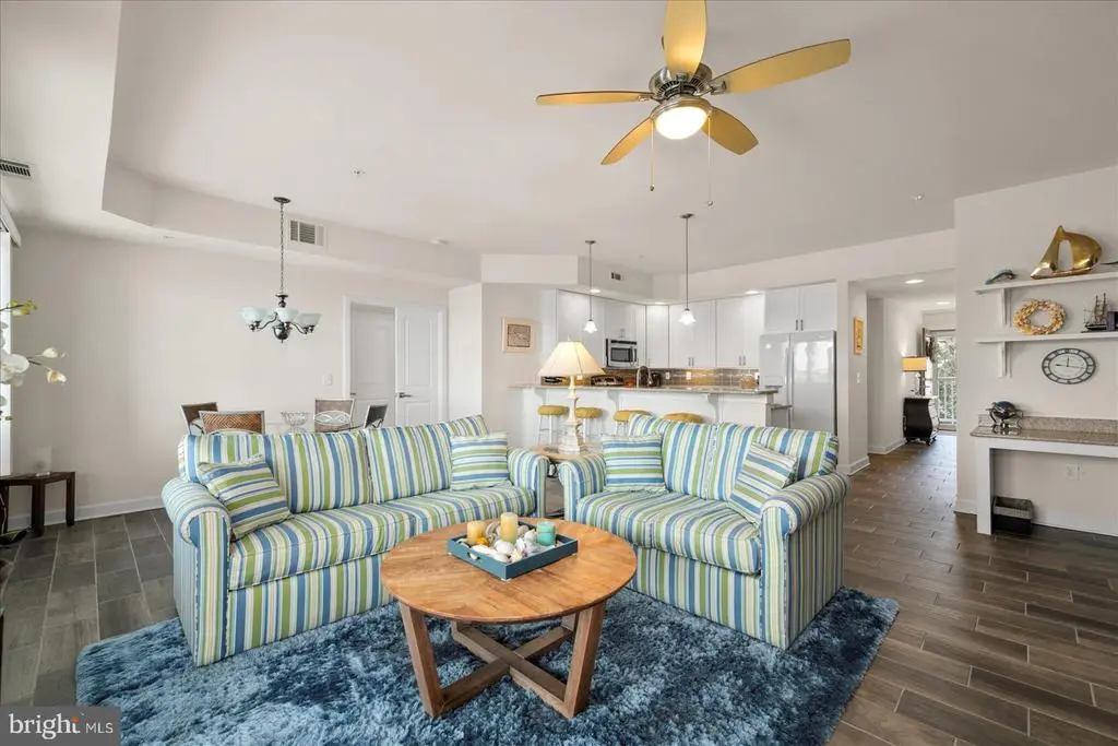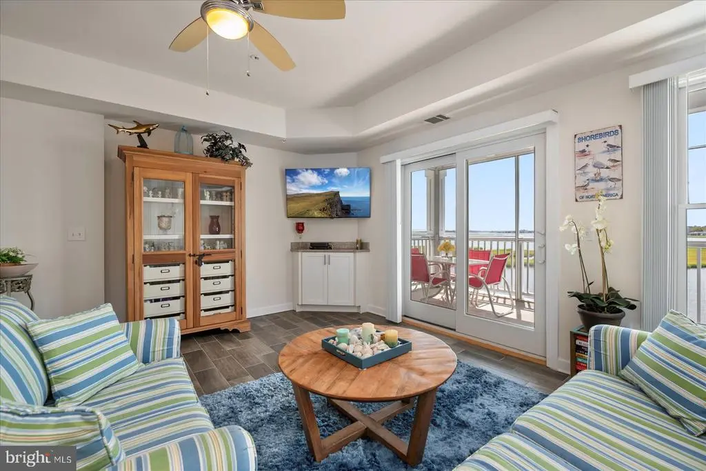 When only the best will do, welcome to Laguna Bay! This spectacular 3-bedroom, 2.5-bath condo offers stunning bayfront living with panoramic water and skyline views, just minutes from Fenwick Island and Ocean City. Enjoy all the benefits of maintenance-free living with low Delaware taxes in a community designed for relaxation and recreation. This beautifully furnished, turn-key 2nd-floor unit is flooded with natural light and offers incredible bay views from nearly every room—including the owner’s suite. The open floor plan is perfect for entertaining, featuring a spacious living area, dining space, and a gourmet kitchen complete with granite countertops, a custom tile backsplash, abundant cabinetry, upgraded appliances, and a breakfast bar with seating for four. A separate work space adds function and flexibility. Step outside to your private screened-in balcony to take in the sunsets or relax on the covered balcony, also accessible from the owner’s suite. The luxurious bayfront primary retreat includes a soaking tub, dual vanities, and a tiled shower with seating. Two generously sized guest bedrooms share a full bath, while a convenient powder room is located just off the main living area. Additional highlights include a full-size laundry room, excellent closet space, and a private ground-level storage locker for all your beach and outdoor gear. Laguna Bay’s amenities are unmatched—launch your kayak or paddleboard from the private sandy beach, enjoy the gated bayfront pool and hot tub, or cast a line off the community pier and dock. Whether you’re looking for a full-time residence, vacation retreat, or investment opportunity, this home has it all. Lovingly maintained by the original owner and never rented, this condo is truly move-in ready. Don’t miss the chance to own a slice of waterfront paradise in Delaware—schedule your private tour today!