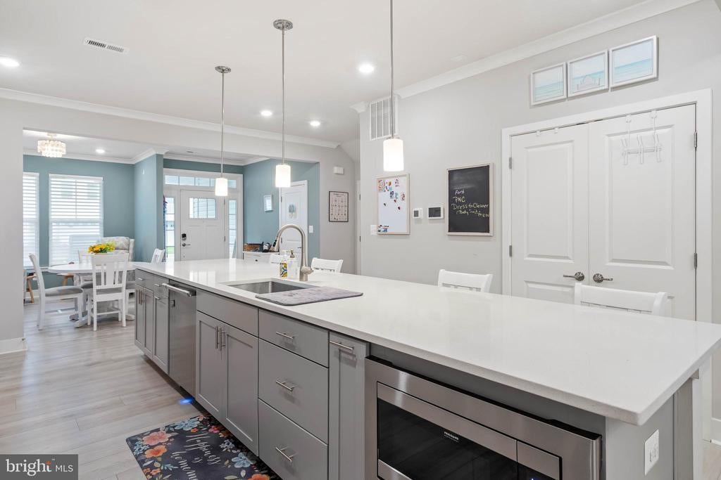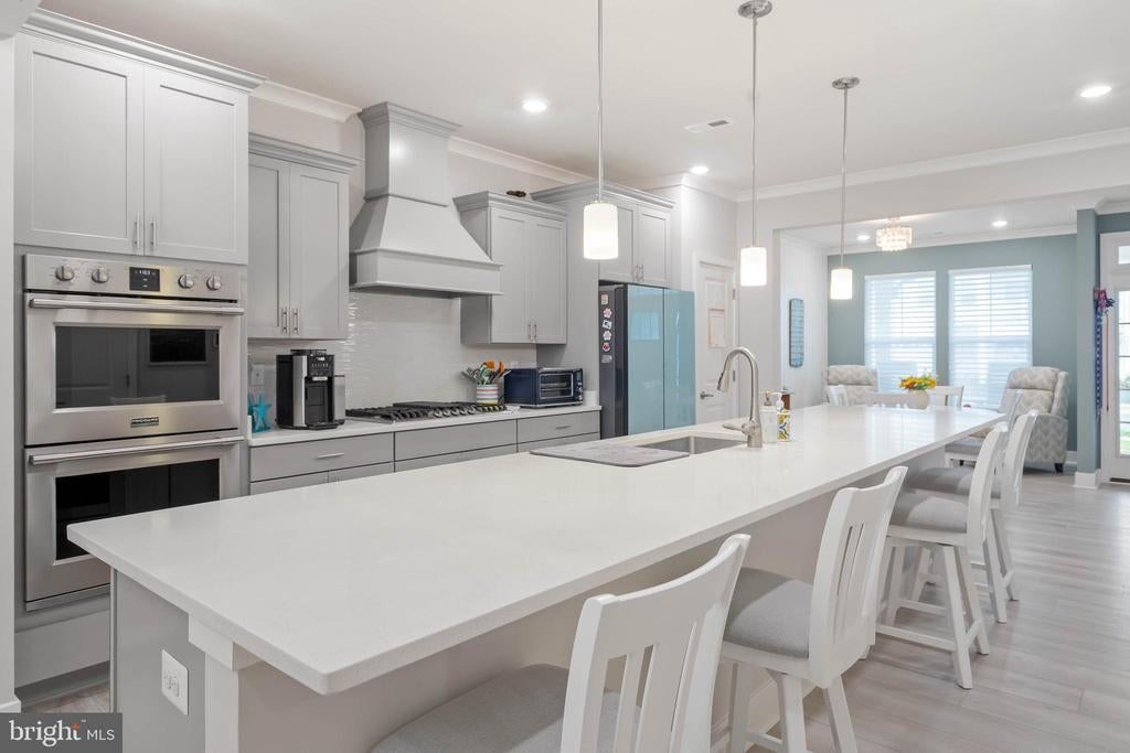 Welcome to 34159 Sanderling Drive, located in the desirable Preserve at Jefferson Creek just 1.5 miles from the beach. This beautiful former model home offers upgrades galore, refined details, modern conveniences, and a layout designed for both comfort and style. Step inside and immediately notice the thoughtful finishes, including crown molding throughout the main floor, Hunter Douglas blinds, and upgraded LVP flooring. The gourmet kitchen is a showstopper, featuring quartz countertops, a glass tile backsplash, a Samsung Bespoke refrigerator along with an upgraded pantry with custom shelving. A charming shiplap accent wall in the dining area adds warmth and character. Enjoy flexible living with two master suites, each complete with ensuite bathrooms, providing privacy and comfort for family and guests. The home also includes a full-house water filtration system and new waterproof-backed carpet on the stairs for added durability. Outdoor living is just as impressive. Relax in the enclosed 3-season porch or entertain with ease thanks to a stone patio with a gas fire-pit and a propane gas line for your grill. This home seamlessly combines elegance with function, making it truly move-in ready. Don’t miss your chance to live in The Preserve at Jefferson with access to community amenities and a location that balances tranquility with convenience.