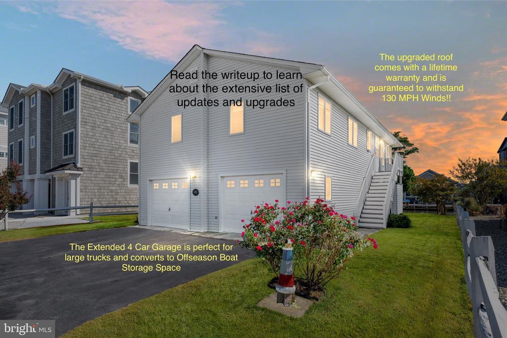 2 YEAR HOME OWNERS WARRANTY……PRE-LISTING HOME INSPECTION SO YOU KNOW AHEAD OF TIME THIS HOME IS A WINNER…..NO HOA……3 BED/2 FULL BATH CUSTOM BUILT HOME ON WIDE CANAL......4 CAR GARAGE....FULLY FURNISHED……SCREENED IN PORCH w/DIRECT WATER VIEWS….EASY & SAFE WALKING ACCESS TO BEACH VIA TRAFFIC LIGHT ON LAYTON AVE……NEW ROOF w/LIFETIME WARRANTY & GAF DESIGNER CAMELOT SHINGLES-130 MPH WIND PROOF GUARANTEED…..NEW LVP FLOORING…..ANDERSON CASEMENT WINDOWS…..TREX DECKING…..NEW AO SMITH WATER HEATER….BRAND NEW HIGH END 3 TON HVAC SYSTEM……. NEW BOAT DOCK…. OUTDOOR SHOWER W/DRESSING AREA…. RAISED UTILITY CLOSET……ELEVATOR/STAIRWELL SHAFT IN PLACE SO EASY ADD-ON….PEACE OF MIND….LOW MAINTENANCE …..LOCATION…..LIFESTYLE….EXCELLENT RENTAL POTENTIAL……A DREAM COME TRUE!! As you approach the home, you’ll note the extra-large 4 car garage underneath. The extended garage upgrade provides plenty of space for your car/s, & trucks, and room to spare for all of your beach accessories and bikes. That’s right, bikes are a must have here as you can easily walk or bike to downtown Bethany Beach to enjoy the vibrant dining and shopping scene. In the offseason one half of the garage can function as your very own boat storage area. An added bonus is the workshop located in the back of the garage. This is the ideal setup for the gardener in you, aspiring hobbyist, woodworker enthusiast or use it as a fly-tying station for your next fishing adventure on the bay. This home also has a well-appointed outdoor shower with changing station, a must have in the summer months!! Upon entering the main level, you’ll be greeted by an open floor plan bathed in natural light, water views and coastal charm. This winning combination guarantees this home will exude positive energy year round, and is the answer you’ve been searching for. Down the hallway from the family room, kitchen and dining area are the 2 guest bedrooms, guest full bathroom and the owners suite & owners bathroom. The builder smartly designed this home so that an interior staircase or elevator could be added. The space needed is tucked behind a wall around the corner from the kitchen so a future conversion is quick and simple should you ever need or want it. The kitchen, dining area and family room are all perfectly connected and situated off the screened in porch. From all of these spaces you can enjoy cool morning and evening salt air breezes as you catch up with friends and family at mealtime. The screened in porch will beckon you at the start of each day. With its tranquil water views, relaxing on the porch throughout the year is a breeze. This is the perfect place to plan your days adventures and make hard decisions like, should I walk to the beach or simply right out back to your boat dock to fish and catch some crabs. Or maybe you prefer to pull away from the dock and quickly escape to Assawoman Bay on your favorite watercraft thanks to our ideal location within the canal system. Here at 148 Layton Drive, you know, that relaxing days at home, and exciting days on the water or at the beach are always at your fingertips. A priceless combination and the one you’ve been searching for!! This beach getaway is turnkey and checks all the boxes and then some!! Excellent rental potential