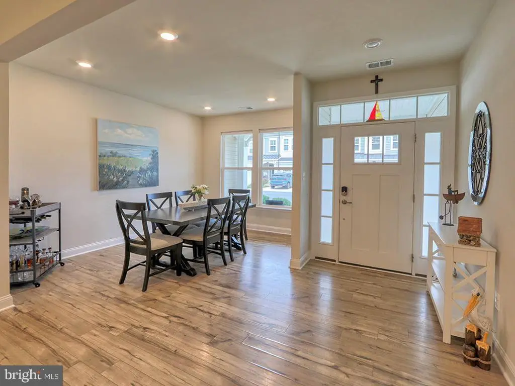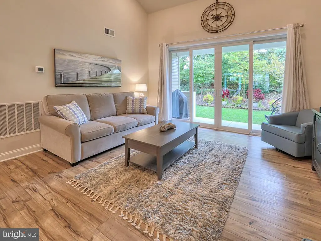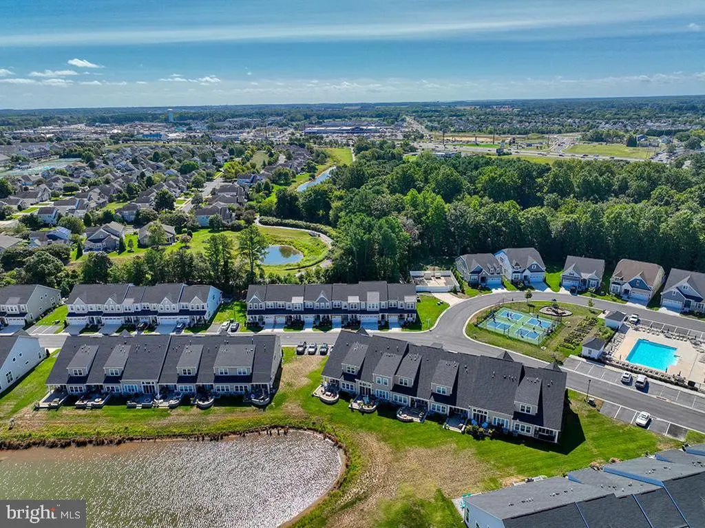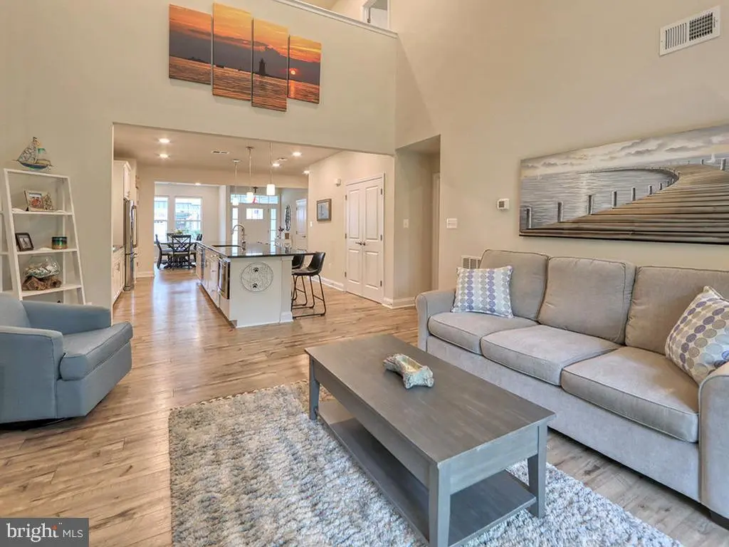 Welcome to 22076 Kintersburg Drive in the highly desirable Covered Bridge Trails community in Lewes. This townhome offers coastal living in a private wooded setting. The beautifully landscaped front yard, charming covered porch, and attached garage create an inviting first impression. Inside, you'll be welcomed by an expansive open floor plan, with gorgeous luxury vinyl flooring throughout the first level. Off the entry, the inviting dining room sets the stage for special gatherings. The heart of the home is the breathtaking kitchen featuring upgraded white cabinetry, granite countertops, a stylish backsplash, stainless steel appliances—including double ovens—and a large island with breakfast bar seating for six. The kitchen seamlessly flows into the light-filled great room, which boasts cathedral ceilings and large sliding doors that lead to a serene covered patio overlooking the wooded backyard. Perfect for relaxing on those lazy summer days. The first floor primary suite is a luxurious retreat, showcasing a tray ceiling, neutral carpeting, a walk-in closet, and an ensuite bathroom with double quartz-topped vanity, and a walk-in marble-tiled shower. A half bath and a convenient laundry area, as well as access to the attached garage, complete the main level of the home. Upstairs, you'll find a cozy loft that offers versatile space, ideal for a family room, office, or playroom. This space overlooks the great room below. The second level is complete with an additional primary suite with full bathroom, as well as two guest bedrooms with ample natural light and a hall bathroom, making this home ideal for family living or hosting guests. Covered Bridge Trails offers a variety of community amenities, including a pool, clubhouse, pickleball courts, tot lot, and a dog park for added convenience. The community's connection to the Lewes-Georgetown Bike Trail means easy access to downtown Lewes and the beaches. Hop in your car for short a drive to the beaches of Cape Henlopen State Park and other local attractions. Don't miss your chance to own this stunning, move-in ready home in an unbeatable location!
