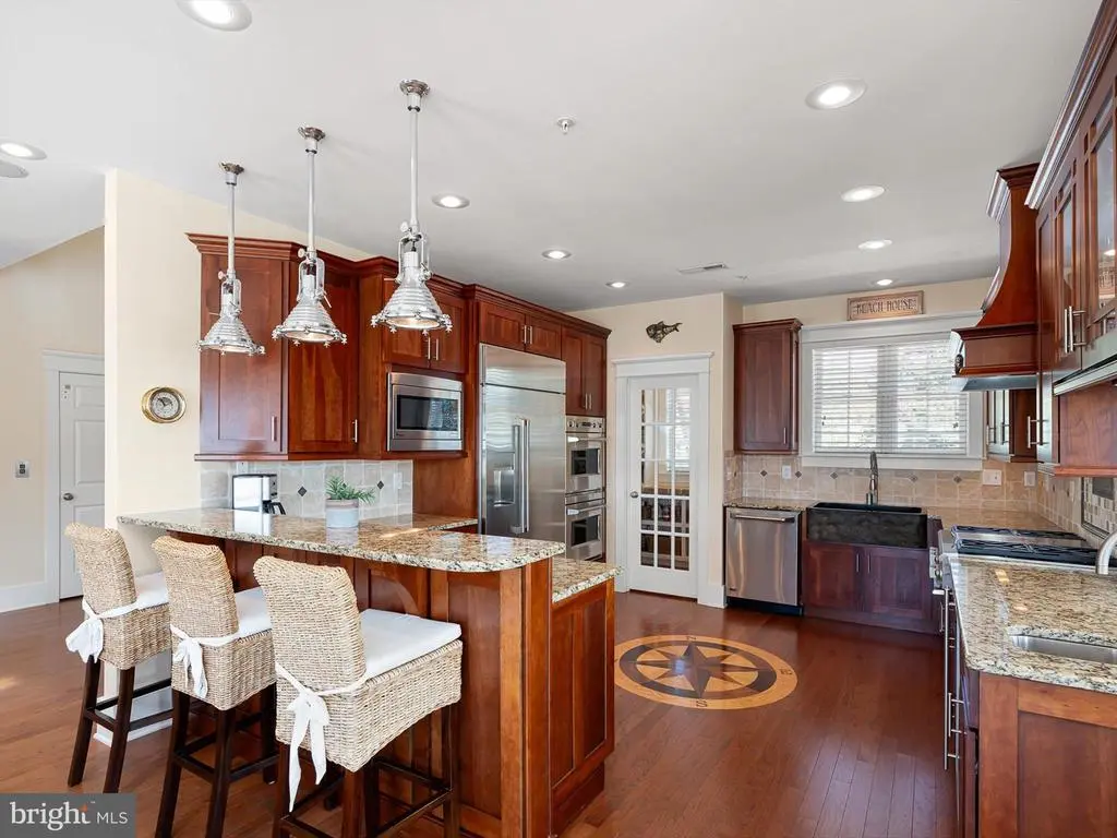 Welcome to 37454 3rd St, an extraordinary custom-built residence in the sought-after waterfront community of Bay Vista. Designed with timeless architecture, refined detail, and every modern convenience, this four-level home offers over 4,300 square feet of coastal luxury with sweeping views of the Rehoboth Bay and Canal. Built in 2009 and meticulously maintained, it was crafted for elegance and everyday comfort. From the grand foyer with wide-plank hardwood floors, elegant moldings, and soaring ceilings, natural light pours through oversized windows, drawing attention to water views from multiple vantage points. An elevator connects 3 levels, providing convenience and accessibility for groceries, luggage, or simply enjoying the ease of multi-level living. The main level features a spacious living room anchored by a gas fireplace and custom built-ins—perfect for quiet evenings or lively gatherings. A coastal-inspired dining area flows seamlessly into the gourmet kitchen, equipped with premium stainless-steel appliances, granite countertops, a designer tile backsplash, double wall ovens, and an expansive peninsula with bar seating. A walk-in pantry and extensive custom cabinetry maximize storage, while the open design ensures the kitchen is as social as it is functional. Additional living spaces across multiple levels provide flexibility for any lifestyle, from media rooms and lounges to private offices or play areas. A ground-level suite with wet bar and additional stove creates the ultimate entertainment hub. Multiple decks extend living outdoors, offering the perfect perch for morning coffee, afternoon sun, or toasting vibrant sunsets over the bay. Private quarters include five generously sized bedrooms, each with en-suite bath. The primary suite is a retreat with tray ceiling, sitting area, expansive walk-ins, and a spa-inspired bathroom featuring dual vanities, makeup station, soaking tub, and large walk-in shower. Two additional half-baths add convenience for family and guests. Outdoors, a heated in-ground pool with waterfall feature and large gas fire pit are the focal point, surrounded by a spacious patio, two custom outdoor showers, and a fully equipped kitchen for effortless al fresco dining. Professionally landscaped grounds, multiple decks, and serene bay breezes create an unmatched coastal oasis. Practical touches include an oversized two-car garage, zoned central air, propane heat, and a tankless water heater. Upscale finishes—recessed lighting, crown molding, and premium materials—reflect the home’s enduring quality, while a fire suppression system adds peace of mind. Bay Vista offers tranquility along the water while remaining just minutes from Rehoboth Beach. Downtown restaurants, shops, and galleries are five minutes away, while the iconic Boardwalk and beach are less than two miles from your front door. Local marinas nearby open the door to endless boating and water adventures, and with no HOA, the freedom and flexibility are rare. 37454 3rd St is more than a residence—it is a lifestyle. Mornings begin with the beauty of the bay, afternoons unfold by the pool or on the beach, and evenings end with glowing sunsets over the water. Whether envisioned as a year-round residence, a vacation retreat, or a luxury rental, this home offers location, craftsmanship, and timeless coastal value.