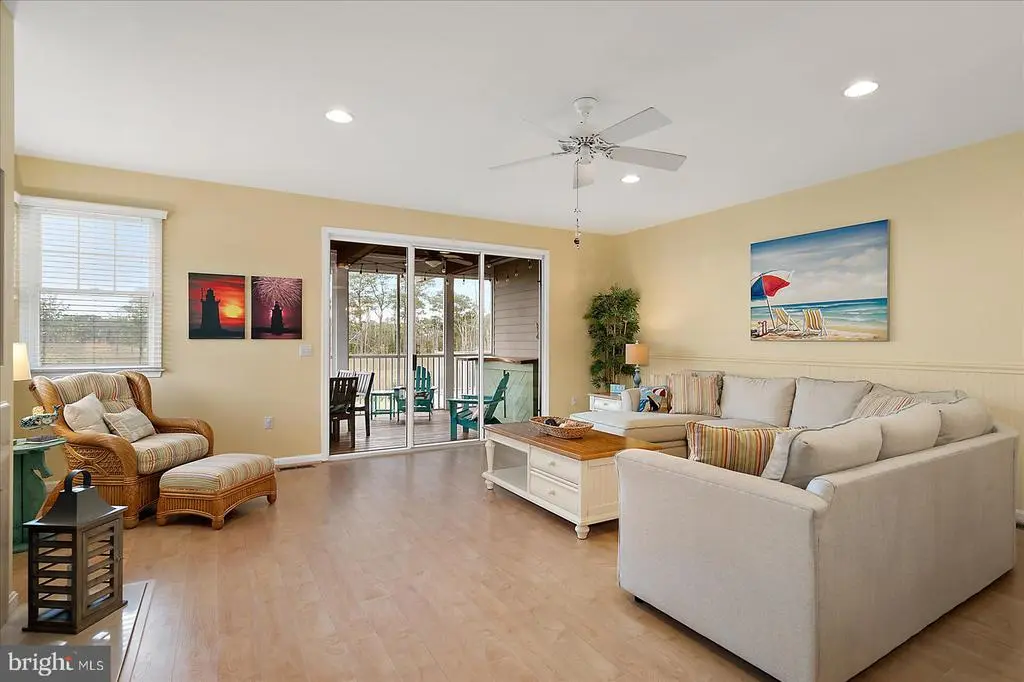 This fully furnished 3-bedroom, 3.5-bath end-unit townhome in near-perfect condition delivers spectacular panoramic views of the bay and natural shoreline from every floor, with views of wildlife and shore birds all around. Step in through the front door or garage to the first level featuring a beautiful bedroom suite with full bathroom and a walkout screened-in patio offering amazing views. The entry-level suite opens to a large covered patio with views of the woodlands and water, perfect for relaxing outdoors or giving pets room to play. A convenient laundry area permits your guests to drop off their sandy beach clothes before heading upstairs. The spacious garage—complete with built-in storage and a like-new refrigerator—provides a safe spot for bikes, kayaks, beach chairs, and more. The main level, just one floor up, features a bright, open floor plan with a beautifully updated kitchen with custom granite island and is perfect for large gatherings with family and friends. Step onto the second-level screened porch and enjoy gentle breezes and peaceful water views. Take off the evening chill in the air with the roaring propane fireplace. Upstairs offer two bedrooms, each with its own bathroom. The primary suite is a true retreat with a private deck for viewing the water, birds, and wildlife as you sip your morning coffee or enjoy your favorite evening beverage. The suite features a very large walk-in closet with plenty of room for storage. The walk-in bathroom features a luxurious soaking tub and walk-in shower. The second bedroom suite is beautifully furnished with bright, cheerful bedding and art. The bright, spacious ensuite bathroom features a walk-in shower and room to store personal belongings. Water enthusiasts will love the community’s private boat ramp and easy access for kayaks and paddleboards—ideal for exploring the Little Assawoman Bay. Bayville Shores offers resort-style amenities including a pool, fitness center, clubhouse, walking trails, catch-and-release fishing, and plenty of open green spaces—all just minutes from Fenwick Island beaches, shops, and dining. Life's short...buy the beach house. You'll be glad you did!