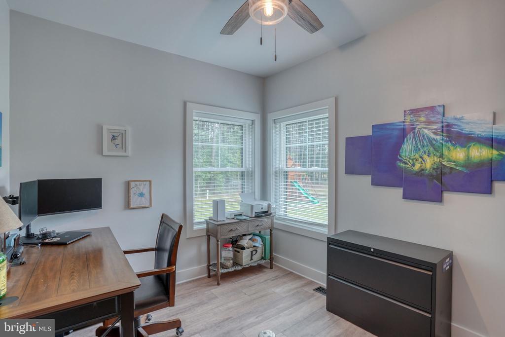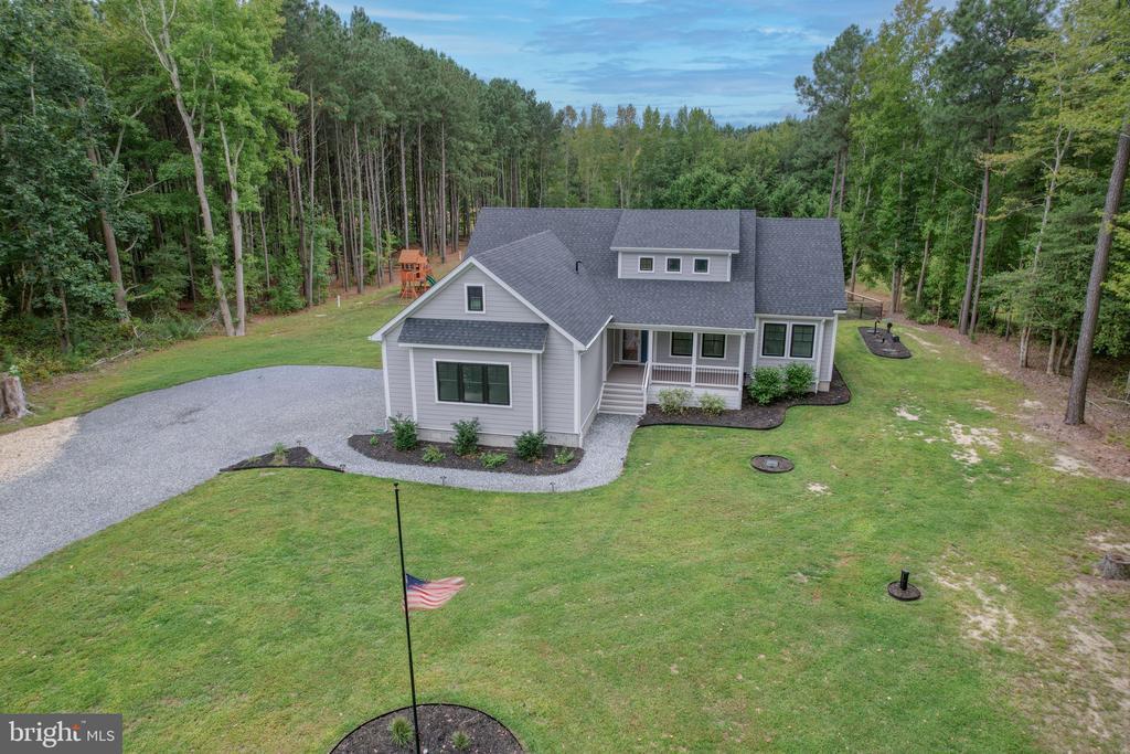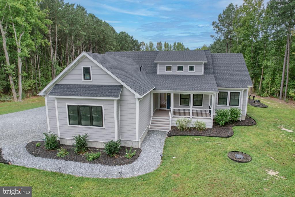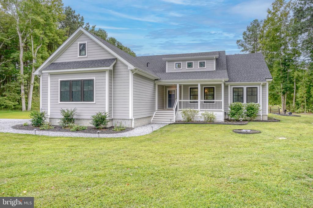 CUSTOM BUILT COASTAL RETREAT ON 1.42 ACRES – 6 Miles to Fenwick Island & Ocean City. This stunning 3,000 sq. ft. custom home sits on 1.42 acres and combines modern luxury with coastal convenience. Located just minutes from Fenwick Island and North Ocean City, you’ll enjoy quick access to shopping, dining, beaches, and boating while living in a private, spacious setting. Inside, the home showcases superior craftsmanship, featuring custom cabinetry, top-tier appliances, and a large center island perfect for entertaining. The first-floor primary suite offers a spa-like retreat with a walk-in tiled shower and soaking tub, while an additional bedroom, full bath, and office provide flexible main-level living. Upstairs, a large loft opens to two bedrooms and a full bath with tiled shower. The oversized garage includes propane heating, 110amp outlets and built-in storage, while the home itself is equipped with 400amp service plus a dedicated 100amp service in the crawl space—ideal for a future pool or backyard expansion. Community amenities include access to a dock, boat launch, and boat slip (first come, first serve) for just $115 annually. Additional upgrades set this home apart: Spray foam insulation + added interior insulation around the primary suite, hardiplank siding, gutter guards, and pop-up gutters, tankless hot water heater, owned propane tank & water conditioner, pre-wired upstairs bedrooms for wall-mounted TVs, owned security system, abundant outlets & floor outlets for convenience. This home is thoughtfully designed for comfort, efficiency, and coastal living.