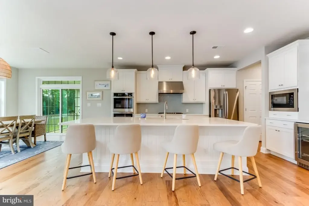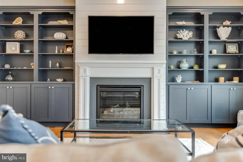 Welcome to Tidewater Landing, where coastal living meets refined design and every detail invites you to slow down and savor home. This thoughtfully crafted 5-bedroom residence offers not just a place to live, but a lifestyle surrounded by natural beauty and resort-style amenities. Step inside to an airy open floor plan, warmed by engineered hardwood floors and anchored by a shiplap fireplace flanked with custom built-ins. The gourmet kitchen is the heart of the home, with its oversized island, gas cooktop, wine fridge, and walk-in pantry—perfect for both quiet mornings and lively gatherings. A private office with French doors, a mudroom with built-ins, and custom lighting throughout make the everyday feel extraordinary. Upstairs, the serene primary suite feels like a retreat, with dual walk-in closets and a spa-like bath featuring soft blue cabinetry, a soaking tub, and a step-in shower. The finished basement expands your living space with a rec room, additional office, half bath, and generous storage. Outdoor living is equally inspired: enjoy a screened porch that flows onto a double patio with planters and a cozy gas fireplace, all overlooking a fenced backyard edged with mature trees. An outdoor shower adds the perfect coastal touch. Owned solar panels bring modern efficiency and low monthly costs. Life in Tidewater Landing is as vibrant as it is peaceful. Spend your days kayaking from the community dock, swimming in the pool, or playing pickleball with neighbors. Sidewalk-lined streets, a welcoming clubhouse, and a fitness center make it easy to connect and unwind. And when the ocean calls, Lewes Beach, boutique shopping, and celebrated dining are just minutes away. This home isn’t just a residence—it’s an invitation to live fully, surrounded by community, comfort, and coastal charm.