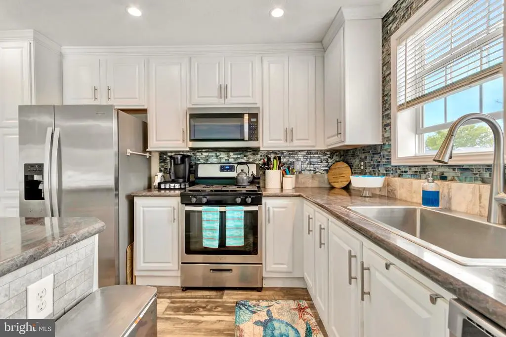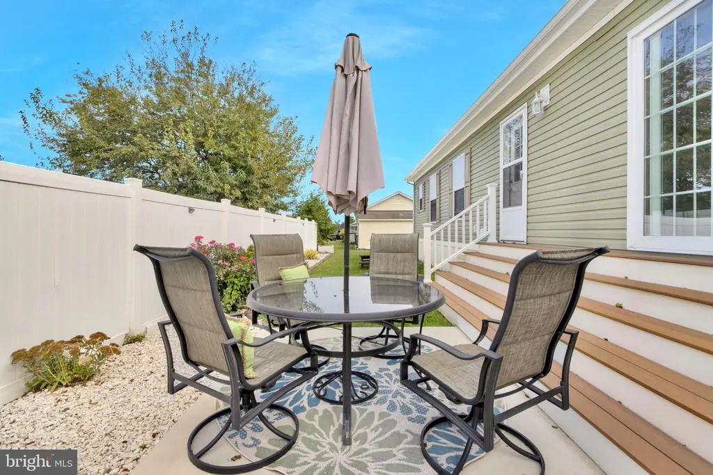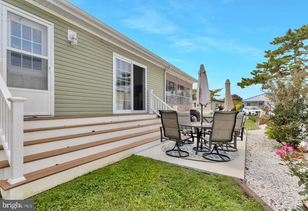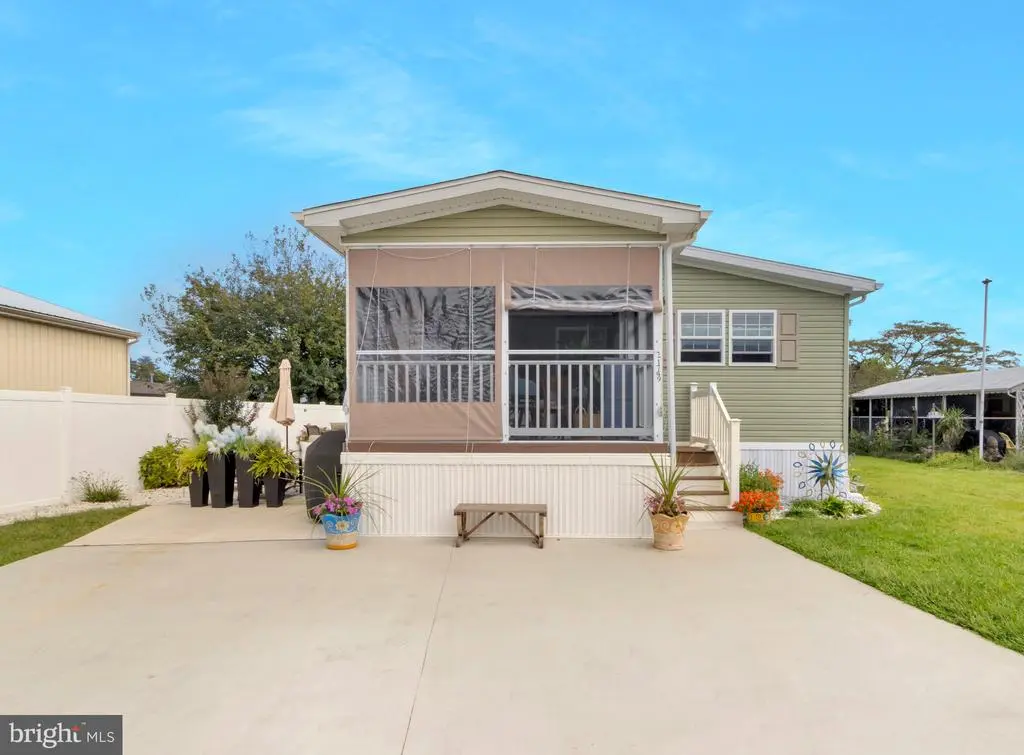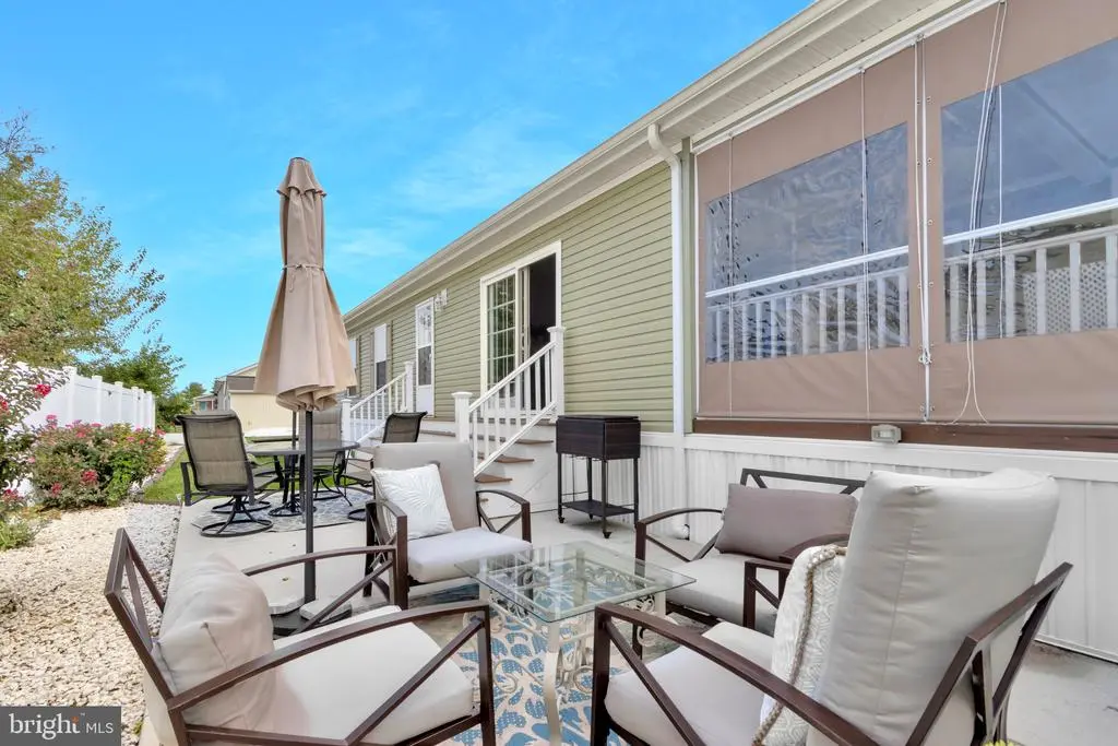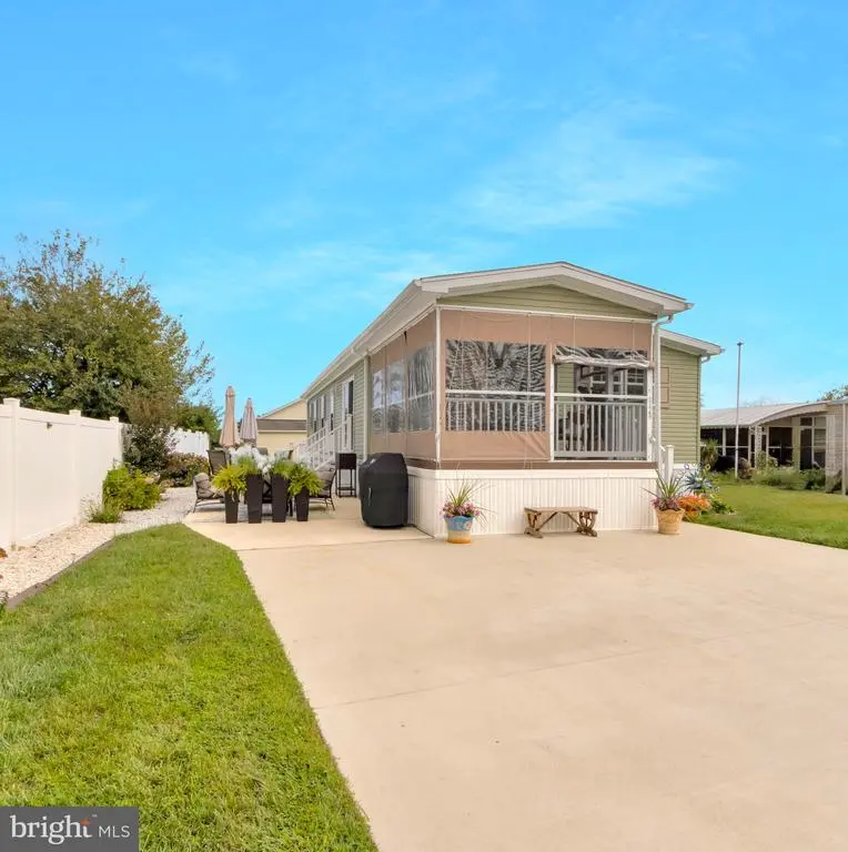 Welcome to 21749 E Street — a thoughtfully upgraded 3-bedroom, 2-bath, double-wide home with approximately 1,272 sq ft located in the highly desirable Rehoboth Bay Manufactured Home Park. Built in 2020 and lovingly maintained by its original, sole owners since early 2021, this home enjoys a prime location just steps from vibrant community amenities and boasts thoughtful upgrades that blend comfort with modern style, both inside and out. One of the home’s standout features is the custom 11' x 12' front porch, added in 2022 with built-in electric and lighting— creating a dreamy space perfect for morning coffee, entertaining guests, or simply relaxing in the fresh air. In 2023, custom vinyl and canvas porch protection blinds were installed, creating a versatile space that can be enjoyed year-round. The home’s exterior was further enhanced in 2024 with the installation of French drains and tasteful stone landscaping, as well as a new Pella sliding glass door, exterior steps, and railings. Most recently, the concrete patio and driveway were professionally pressure washed and sealed in June 2025, maintaining their pristine condition. A concrete patio attached to the back of the property was also added in 2022, offering an inviting area for grilling or enjoying the coastal breeze. Inside, the spacious open layout seamlessly connects the cozy living room, classic dining area, and updated kitchen — creating an inviting space for everyday living and effortless entertaining. The kitchen received thoughtful upgrades including a stylish glass tile backsplash added in 2022 and a brand-new oversized kitchen sink installed in 2024. All interior lighting throughout the home was replaced, with recessed lights added in 2021, lending a bright and modern ambiance. In 2022, all flooring except for the primary bedroom was replaced with durable and attractive luxury vinyl plank (LVP), while the primary bedroom retains its original carpeting, adding warmth and comfort. Plantation shutters, installed in 2023, provide a clean and timeless finish throughout the home’s windows. The primary suite features a spacious closets and an en-suite bathroom with double vanities and an oversized walk-in shower, offering a private and relaxing spa-like space right here at home. Two additional generously sized bedrooms provide versatile options for guests, a home office, a small gym, or flex spaces for various hobbies. Both full bathrooms are thoughtfully designed to accommodate family and visitors alike. The full-service laundry room was upgraded in 2024, now including custom shelving for added storage and organization, a newly installed exterior door for convenient outdoor access, and a full-size stacked LG washer and dryer purchased in 2021 — combining efficiency with practicality. Every space features a pop of color or upgrade that adds character and life to the home overall, and together with all of its thoughtful details, there is an undeniable warm and inviting feel throughout. This home has already passed the community’s Pre-Sale Checklist with no outstanding items, giving buyers peace of mind (documentation included in this listing). The HVAC system was serviced and inspected in January 2025 to ensure optimal comfort year-round. The property can be sold partially furnished, and a detailed inclusion/exclusion list with photos is provided in the documents along with a complete floor plan for easy visualization. This move-in ready home offers a well-maintained, modern living experience just minutes from the beach, dining, and shopping. Schedule your tour today and don't miss out on a beautiful, move-in ready spot here in the sought after area of Rehoboth Beach!