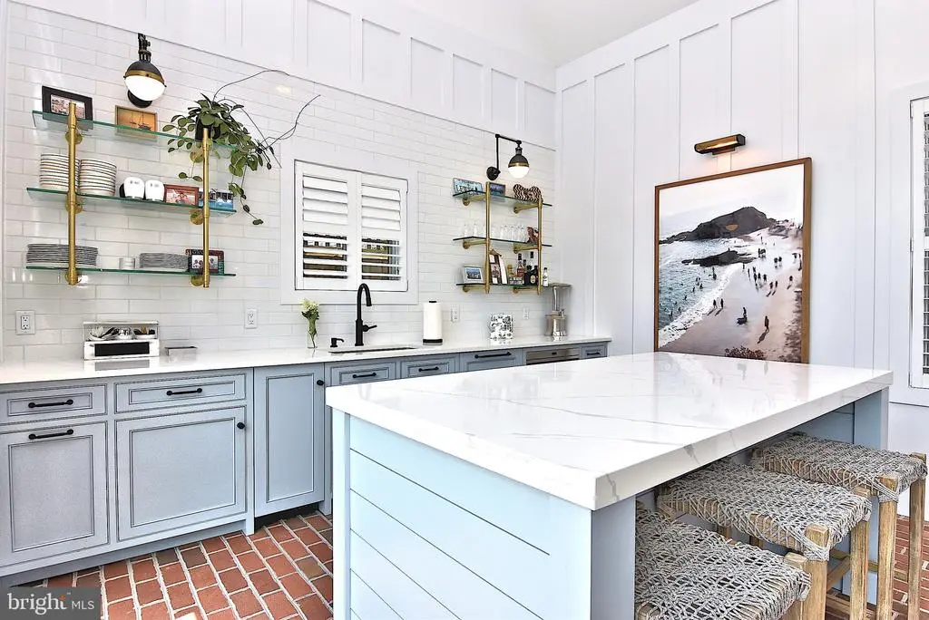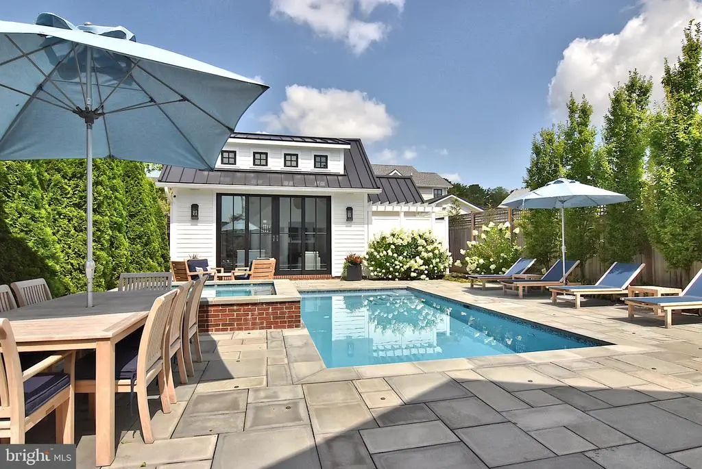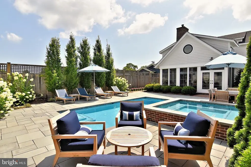 This 4-bedroom, 4.5-bath home in one of Lewes’ most desirable in-town locations is just minutes from 2nd Street and the beaches of Cape Henlopen State Park. This residence combines timeless and thoughtfully designed architecture with modern functionality, creating an ideal setting for both everyday living and entertaining on any scale. Inside, the open floor plan features elegant hardwood floors, soaring ceilings, abundant natural light, and high-end finishes throughout. At the heart of the home is a chef’s gourmet kitchen, complete with a Wolf 6-burner gas range and range hood, convection steam oven, two wall ovens, two Bosch dishwashers, Sub-Zero built-in side by side panel refrigerator, custom cabinetry, beautiful quartz countertops, backsplash, and a walk-in scullery with Sub-Zero ice maker and wine storage with refrigerator drawers, washer, and dryer. The spacious dining areas offer counter seating or an area for a large dining table, making it ideal for gatherings both large and small. Additionally, the great room, adorned with ship lapped walls and vaulted ceilings flows into a spacious porch. The EZ Breeze windows on the porch offer protected lounging in every season overlooking the beautifully manicured landscaped private backyard and pool. The main level includes a private en-suite bedroom with double sinks, heated floors, and a beautifully tiled walk-in shower and closet. The second floor includes two luxurious primary suites with ensuite spa-inspired bathrooms and custom walk-in closets. An additional bedroom and separate flex room share an exceptional hall bathroom with walk-in shower. Designed for year-round enjoyment, the property’s outdoor living spaces are equally remarkable. Beginning at the front of the home, a concrete aggregate driveway leads to a garage with a SmartWall panel storage system and epoxy flooring. A beautiful walkway with greenery and flowers takes your guests to the backyard. A heated saltwater gunite pool and hot tub serve as the centerpiece of the backyard surrounded with blue stone pavers. Geothermal heating and cooling. Enjoy the indoor-outdoor lifestyle from the fully equipped air-conditioned pool house with full-length pocked doors that open completely to the patio and pool area. This is nothing but a show stopper with accent metal roofing, souring ceilings, a kitchenette, custom cabinetry, backsplash, kitchen island with seating, powder room, sitting area with fireplace and ship lapped surroundings, and an outdoor shower. This home offers a rare combination of elegance, convenience, and thoughtful design in one of coastal Delaware’s most sought-after locations. Whether as a full-time residence, a vacation getaway, or an entertainer’s dream home, this in-town Lewes property is truly move-in ready and built for living well!