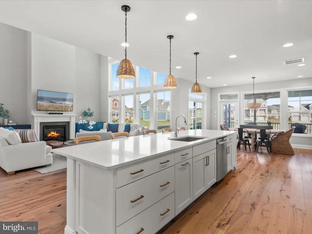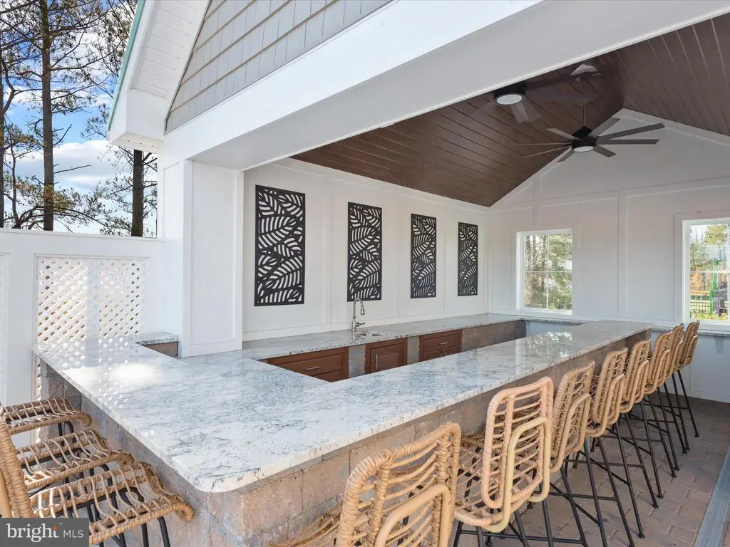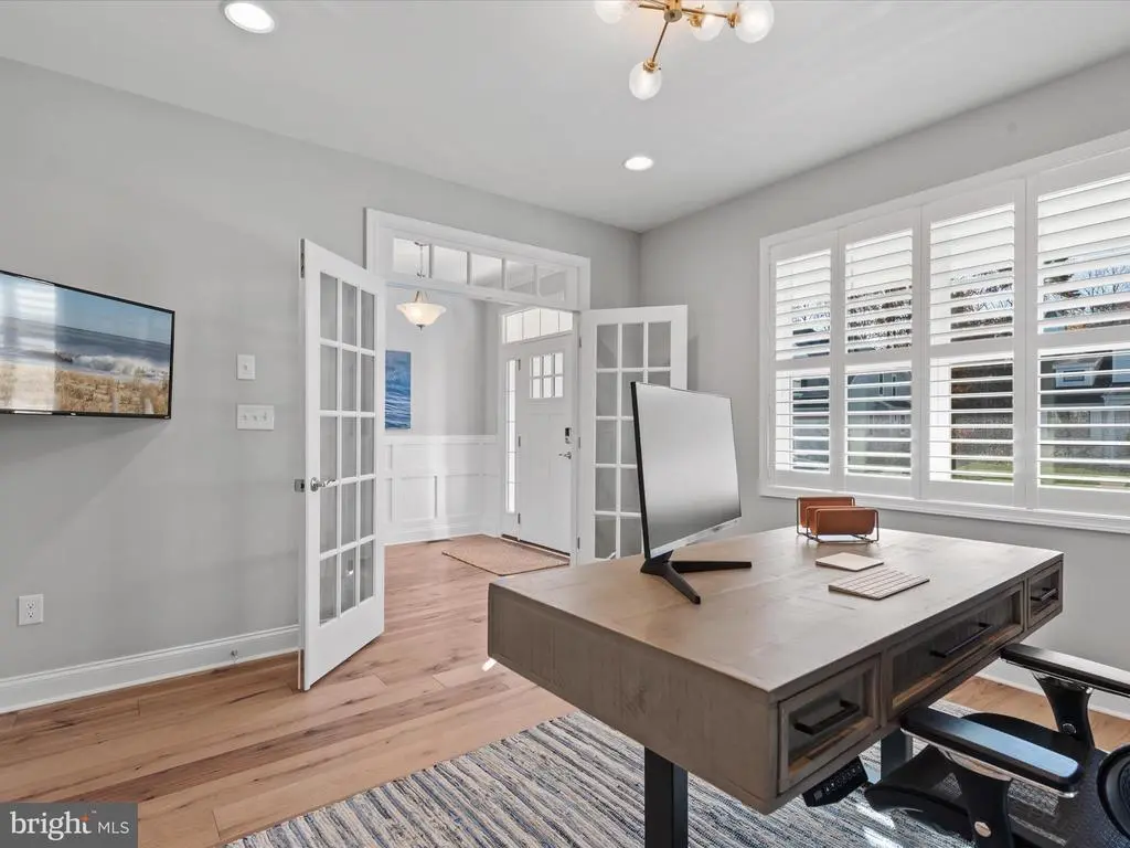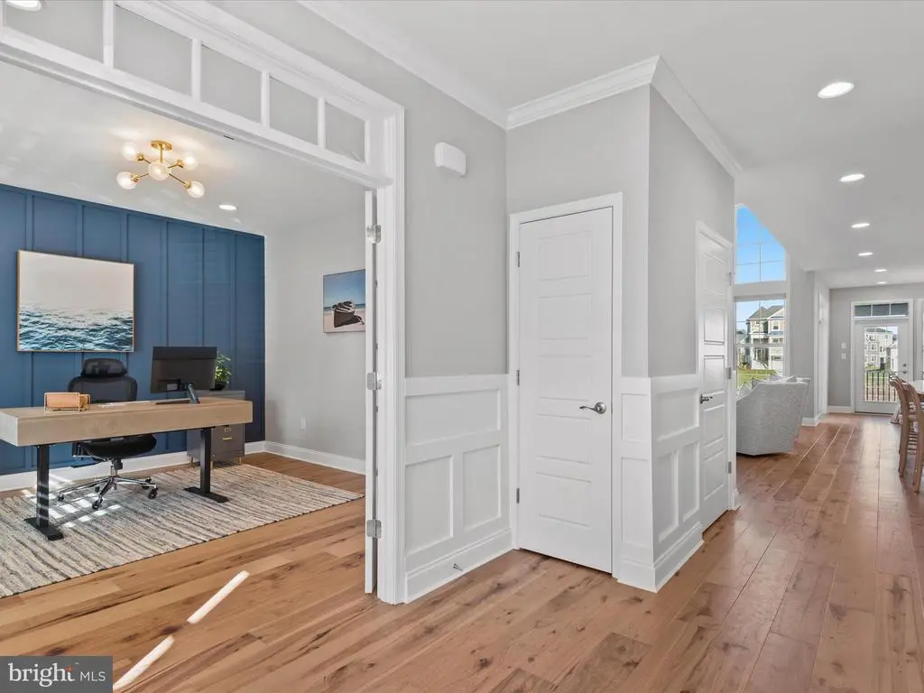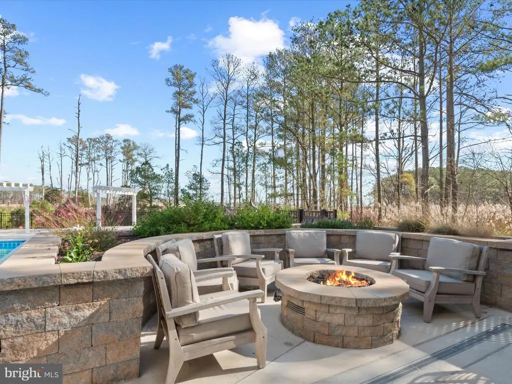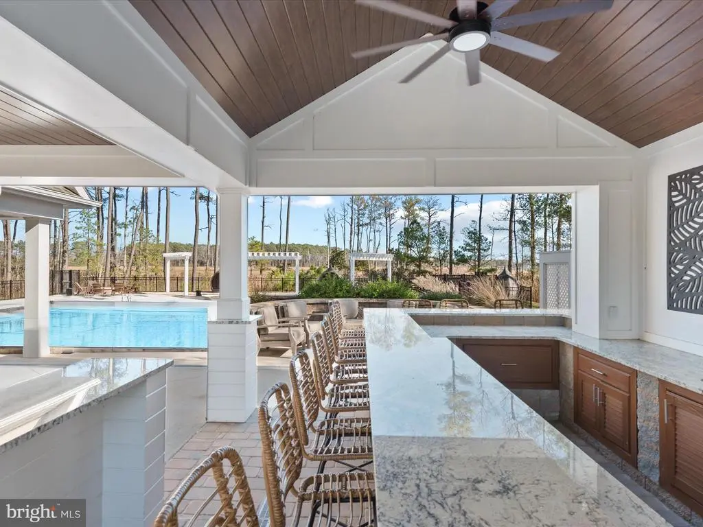 Welcome to 33685 Halford Circle, an extraordinary residence in the esteemed coastal enclave of Marsh Island. This luxurious home harmonizes coastal elegance, masterful craftsmanship, and resort-inspired amenities, creating an unmatched living experience. A charming, covered entry with an overhead balcony beckons you inside, where refined design and exquisite details await. Step into the foyer, a grand introduction highlighted by fine millwork, wide-plank hickory hardwood flooring, and ambient feature lighting-a glimpse of the upscale touches woven throughout. The foyer flows effortlessly into a sunlit great room, where a two-story cathedral ceiling rises above and a dramatic wall of celestial-topped windows frames peaceful views, bringing the outdoors in. Anchoring the living area is a gas fireplace, flanked by custom cabinetry-an ideal setting for both cozy gatherings and grand entertaining. The heart of the home is the gourmet kitchen, where sleek quartz countertops, a chevron-patterned glass tile backsplash, and top-tier appliances, including a double wall oven and gas cooktop with range hood, make for a chef's paradise. Custom 42" display cabinetry offers abundant storage, while a generous island with breakfast bar invites casual meals. A well-appointed coffee and wine station enhances the space, adding a touch of sophistication for entertaining. The adjoining dining area provides an inviting spot for larger gatherings, with easy access to a screened porch that overlooks a serene pond and lush courtyard. Retreat to the main-level primary suite, a sanctuary complete with a deep tray ceiling, private yard access, two walk-in closets, and a spa-inspired ensuite. Relax in style with dual vanities, a soaking tub, a spacious shower, and a private water closet. Also on the main level, a secluded study behind French doors and a convenient laundry room with direct access to the garage round out the thoughtful floor plan. Upstairs, a loft area offers an inviting secondary living space, perfect for casual lounging or gathering. Three additional bedrooms, including two with ensuite baths, provide ample accommodation for guests. A sprawling media room awaits your personal customization, ready to become the entertainment hub of the home.