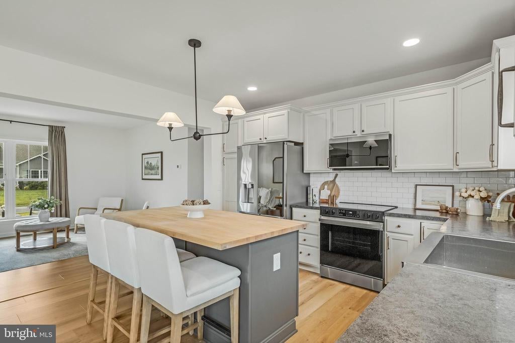 This beautifully updated ranch home at 21227 Ridge Road sits on an exceptional three-quarter acre lot in Ellendale, offering both privacy and convenience with over 200 feet of road frontage and a side-entry driveway and garage. The property boasts extensive recent upgrades throughout, including luxury vinyl plank flooring, fresh paint, updated cabinetry with new hardware, and a stunning butcher block kitchen island. The modern kitchen features brand new LG appliances including a refrigerator with dual ice maker, range, microwave, and dishwasher, while new light fixtures illuminate the dining area and throughout the home. Additional upgrades include a new washer and dryer with steam function, window coverings, and a comprehensive Blink security system with exterior cameras and motion sensor lights. The thoughtfully designed floor plan offers three bedrooms including a spacious primary suite, two full bathrooms, and an open-concept living and dining area that flows seamlessly into the updated kitchen. The attached garage provides ample storage and convenience, while the expansive lot offers remarkable privacy with a reservoir bordering the right side of the property. Located just minutes from Route 1 and less than 10 minutes from Milford Bayhealth Hospital, this home provides easy access to Delaware's beaches (Lewes and Rehoboth within 25-30 minutes) while maintaining a peaceful, secluded setting. The seller is open to negotiating the inclusion of partial furnishings and backyard play equipment, making this an exceptional opportunity for buyers seeking a move-in ready home in a prime location.