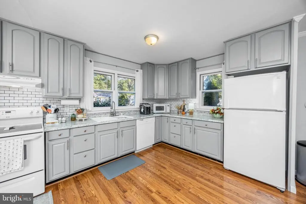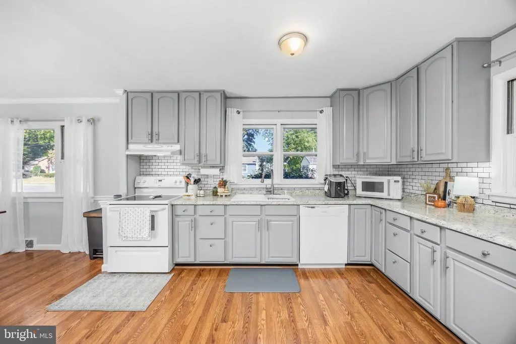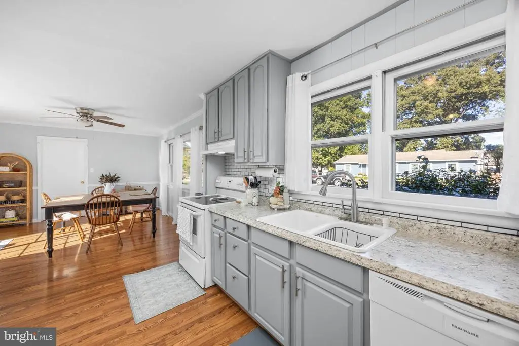 Discover the charm of this beautifully renovated, well maintained ranch-style home in the desirable subdivision of Woodside Manor. Fully renovated in 2020 including roof and HVAC, this residence boasts new recessed lighting in three main bedrooms and living room creating a well lit and inviting interior with a seamless flow between the family room and the combination kitchen/dining area, perfect for gatherings. Enjoy cozy evenings by the working brick fireplace or savor your morning coffee in the breakfast area. The home features modern appliances, including a front-loading washer and dryer, electric oven/range, and a dishwasher, ensuring convenience at every turn. Step outside to a cleared corner lot with lovely landscaping, providing a serene outdoor space for relaxation or entertaining. The deck, within the fully fenced yard invites you to enjoy the fresh air and sunshine while the children or pets safely play. With off-street parking and a concrete driveway, accessibility is a breeze. Don't miss the opportunity to make it yours!