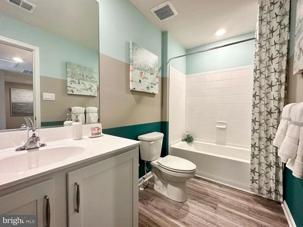 Discover your new home at 9306 Greenway Trail at Coastal Villages in Selbyville, DE, offering scenic pond views and a serene coastal lifestyle. The Brentwood is a stunning 1,676 square foot two-story villa designed for open-concept living that boasts three bedrooms, two and a half baths, and a convenient two-car garage. This home is the epitome of modern comfort. As you step into the welcoming foyer, you'll find a handy coat closet and easy access to a well-placed powder room. The heart of the home, a beautifully designed eat-in kitchen, beckons with modern gray cabinetry, a spacious center island perfect for casual dining, luxurious quartz countertops, a pantry closet, and top-of-the-line stainless-steel appliances. The kitchen seamlessly flows into the expansive great room, offering not only a delightful space for relaxation but also direct access to your backyard. Retreat to the generously sized first-floor bedroom tucked away at the rear of the home. Here, an oversized walk-in closet provides ample storage, and laundry hook-ups, while the ensuite bathroom exudes sophistication with its double bowl vanity and spacious shower. Ascending the discreetly positioned stairs, you'll reach a landing area that unveils the convenience of an upstairs laundry closet. Two spacious guest bedrooms await, offering comfortable accommodations for family or guests. A second full bathroom and a linen closet add to the upstairs amenities. Your new home comes complete with white window treatments, a fully sodded, landscaped, and irrigated lawn, and exclusive America’s smart home® package, ensuring your peace of mind and comfort in every aspect of living. Pictures, artist renderings, photographs, colors, features, and sizes are for illustration purposes only and will vary from the homes as built. Image representative of plan only and may vary as built. Images are of model home and include custom design features that may not be available in other homes. Furnishings and decorative items not included with home purchase.