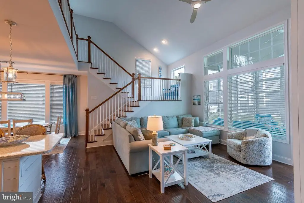 This stunning two-story home in Saddle Ridge combines timeless elegance with modern comfort. As you step inside, you’re greeted by a private home office and a gracious open-concept living space—designed to accommodate both lively entertaining and quiet moments of relaxation. From the living room, step through sliding doors into a three-season room with sweeping views of the community green space, central pond, and neighborhood amenities, including a pool and clubhouse. The first-floor primary suite serves as a serene oasis, offering the perfect place to unwind after a long day. A half bath and laundry room are conveniently located and complete the main level. Upstairs, you’ll find a spacious loft, three generously sized bedrooms—each with walk-in closets—and a full bathroom. A large storage room adds even more functionality to the second floor. The garage is thoughtfully equipped with additional storage and a pristine epoxy resin floor, ideal for the do-it-yourself enthusiast or someone who appreciates finer touches. Located in the highly desirable community of Saddle Ridge, just minutes from the beach, this home offers the very best of coastal living paired with a relaxed yet sophisticated lifestyle.