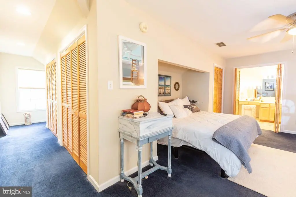 Built-Ins, Ceiling Fan(s), Entry Level Bedroom, Recessed Lighting, Window Treatments, Wood Floors