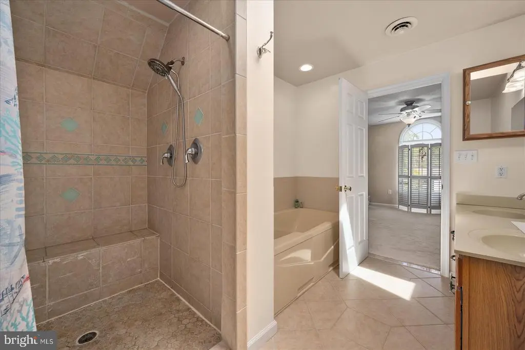 Bathroom - Jetted Tub, Bathroom - Tub Shower, Bathroom - Walk-In Shower, Built-Ins, Carpet, Ceiling Fan(s), Entry Level Bedroom, Formal/Separate Dining Room, Primary Bath(s), Recessed Lighting, Upgraded Countertops, Walk-in Closet(s), Window Treatments, Wood Floors