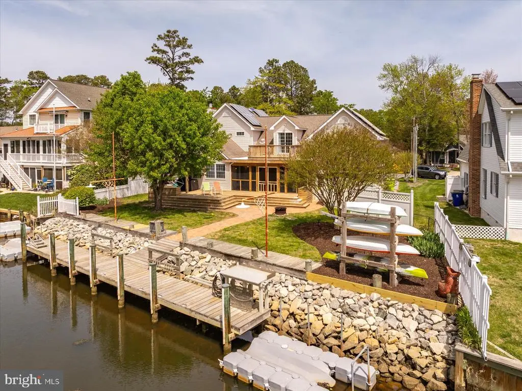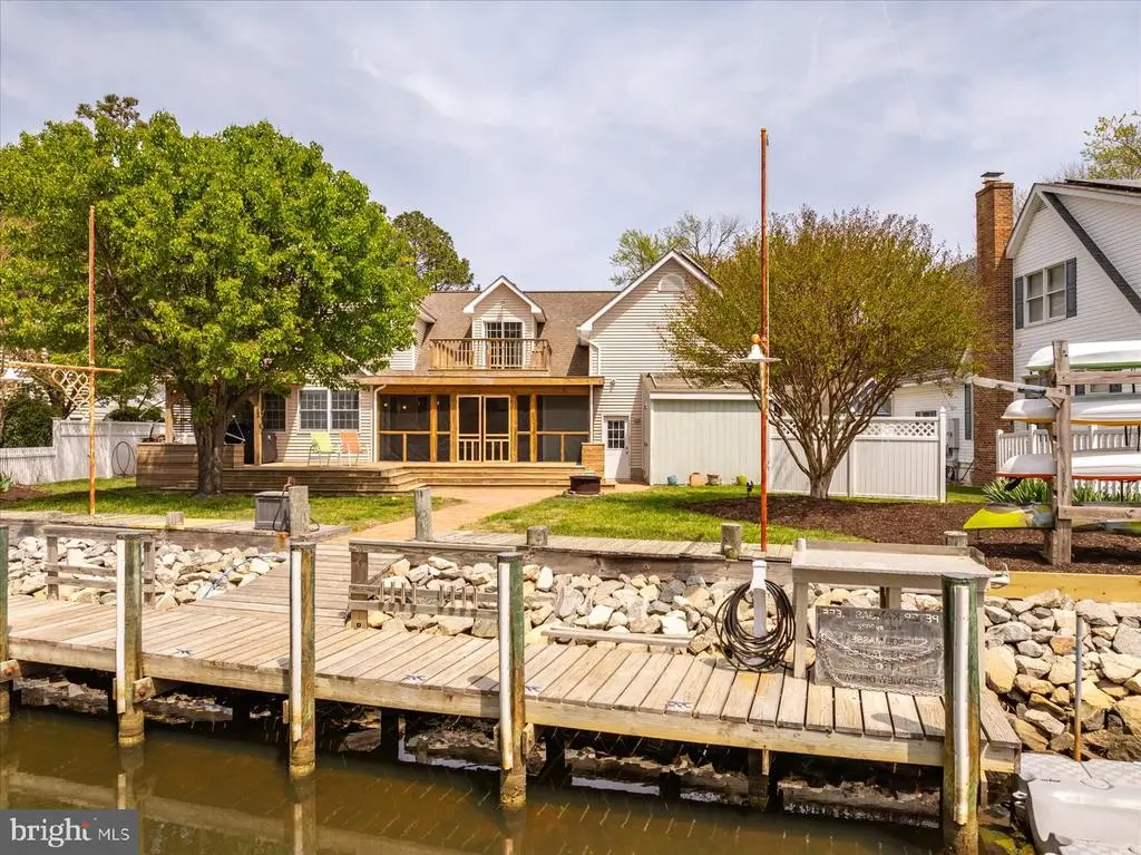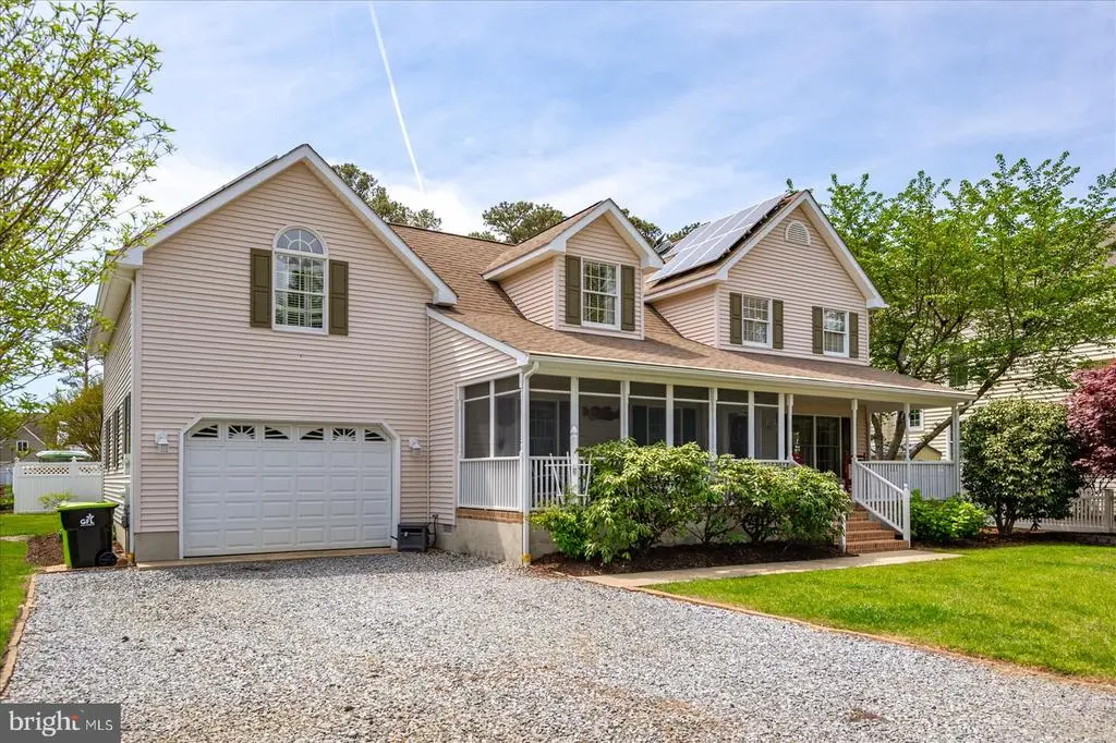 WATERFRONT! This waterfront custom home offers a well-balanced mix of indoor comfort and outdoor lifestyle in a desirable waterfront setting. This beautiful, spacious 4-bedroom, 3-bathroom canal-front home features a great room with fireplace, adjoins with a gourmet kitchen w/island, separate dining room, guest bedroom, full-bath, laundry room and a large sunroom for relaxation or entertainment. The sunroom offers wonderful water views and opens to a huge, screened porch. With beautiful southern exposure, you can step out of the screen porch to both open decking and cover decking area that can support your future hot tub. The primary suite on the upper floor includes a private balcony with canal views, a bathroom with a walk-in tiled shower and separate jacuzzi tub, as well as an additional area that can be used as an office, sitting room, or exercise area and a large walk-in closet. The top floor is completed with 2 additional guest bedrooms and guest bathroom. The property features a large private dock (48 ft !)suitable for more than one boat and 2 floating docks ideal for kayaks or jet skis, a fish cleaning station, and a spacious backyard to enjoy the waterfront lifestyle. Not to be missed is the landscaped yard with ample parking, a front covered porch, and a front screen porch and outside shower. The garage will accommodate tandem parking, shed for lawn care tools and solar panels (owned) to minimize your electric bill. Only 2 miles to Fenwick and Ocean City beaches. Boat to enjoy the sunsets, ride to area restaurants to dine by waterfront, test your fishing or clamming skills. Make Keen-wik On The Bay your home today.