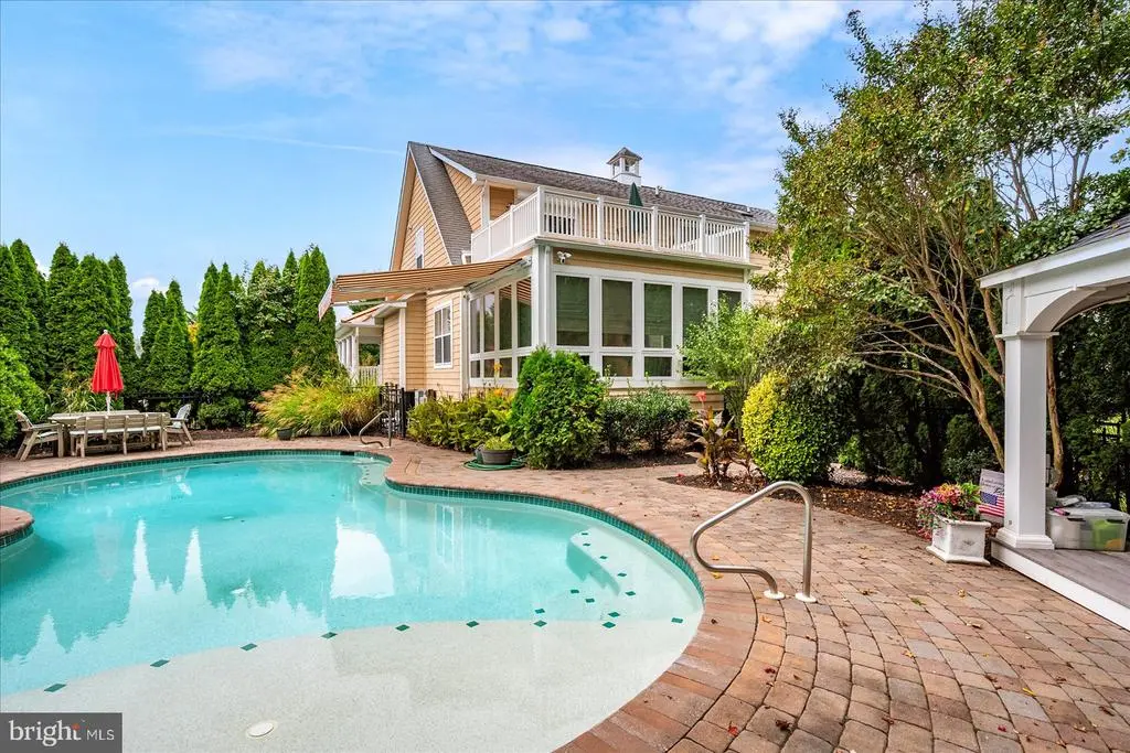 Don’t miss this rare opportunity to own one of the few Fitzgerald models in the highly desirable community of The Refuge at Dirickson Creek. Perfectly situated on a large, private lot just 2.5 miles from the beach, this home offers a heated in-ground pool, multiple outdoor living spaces, and exceptional curb appeal with its wraparound front porch, lush landscaping, and fully irrigated yard with its own well. Inside, you’ll find 4 bedrooms, 3.5 baths, and a loft that could easily serve as a 5th sleeping area. The main level features hardwood and tile flooring throughout the living spaces, a large family room with custom built-ins, a bright sunroom overlooking the pool, and an office. The recently updated kitchen boasts quartz countertops, stainless steel appliances, and ample cabinetry. The first-floor primary suite includes sliders to the rear deck, a walk-in closet, and a large en suite bath. Upstairs offers flexible living with a loft that’s perfect as a second family room, a secondary suite with en suite bath and private balcony overlooking the pool, a third bedroom with easy access to a full hall bath, and a large bonus room above the garage with walk-in storage. Impeccably maintained by the original owners, recent improvements include a new water heater and an upstairs HVAC system. The oversized 2-car side-entry garage provides abundant storage. The Refuge at Dirickson Creek offers resort-style amenities with low HOA fees, including a clubhouse with fitness center, outdoor pool, tennis, pickleball, basketball, playground, kayak racks, boat ramp access, and more. Ideally located near both Delaware and Maryland beaches, fine dining, golf, shopping, boating, and live entertainment, this home truly has it all. A rare find this close to the beach—schedule your private tour today!