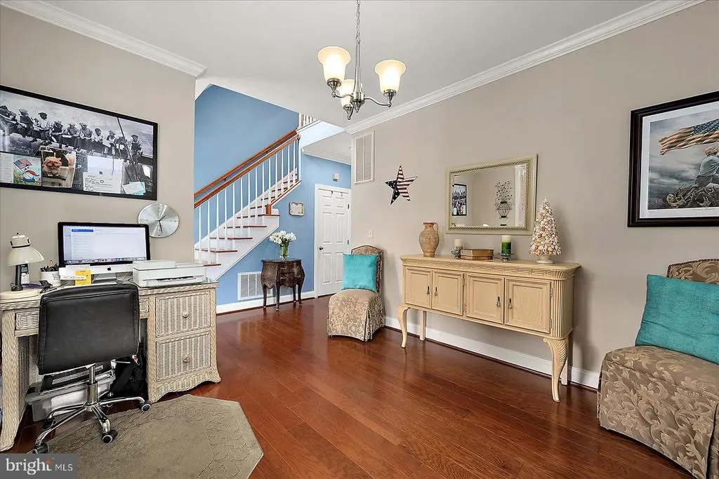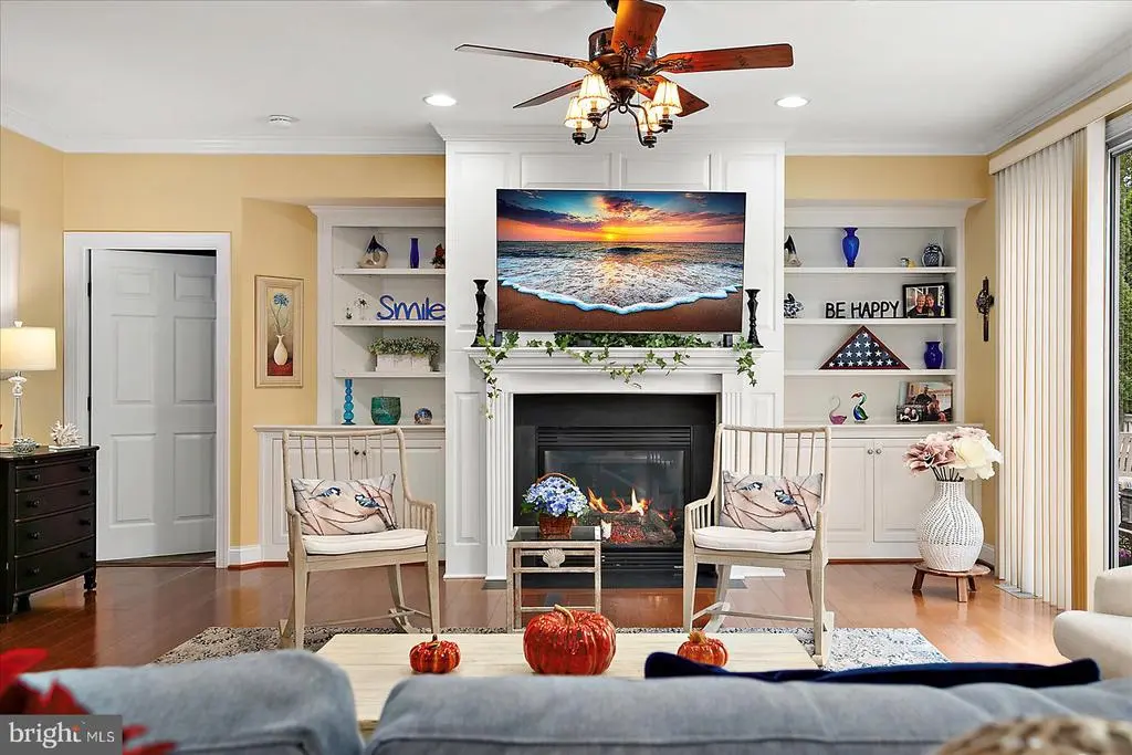 Ceiling Fan(s), Carpet, Built-Ins, Crown Moldings, Entry Level Bedroom, Upgraded Countertops, Walk-in Closet(s), Wood Floors