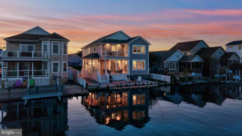 I have a riddle for you – what has four walls, a roof, actual bay access, a place to dock your boat right out of your back door AND is ready to move-in TODAY...you don’t have to wait several months for it to be built and deal with rising costs?! I will give you one hint – THIS HOUSE! Nestled along a serene canal - this captivating retreat in the sought-after maritime community of Cape Windsor blends timeless coastal architecture with designer sophistication and modern functionality. Just minutes from Fenwick Island’s pristine beaches, this home offers a rare opportunity to experience waterfront luxury where every detail feels intentional, elevated, and inspired. Designed for effortless entertaining and relaxation, the home features 4 bedrooms, 3.5 baths, with dual primary suites—one on each level— ideal for multi-generational living or hosting guests in complete comfort. From the moment you arrive, the curated exterior upgrades set the tone for the thoughtful craftsmanship that defines this property. A brick-paver driveway allowing proper curb appeal and parking arrangements for several vehicles combines elegant form with eco-friendly function and low-maintenance care while the stacked stone foundation adds to the curb appeal. Step inside to find a seamless blend of coastal light and designer refinement. The open-concept living area exudes warmth with white distressed wood flooring, a corner fireplace, and two floor-to-ceiling sliding glass doors that open to the covered deck—blurring the line between indoor and outdoor living. The kitchen is as stylish as it is functional, showcasing crisp white shaker cabinetry, solid stone countertops, and a custom tile backsplash. The dining area, wrapped in windows, captures tranquil canal and bay views—an idyllic setting for morning coffee or intimate gatherings. The main-level primary suite features a custom board-and-batten accent wall, a spacious closet, and a designer-upgraded bath with quartz surfaces and elevated lighting. Upstairs, the second primary suite offers breathtaking canal and bay views from a private balcony, along with a boutique-hotel-style bath featuring a tiled walk-in shower, jacuzzi tub along with upgraded quartz surfaces and dual vanity mirrors. Two additional bedrooms and a shared hall bath—each with thoughtful, elevated details—complete the upper level, while dual laundry areas on both floors add a touch of everyday practicality. Every aspect of this home reflects quality and carefree living—from spray-foam insulation and hurricane straps that ensure lasting integrity to a tankless water heater, vinyl architectural cedar shake siding, vinyl privacy fence and outdoor shower, brick paver drive - patio and intelligent layout designed for comfort and style. Outdoors, a covered porch invites you to take in the gentle waterfront breeze with easy access to the newly brick-pavered rear patio—ideal for lounging, hosting, or simply soaking in the serenity of life on the canal. There is even a turfed area for our four lagged friends! Just beyond, the water offers direct access to the open bay, making it a haven for boating, kayaking, and coastal exploration. The Cape Windsor community enhances your lifestyle with a pool, tot lot, and areas for crabbing and fishing, all within minutes of Fenwick Island, Delaware Seashore State Park, the Freeman Arts Pavilion, and the vibrant dining and shopping scenes of Ocean City, Maryland. ** Recent upgrades include: Stacked stone foundation, brick paver driveway + rear patio, maintenance free vinyl privacy fencing, outdoor shower, landscaping stone, turfed area, and storage area under porch. Bathroom upgrades include refreshed paint, upgraded quartz surfaces, and designer mirrors & lighting. Other notable items are an expansive floor to ceiling sliding glass door in the dining area, hardwood flooring continued upstairs, wifi thermostat and a boat lift permit which is pending. **