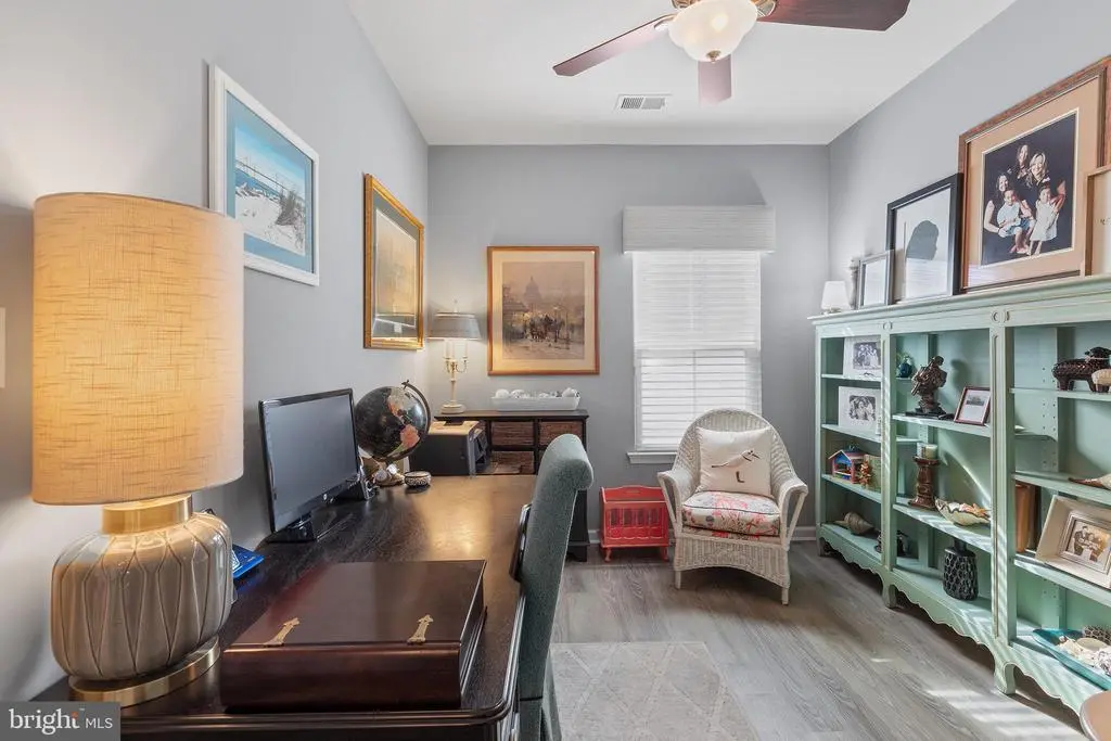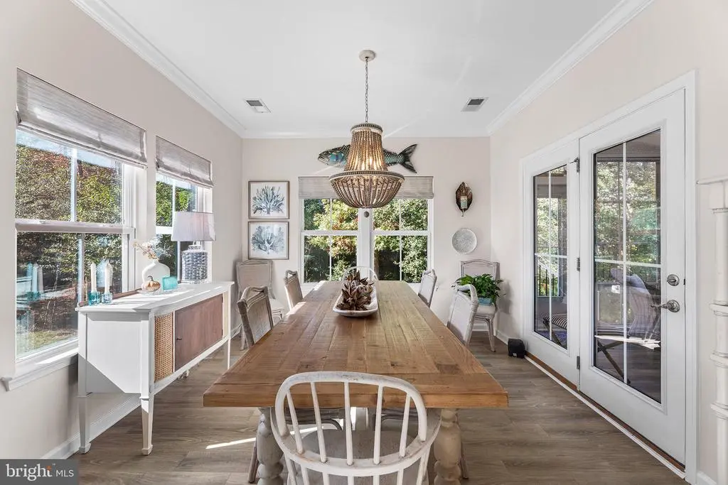 Beautifully maintained and thoughtfully upgraded, this 3-bedroom two-level home built by Ryan Homes features the desirable Andover floor plan with a partial water view and serene wooded backdrop. The freshly repainted interior showcases elegant crown molding, Hunter Douglas shades, and Nantucket blinds. The open layout includes a bright living room with a wall of windows, an inviting kitchen with an island, and a bump-out dining area with sliders leading to the 4-season room featuring a mini-split system and storage below. A composite walkway connects to the rear concrete patio, perfect for outdoor relaxation. The main floor offers a spacious Primary Suite, a second bedroom and full bath, and a home office with French doors that could easily serve as a fourth bedroom. Upstairs, you’ll find a loft area with attic storage, a third bedroom, and another full bath. The attached 2-car garage includes durable double-coated epoxy flooring. Nestled in a picturesque community surrounded by Dirickson Creek, residents enjoy access to a private marina, community pool, clubhouse, fitness center, and more!