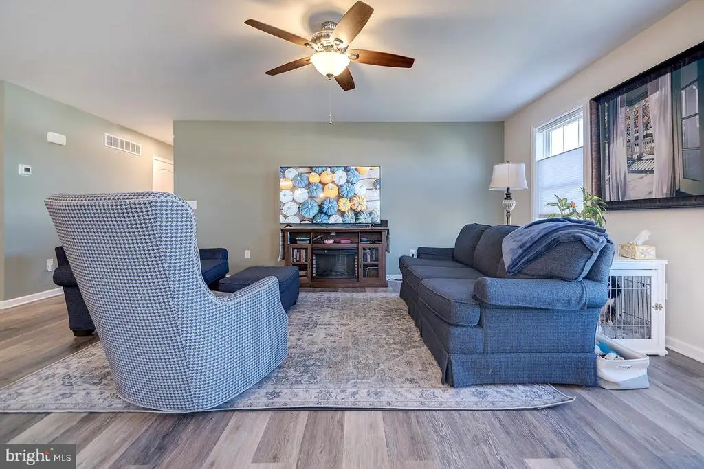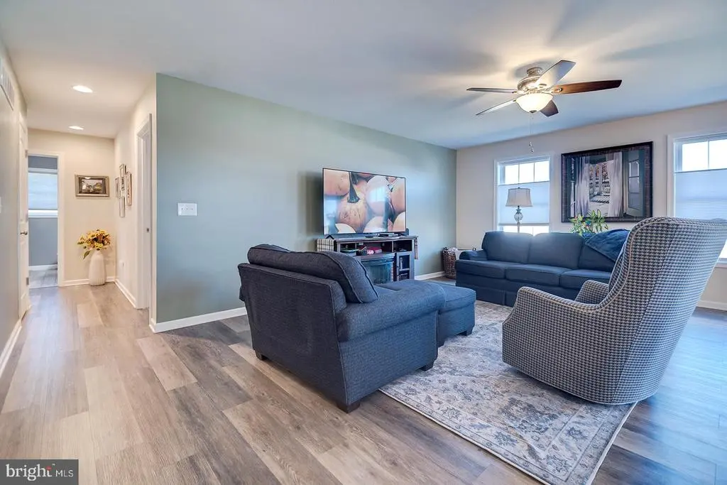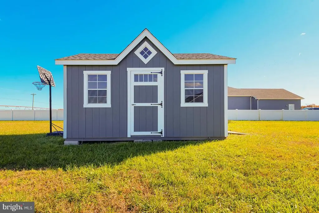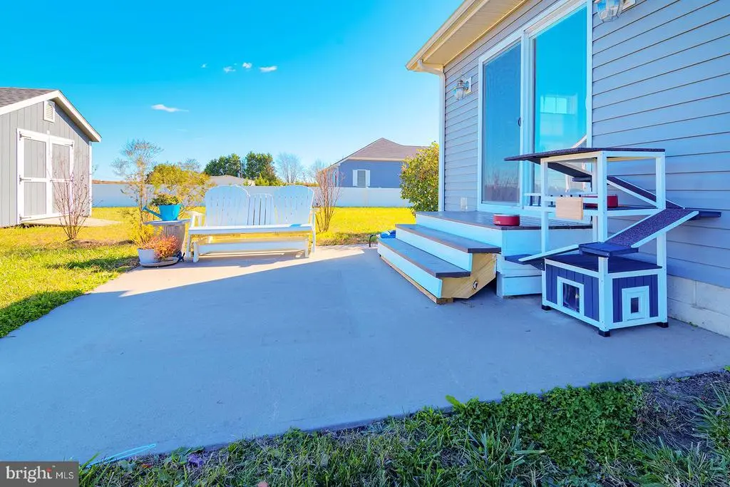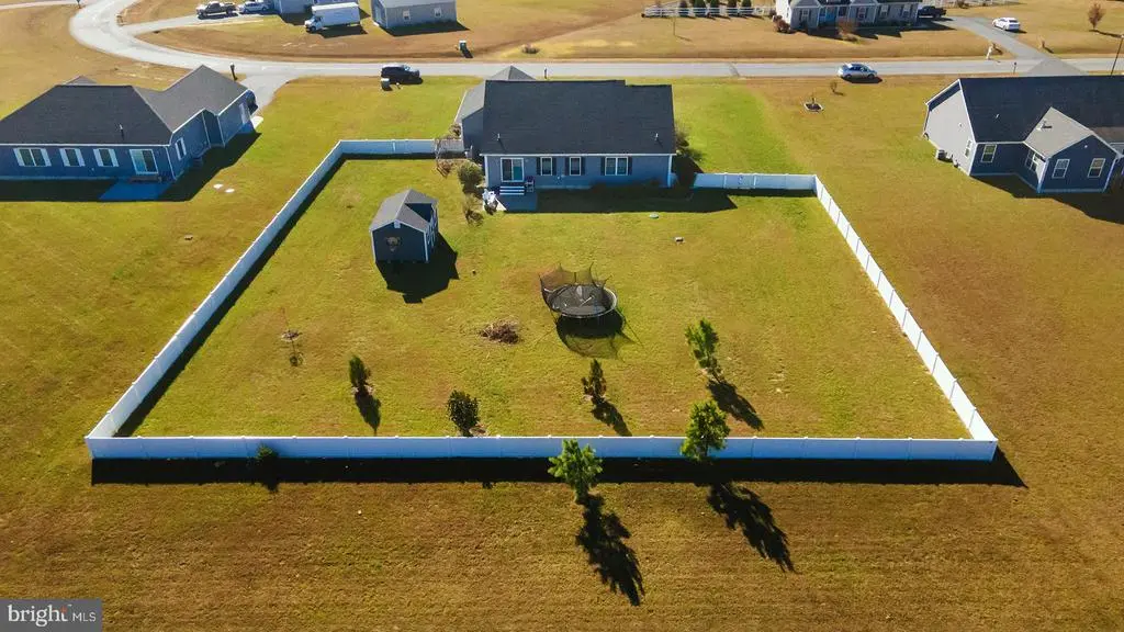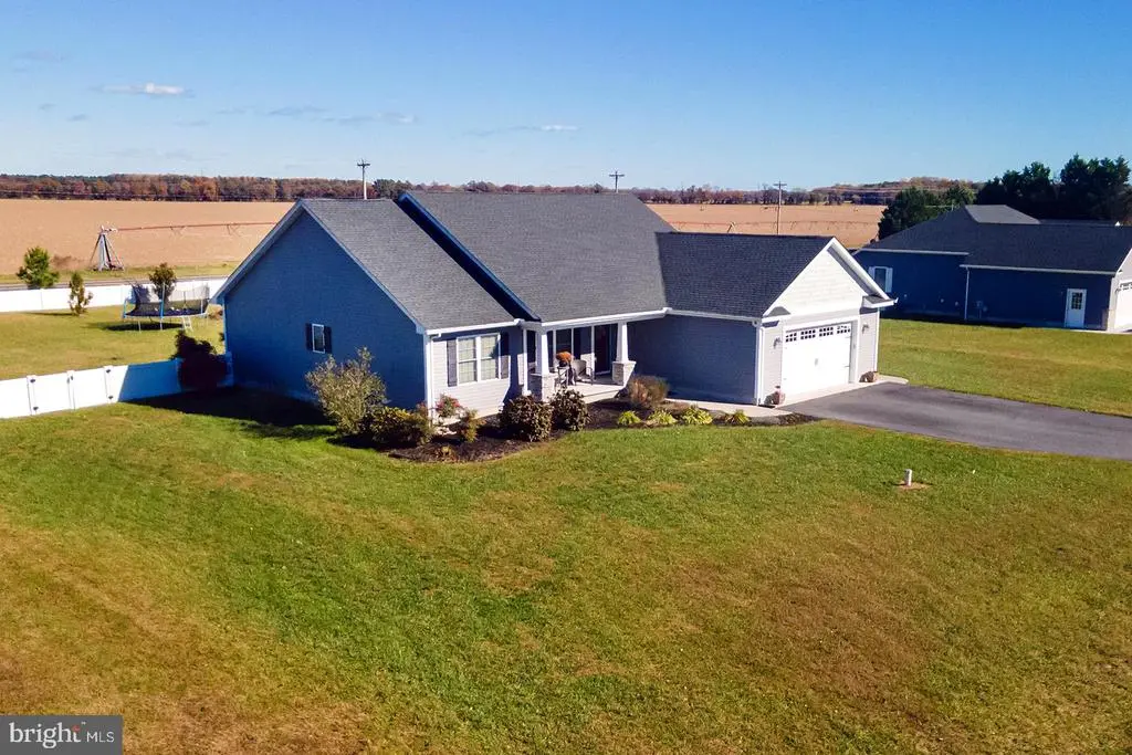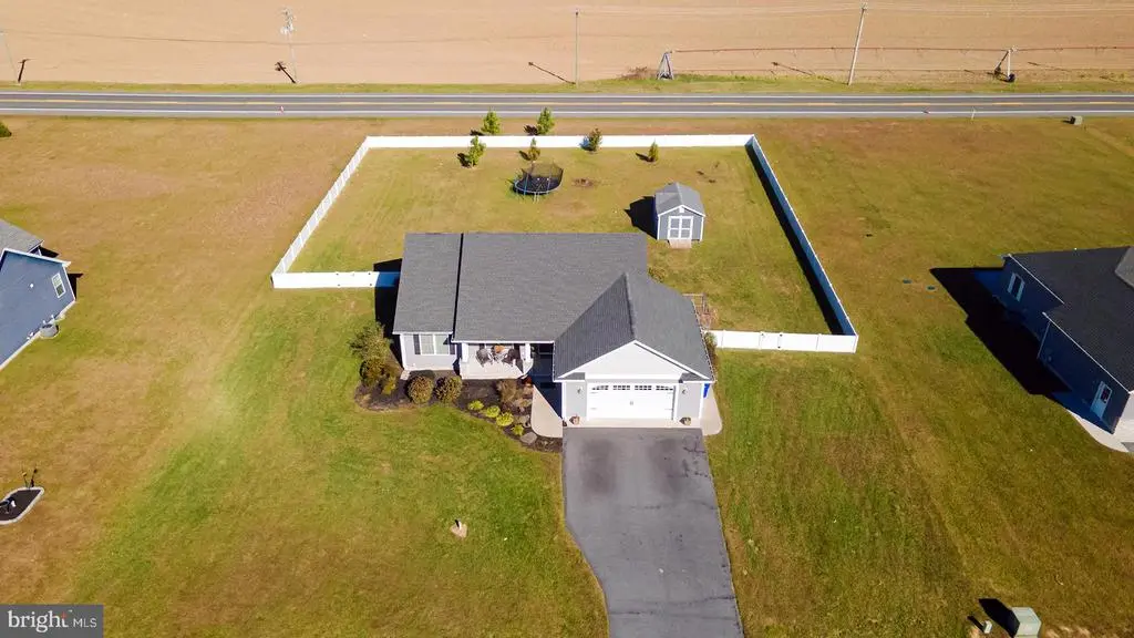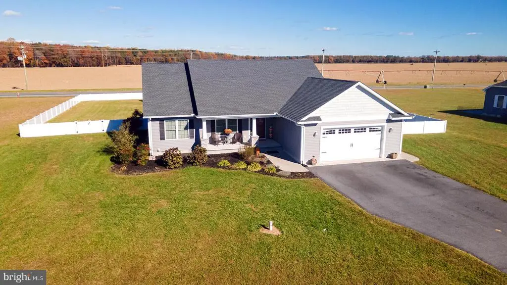 Welcome to this beautifully maintained 3-bedroom, 2-bathroom home located in the desirable Village of Jefferson Crossroads community in Lincoln, Delaware. Built in 2019 and nestled on a spacious 0.79-acre lot within the Cape Henlopen School District, this home combines the tranquility of rural living with convenient access to Delaware’s beaches, dining, shopping, and entertainment. Step onto the covered front porch and into a welcoming foyer that opens to a bright, open-concept living area featuring hardwood flooring throughout. The living room includes a ceiling fan and flows seamlessly into the dining area, highlighted by a specialty light fixture and sliding doors leading to the patio. The modern kitchen is equipped with stainless steel appliances, a tile backsplash, a center island with counter seating, and pendant lighting—perfect for both cooking and entertaining. The primary suite offers comfort and privacy with carpeted flooring, a ceiling fan, a walk-in closet, and an ensuite bathroom featuring a double-sink vanity and a step-in shower with bench. Two additional carpeted guest bedrooms share a full hall bathroom, and a spacious laundry room completes the interior. Outside, enjoy thoughtful landscaping, a fenced backyard with a patio, and a storage shed—ideal for outdoor living and hobbies. With no rental restrictions, this property offers excellent flexibility for full-time living, vacation use, or investment. Located just 15 minutes to Prime Hook and Broadkill Beaches and 20 minutes to downtown Lewes, this home provides the perfect blend of peaceful rural living and coastal convenience.