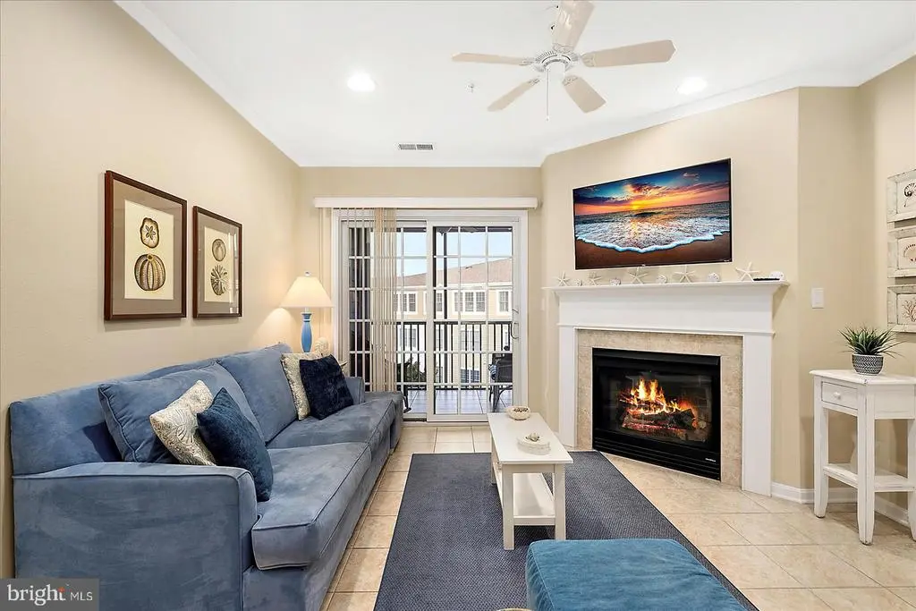 Here is a beautifully furnished 2 bd, 2 ba penthouse condominium with a den that has a prime spot in the sought-after, award-winning Bayside community! The Prime Spot (1) it is ideally situated steps from the Sunridge Center where numerous amenities are located plus where some events & live music happen. (2) It is a short walk to the state-of-the-art Aquatic Club & Fitness Center as well as the Freeman Arts Stage! (3) Take the road across the street to the Point. Here is where the beautiful bay, stunning panoramic views of the Ocean City Skyline and 38 Degrees bar & grill are located and so are several resort-style Bayside amenities! Upon entry to this top floor beauty and you instantly feel ready to enjoy and relax into the coastal lifestyle that this property offers! This condo’s welcoming & happy vibe is thanks in part to the open floorplan with an abundance of natural light and its attractive furnishings, style and layout. Relish the ease of condo living and how quickly you can drop your bags, take the elevator & be at the pools sipping a refreshing beverage while listening to live music or meeting new neighbors at the pickleball court and the choices go on from there. Desirable features are a cozy gas fireplace with a mantal in the living room which flows nicely to the dining area and then to the kitchen where conveniently the washer & dryer are in a closet. Easy to clean ceramic tiles are throughout the common space. The den has barn doors for privacy as it is currently set up as a 3rd bedroom. The owners’ bedroom has walk-in closet and an ensuite bathroom with dual vanity & walk-in shower. There’s a lovely, screened porch to get some fresh air and an owners’ storage closet out in the building’s hallway. So, whether it’s you & family or friends or renters taking some vacation time or living here year-round, 31574 Winterberry Pkwy, unit #306 is waiting and ready. Bayside is the place to be on the Delmarva coastline and only 5 miles to the beaches of Fenwick Island & Ocean City! There are two on-site restaurants & bars, 1 next to the pro shop & driving range & the other is at the Point looking at the OC Skyline. Amenities include a state-of-the-art Aquatic & Fitness center, outdoor pools, kids splash-zone, jacuzzis, playground, basketball, tennis & pickleball courts, dog park & more! At the Point are kayaks, SUPs, beach area, boat ramp, corn hole, dock & pier and more! Bayside is home to a Jack Nicklaus Signature Golf Course and has 2 unique offerings: (1) year-round life enrichment classes & activities, and (2) the Freeman Arts Pavilion where you can enjoy arts & music from local & regional performers plus national chart-topping artists performing in your backyard! Come live the Bayside Life! Don’t miss your chance, schedule an appointment to see this property in person. Remember, Life is Not a Dress Rehearsal, Own at The Beach!