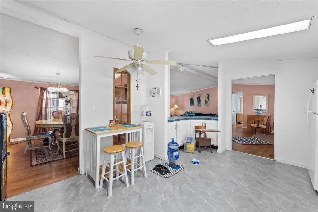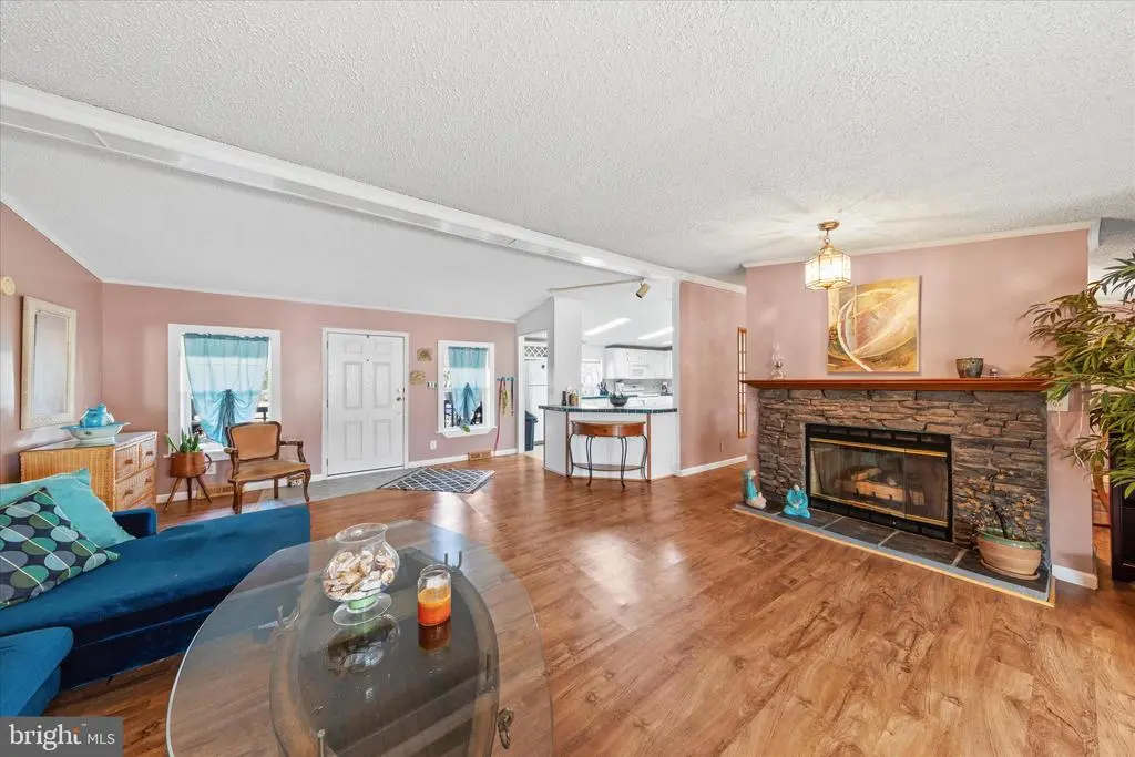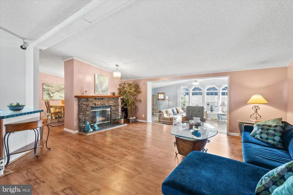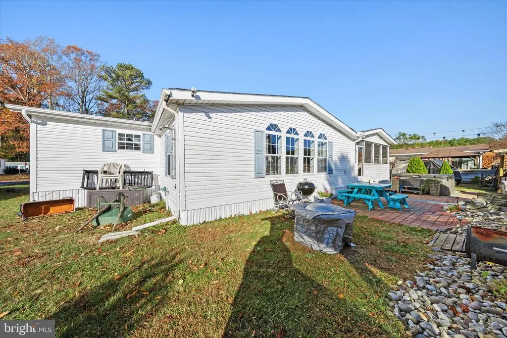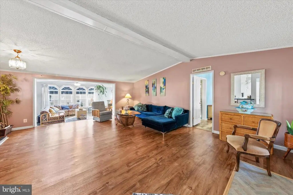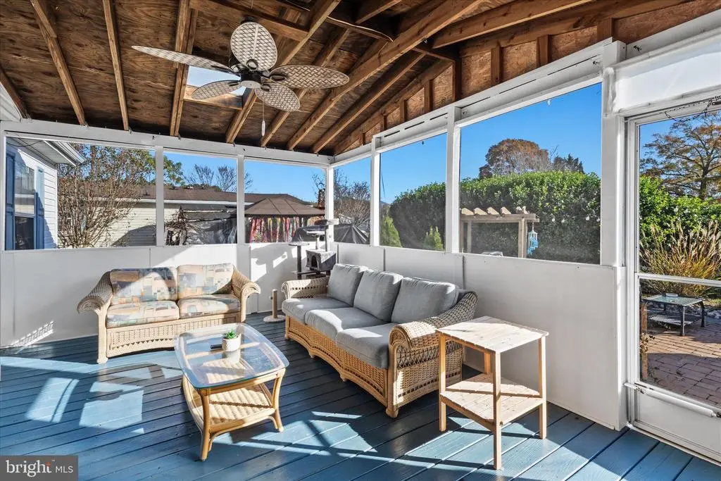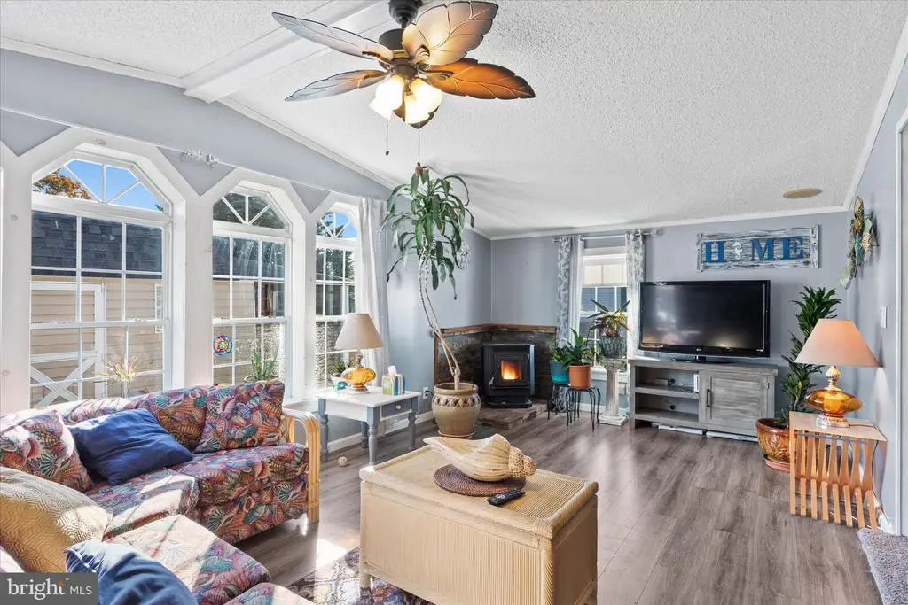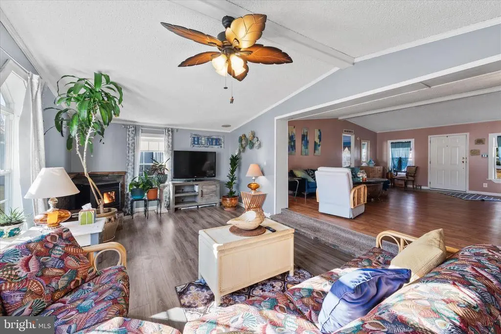 This remarkable triple-wide home offers nearly 2,100 sq. ft. of comfortable living space, thoughtfully designed for everyday living and entertaining. The charming covered front porch is perfect for morning coffee, meeting neighbors, or taking a break while gardening. Step inside to an expansive home with vinyl plank and laminate plank flooring running throughout the main living areas. The family room features a stone-faced gas fireplace and a beautiful mantle. The open kitchen is bright and inviting, with white cabinets, vaulted ceilings, a smooth-top range, over-the-range microwave, dishwasher, and also a pass-through with a countertop and space for counter stools—perfect for casual meals or hosting friends. Adjacent to the kitchen is a flexible space, ideal for a formal dining area, home office, or even a home gym. Laminate and vinyl plank flooring run throughout the living areas, bringing Off the family room, the sunroom is a standout, with Palladian windows, vaulted ceilings, a pellet stove, and a patio slider to the screened porch. This generous space overlooks the backyard patio, garden swing, and a huge shed with two separate areas—perfect for a potting shed, workshop, or extra storage. The yard is beautifully landscaped with specimen plants and trees including holly and crepe myrtles, creating a private, serene retreat. The owner’s suite is located on the opposite side of the home from the guest rooms for privacy. It includes a deep walk-in closet with organizers, and an ensuite bathroom with a jetted soaking tub, large step-in shower, and skylight. Two additional guest bedrooms share a hall bathroom with tub/shower combo. Angola Estates offers resort-style amenities, including two pools, full-sized tennis and basketball courts, playgrounds, ponds with fountains, a fishing pier, gated floating dock marina, boat ramp, kayak and canoe racks, fenced RV/boat storage, and a community center. Residents enjoy a calendar full of planned activities, including a July 4th golf cart parade. Conveniently located just 15 minutes from Rehoboth Beach and Lewes, you’ll have easy access to dining, shopping, movies, the fun of Route 1, and the beach areas. This home is a rare find: abundant square footage and versatile spaces ready for your next chapter in the Delaware beach area.