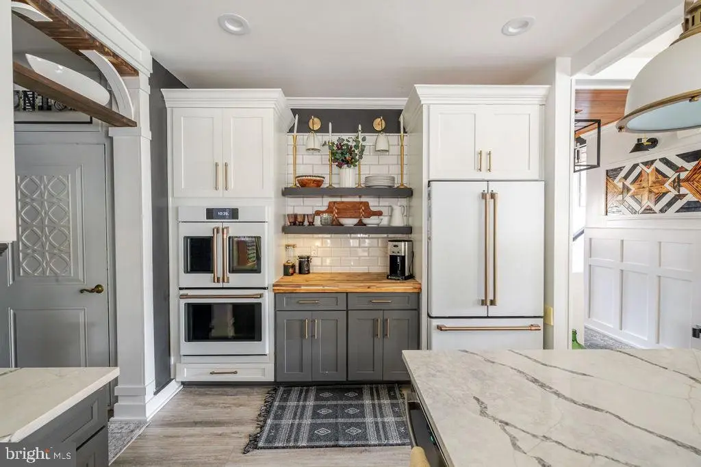 Nestled in the prestigious Bayfront at Rehoboth community sits this highly customized 3-bedroom, 3-bathroom home. Recently constructed in 2021 this home features a quality stick built construction with fiber-cement siding, PEX plumbing, tankless hot water heater and much more. In recent years this home has been highly upgraded, starting in the kitchen with new quartz counter tops, all new satin white GE Cafe appliances, butcher block accent counter and new pendant light fixtures. The master boasts a new shower, new vanity, custom trim work, custom accent walls and upgraded lighting. Throughout the rest of the home you will find all upgraded light fixtures, Emtec door hardware, upgraded facets, custom millwork and trim work, custom built-in bunk beds, brick accent wall, plantation shutters and so much more! Step outside and enjoy the beautiful paver patio and outdoor kitchen with grilling station while enjoying the privacy that this property has to offer backing up to wooded common area. Experience the exclusive lifestyle that Bayfront at Rehoboth has to offer, where luxury meets comfort in a serene setting. Embrace this rare opportunity to create lasting memories in a one of a kind home!