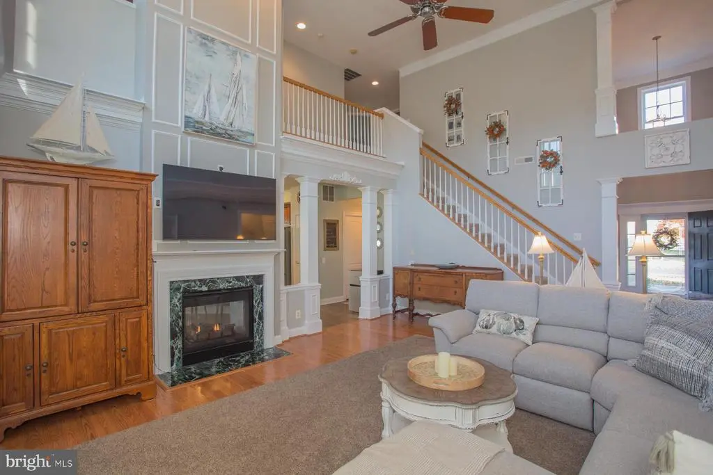 Welcome to Harts Landing, one of Lewes’ most picturesque waterfront-access communities, offering natural gas, sidewalks, a community pool, tennis, and a private kayak/paddleboard pier on Love Creek. This beautifully maintained home sits on an exceptional homesite that backs to open space, treeline privacy, and a fully fenced rear yard—ideal for pets, gardening, and private outdoor enjoyment. A welcoming stone façade and covered front porch set the tone, opening to a bright two-story foyer and a versatile first-floor office with French doors—perfect for working from home or a quiet front sitting room. The heart of the home is the expansive two-story great room with dramatic windows, elegant millwork, and a double- sided gas fireplace. The room seamlessly connects to the sun-filled kitchen and morning room. The gourmet kitchen features granite countertops, double wall ovens, 42” cabinetry, a 6-burner gas cooktop, stainless steel appliances, pendant lighting, and an island with seating for four. A full wall of windows invites light into the adjacent morning/sunroom, offering panoramic views of the backyard and rear treeline—perfect for everyday relaxing and casual dining. Step outside to one of the home’s true showpieces: an extraordinary luxury screened porch, recently added and meticulously designed with a vaulted ceiling, recessed lighting, dual fans, and a striking floor-to-ceiling stone wood-burning fireplace. This outdoor living room creates a year-round retreat for entertaining, morning coffee, or cozy evenings by the fire. Beyond the porch, the deep fenced yard offers space for gardening, play, pets, and additional seating areas. Upstairs, you'll find spacious secondary bedrooms along with a beautifully designed open landing that overlooks the great room below—adding both architectural drama and a sense of airy connection throughout the home. A private second-floor en suite bedroom offers comfort and convenience for guests or multi-generational living, while an additional flex room—currently styled as a light-filled home gym—provides endless possibilities as a studio, playroom, hobby space, or quiet retreat. Located just minutes to downtown Lewes and Rehoboth Beach, nature trails, golf, restaurants, and everyday conveniences, this home combines an ideal coastal lifestyle with true livability. Exceptional outdoor living, gracious interior spaces, and a premium lot make this a rare offering in Harts Landing.