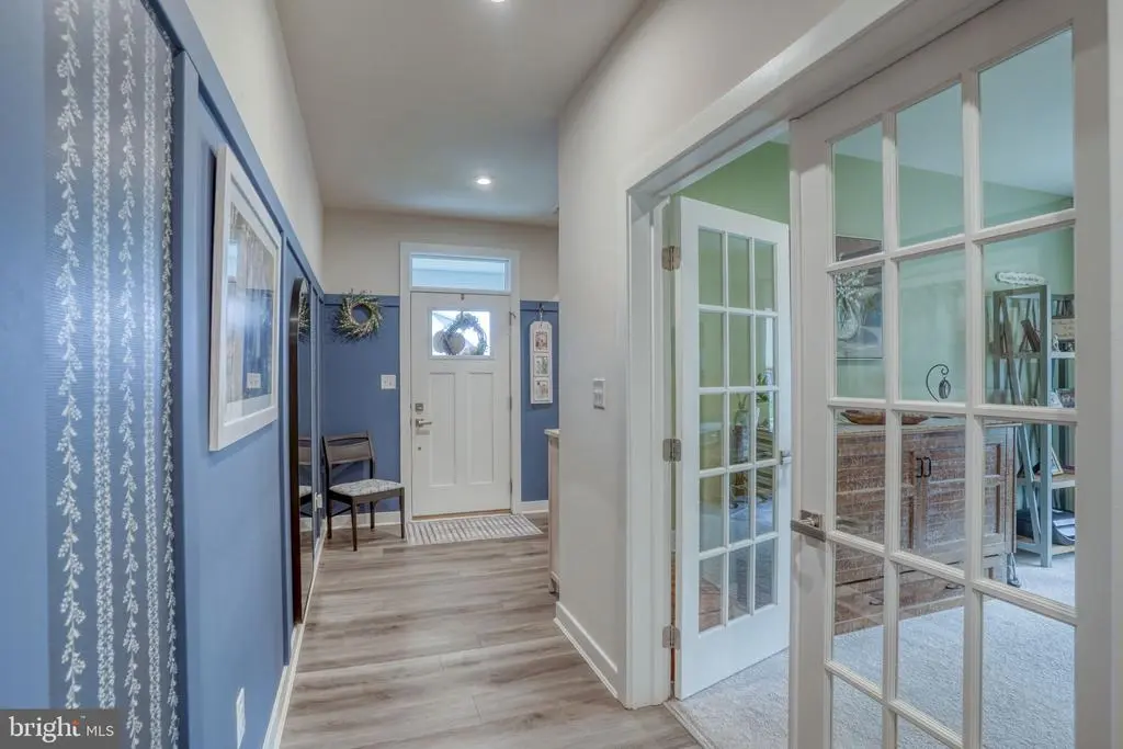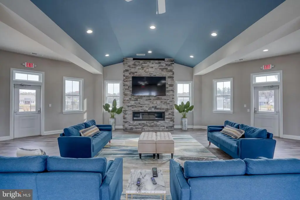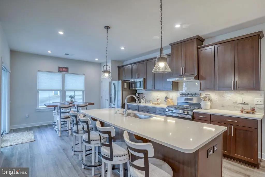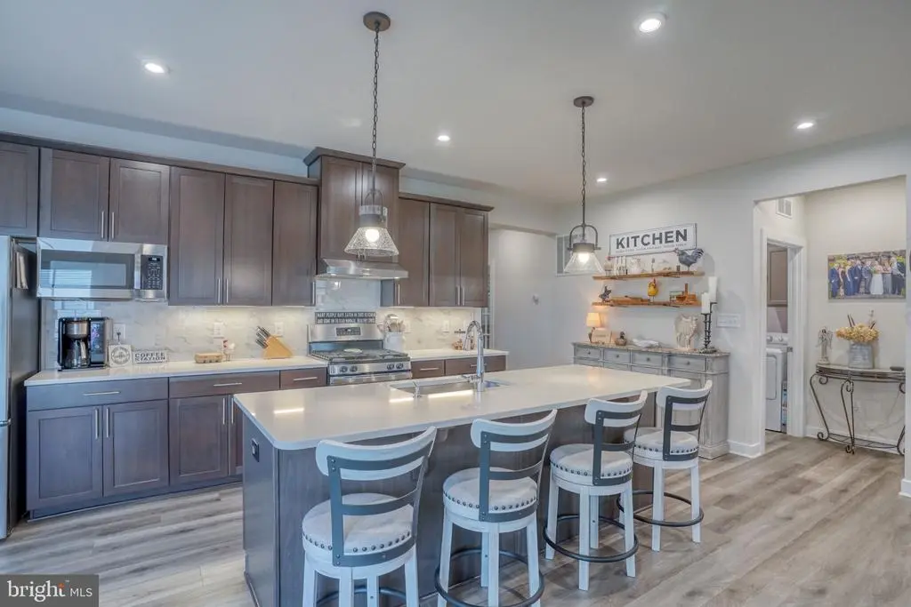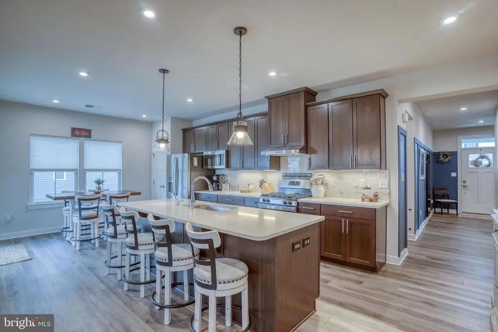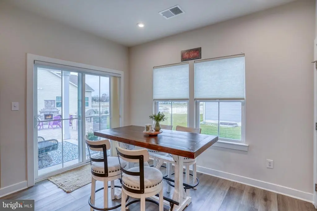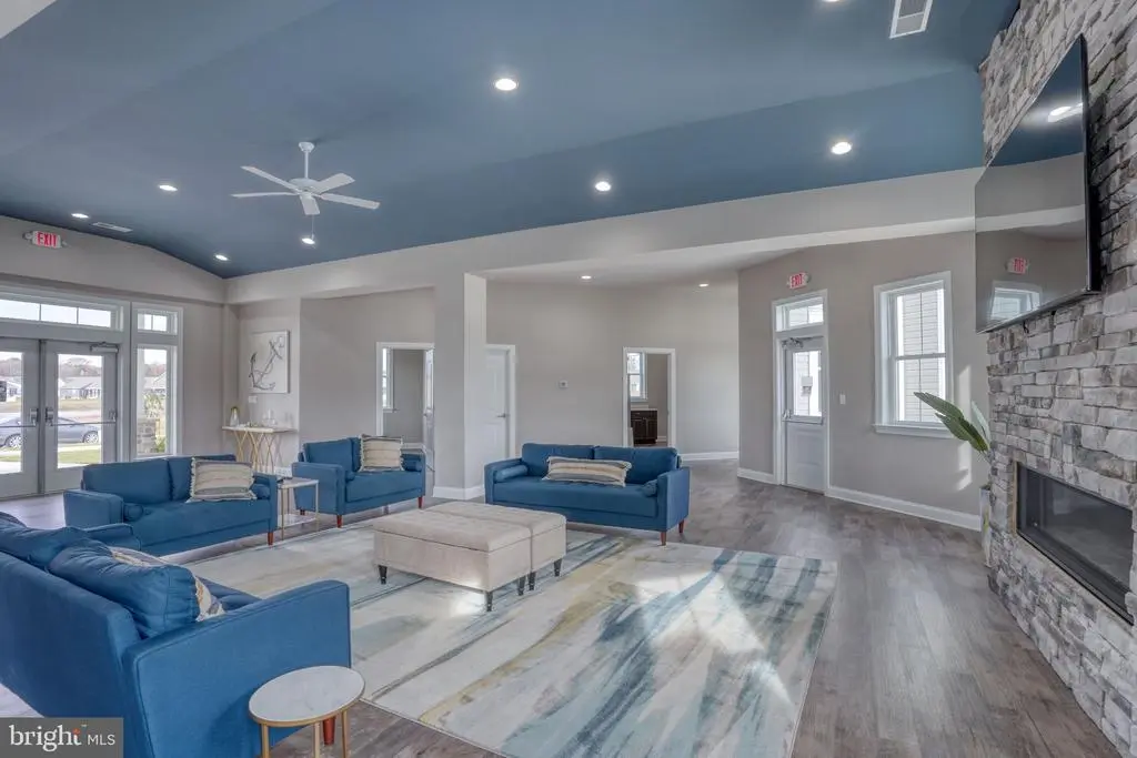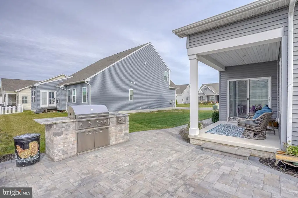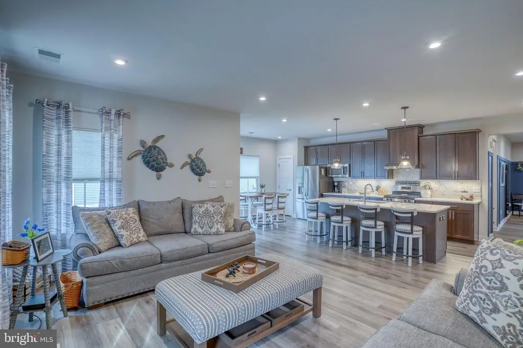 Discover this beautifully upgraded Bramante 2-story model in the sought-after community of Anchors Run, located in the Cape Henlopen School District. This nearly new (2022), 3-bedroom, 3 full bath home offers over 2,300 square feet of thoughtfully designed living space, including a dedicated office/flex room, and is filled with upgraded finishes and custom touches throughout. The entryway greets you with beautiful custom woodworking, setting the tone for the craftsmanship found throughout the home. Step inside to an inviting open floor plan featuring 10-foot ceilings, engineered hardwood flooring, upgraded interior lighting package, and a bright great room anchored by a gas fireplace. The kitchen is beautifully appointed with stainless steel GE Profile appliances, a pantry, gas range cooking, quartz countertops, subway tile backsplash, and an island with bar seating. The spacious breakfast area opens to the covered rear porch — perfect for morning coffee or evening relaxation. The privately situated primary suite includes an oversized walk-in closet, double vanity, and a large tiled shower. A first-floor guest bedroom and full bath are tucked away for comfort and privacy, while the flex room offers the ideal home office or additional guest space. Upstairs, a generous loft provides extra living space, along with another guest bedroom featuring a walk-in closet and full bath. An additional walk-in attic storage room completes the second level. Outside, enjoy a beautifully landscaped yard with pond views and an impressive hardscape patio equipped with a wood burning fireplace, wood storage, built-in grill, and pavilion ready foundation — perfect for entertaining year-round. Anchors Run offers spring-fed ponds, walking paths, a clubhouse, outdoor pool with splash zone, fitness center, and future pickleball courts — offering residents a truly low-maintenance lifestyle with exceptional amenities. Low HOA fees include lawn maintenance and a community irrigation system for owners, resulting in no added water costs. Delaware Electric Co-Op and natural gas help keep utility costs low. Skip the wait for new construction! Move right in and enjoy the peace of mind of a transferable 10-year structural warranty. Located just minutes from Lewes Beach, Cape Henlopen State Park, Rehoboth Boardwalk and the vibrant dining and shopping of downtown Lewes and Rehoboth, this home delivers the finest in coastal living.