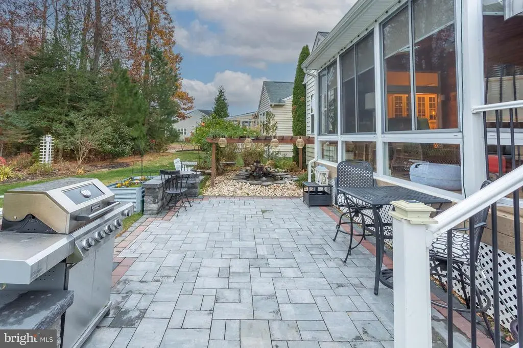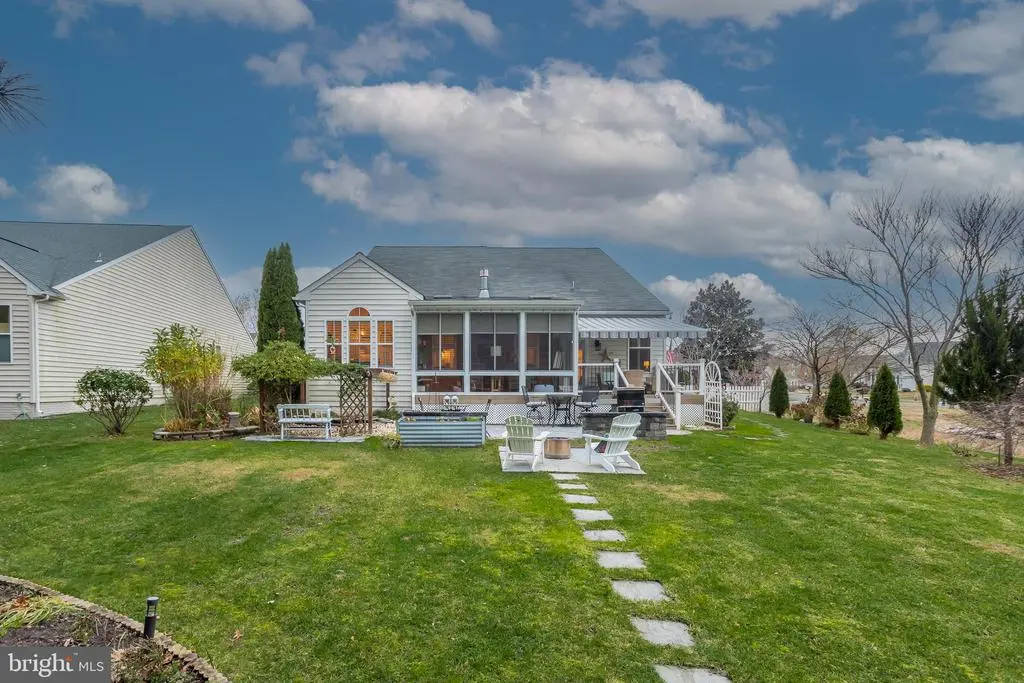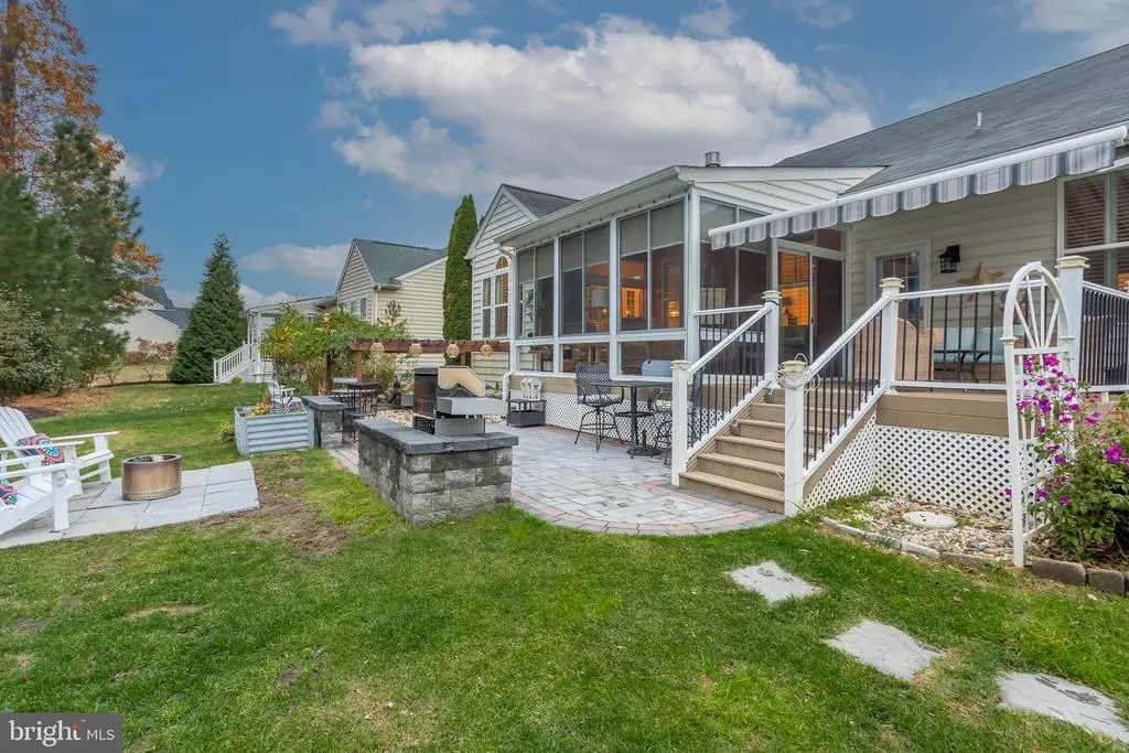 Welcome to this beautifully appointed ranch home, perfectly situated on a meticulously landscaped lot offering exceptional privacy and year-round enjoyment. Thoughtful hardscaping, a serene koi pond, an inviting fire pit, and a spacious deck with a remote-control awning create an outdoor oasis ideal for relaxing or entertaining. The property backs to a tranquil tree line, with a community pond positioned on one side, ensuring both beauty and seclusion. Step inside to discover three bedrooms and two full baths, including a private primary suite featuring a luxurious four-piece bath with a jetted soaking tub and a seated shower. The home’s flowing layout includes gleaming hardwood floors, a welcoming great room with a gas fireplace, and a bright four-season sunroom complete with an electric fireplace and peaceful views of the backyard retreat. The heart of the home is the gourmet kitchen, thoughtfully designed with an island and breakfast bar, upgraded stainless steel appliances, gas cooktop with stainless steel range hood, double wall ovens, and an upgraded glass front refrigerator. Adjacent to the kitchen is a breakfast room and the great room for that open floor plan feel. There is a formal dining room that can also be used as a flex space given the needs of your family. Having two areas for table space offers flexibility for casual mornings or elegant gatherings. From indoor comfort to outdoor living, this home offers a rare blend of beauty, function, and privacy—a truly move-in-ready gem just waiting for its next owners to love it. Some recent upgrades include a new gas HVAC system, New retractable awning, the paver patio, encapsulated crawl space, Plantation shutters throughout most of the home, new light fixtures and an updated hall bah. Come take a look today!