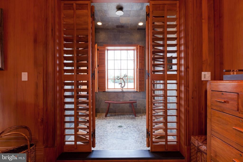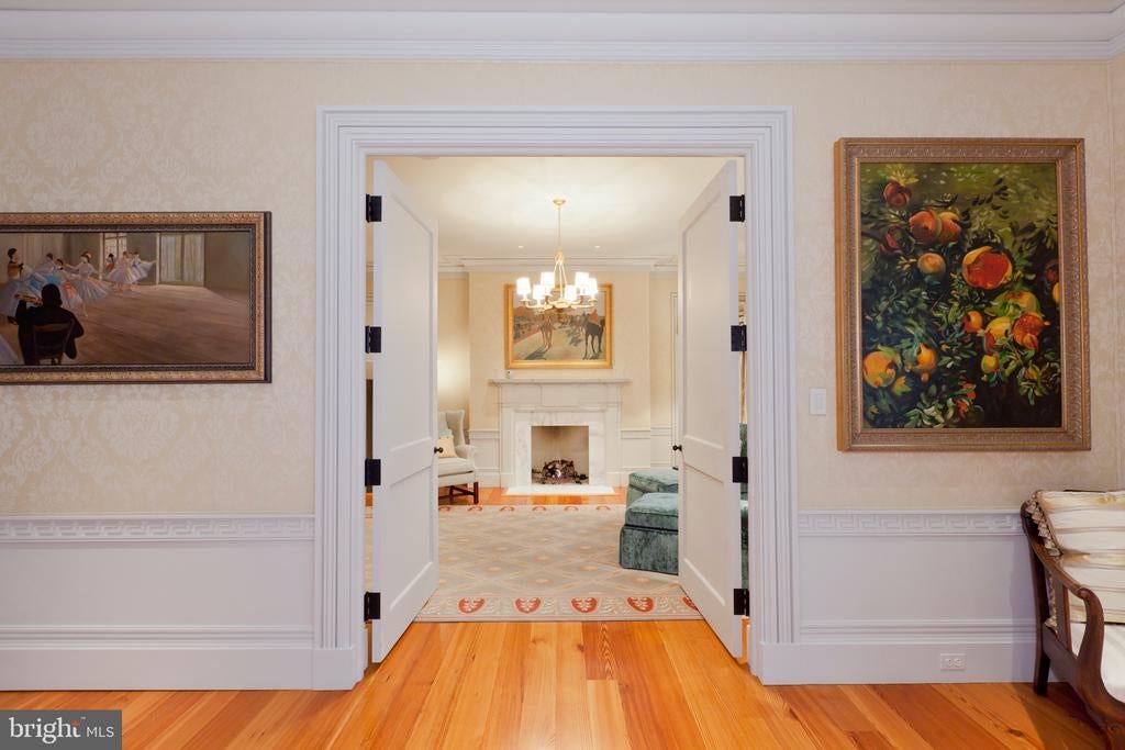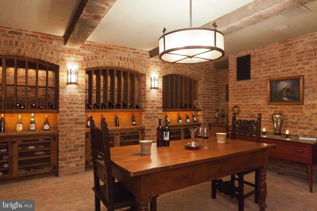 Bar, Built-Ins, Crown Molding, Exposed Beams, Walk-in Closet(s), Wood Floors, Wine Storage, Shades/Blinds, Double/Dual Staircase, Wainscotting