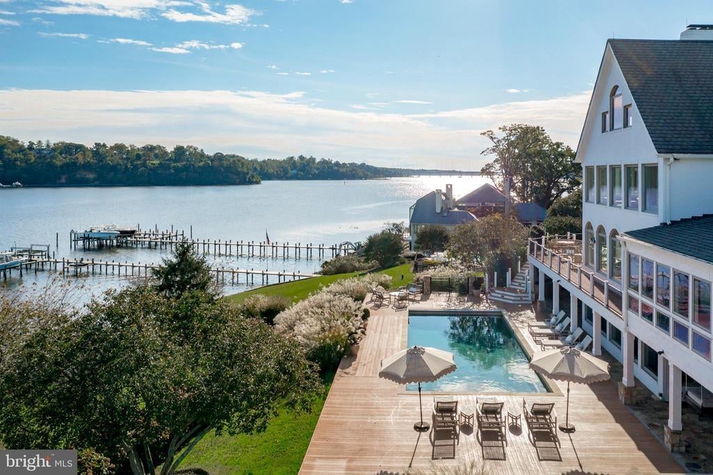 This Severn River Waterfront Estate is a rare and breathtaking Annapolis retreat. Experience the ultimate in waterfront living in this exquisite residence, a true masterpiece offering unparalleled panoramic water views. Nestled on a pristine one-acre site in the prestigious Point of The Downs, this custom-built legacy home has been meticulously updated to perfection, creating the ideal setting for unforgettable family gatherings, holidays, and retreats. Spanning four levels of immaculate living space, this residence boasts designer finishes throughout. The grand chef’s kitchen is a showstopper, featuring elegant white cabinetry, a Sub-Zero refrigerator, a custom bar area, and multiple dining spaces. The luxurious primary suite is a private sanctuary, offering breathtaking water views. Two home offices provide the perfect work-from-home setup, while an elevator ensures seamless access to all levels. Indulge in exceptional amenities designed for both relaxation and entertainment. Six gas fireplaces create warmth and ambiance, while the in-home theater offers the ultimate cinematic experience. A private gym, sauna, and steam room provide a space for wellness and rejuvenation. Outside, the PebbleTec waterside pool, hot tub and outdoor fireplace create a resort-style atmosphere perfect for entertaining or unwinding. For boating enthusiasts, the private deep-water pier features an eight-foot mean low water depth, three slips, and two lifts with 12,000- and 20,000-pound capacities. A three-car garage with 2 electric charging stations and circular driveway provide ample parking for residents and guests alike. This is more than just a home—it’s a lifestyle. Don’t miss this rare opportunity to own one of Annapolis’ finest waterfront estates on the Severn River.