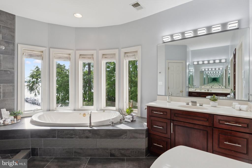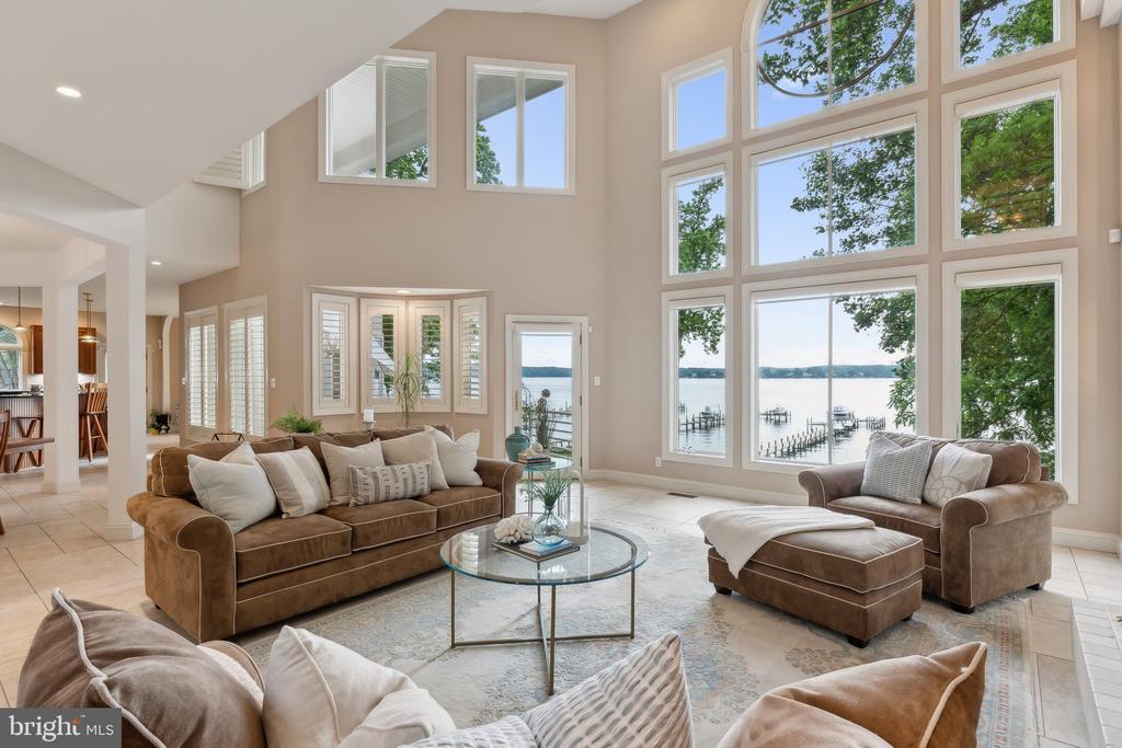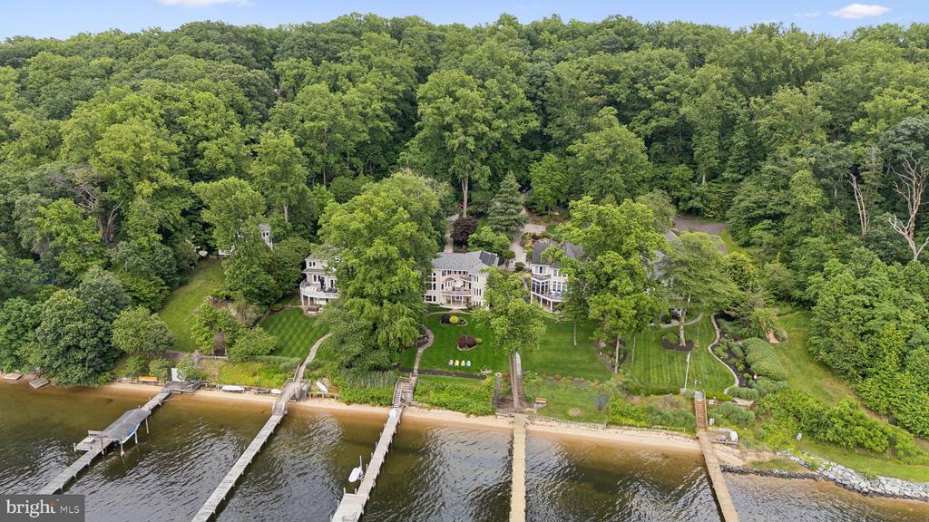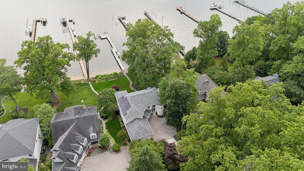 "Sunset on the Severn" — A gated, custom contemporary estate perched on 72 waterfront feet with a private pier, boat & jet ski lifts. A dramatic two-story great room with floating catwalk and wall of glass serves as the heart of this entertainer’s dream. Just 15 minutes from downtown Annapolis, this Severna Park residence offers refined seclusion with seamless access to the heart of the Chesapeake. Designed to open upward and outward—toward light, toward water—every inch of this home invites you to embrace the surrounding beauty and live in rhythm with it. The main level blends form and function, anchored by a spacious eat-in kitchen and breakfast bar that flow effortlessly into both formal and informal living areas. A tucked-away family room with custom built-ins creates a cozy retreat, while art niches and clean architectural lines lend a sense of curated calm. Upstairs, the expansive primary suite features a private balcony with tranquil views, a custom walk-in closet, and a spa-like bath with dual vanities, a jetted tub, and a walk-in shower. A rear staircase leads to two additional bedrooms, a full bathroom, and a dedicated upstairs laundry. The walkout lower level is built for entertaining, featuring a stunning antique Victorian bar and a generous recreation room with an additional bedroom and a full bath. Just outside, a stone patio and manicured gardens offer a peaceful escape where birdsong and river breezes create a sense of timeless calm. Additional highlights include an oversized three-car garage with extensive storage, solar panels for year-round efficiency, a stone-paver motor court, a lily pad pond, and a garden path that gently winds to the private waterfront. Here, you don’t just live by the water—you live in rhythm with it. Affectionately named Sunset on the Severn for its breathtaking evening views, you will absolutely love being home.