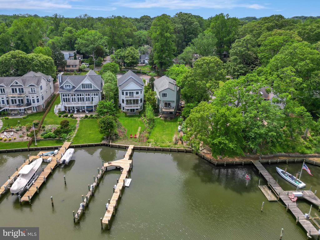 Welcome to 139 Spa Drive – A Stunning Waterfront Craftsman Home on Spa Creek! Update to public records - Use and Occupancy issued in 2025. Experience the best of coastal-inspired living at this beautifully designed, single-family home located directly on Spa Creek. This exquisite residence offers three fully finished levels, each with expansive walls of windows that flood the home with natural light and showcase breathtaking water views. The open-concept layout is ideal for both entertaining and everyday living. A gourmet kitchen sits at the heart of the home, complete with custom shaker cabinetry, quartz countertops, a stylish tile backsplash, premium Bosch appliances, and an oversized center island that offers ample seating and storage. The adjacent Great Room features a cozy gas fireplace and opens to a large waterside deck—perfect for enjoying the serene surroundings year-round. Upstairs, the luxurious primary suite offers a tranquil escape with its own private balcony overlooking Spa Creek, a second gas fireplace, and a spa-like bathroom featuring a double vanity, freestanding soaking tub, frameless glass walk-in shower, and a linen closet. The expansive, under-finished walk-in closet is a blank canvas offering endless potential to perfectly reflect your personal style and become a dream space. Two additional generously sized bedrooms each have their own beautifully appointed en suite bathrooms, and a convenient second-floor laundry room adds everyday ease. The lower level offers approximately 1,300 square feet of finished living space, including a bright and spacious walk-out family room plumbed for a future wet bar, a full bath, an egress fourth bedroom, and two storage areas. The recreation space opens to a stone patio and professionally landscaped yard—ideal for hosting or relaxing in style. Built with lasting quality and exceptional craftsmanship, this home features 2x6 framing, Hardie Plank siding with stone accents, Anderson high-efficiency windows, and a durable standing seam metal roof. Inside, you’ll find 9-foot ceilings throughout, solid wood interior doors, engineered hardwood floors, and detailed architectural millwork. Outdoor features include a bluestone front porch and rear patio, a paver driveway, and professionally designed landscaping. The home is equipped with three heating and cooling zones, a propane tank servicing both fireplaces and the kitchen range, and a full-house sprinkler system with recessed heads. Whether you’re an avid boater or simply cherish the tranquility of waterfront living, this home delivers a rare combination of elegance, comfort, and direct water access. Enjoy your private, fully outfitted 90-foot slip with a 16-foot width, 54-foot finger pier, and 220-foot platform, and a mean low water depth of 4.5 feet—making this an unparalleled waterfront offering.