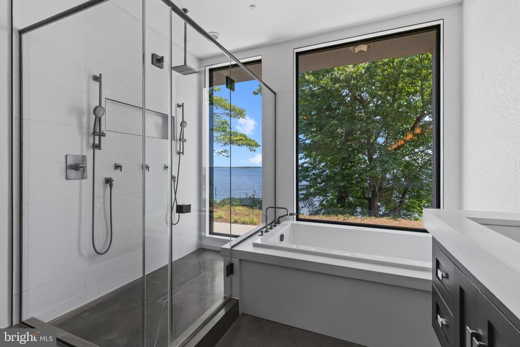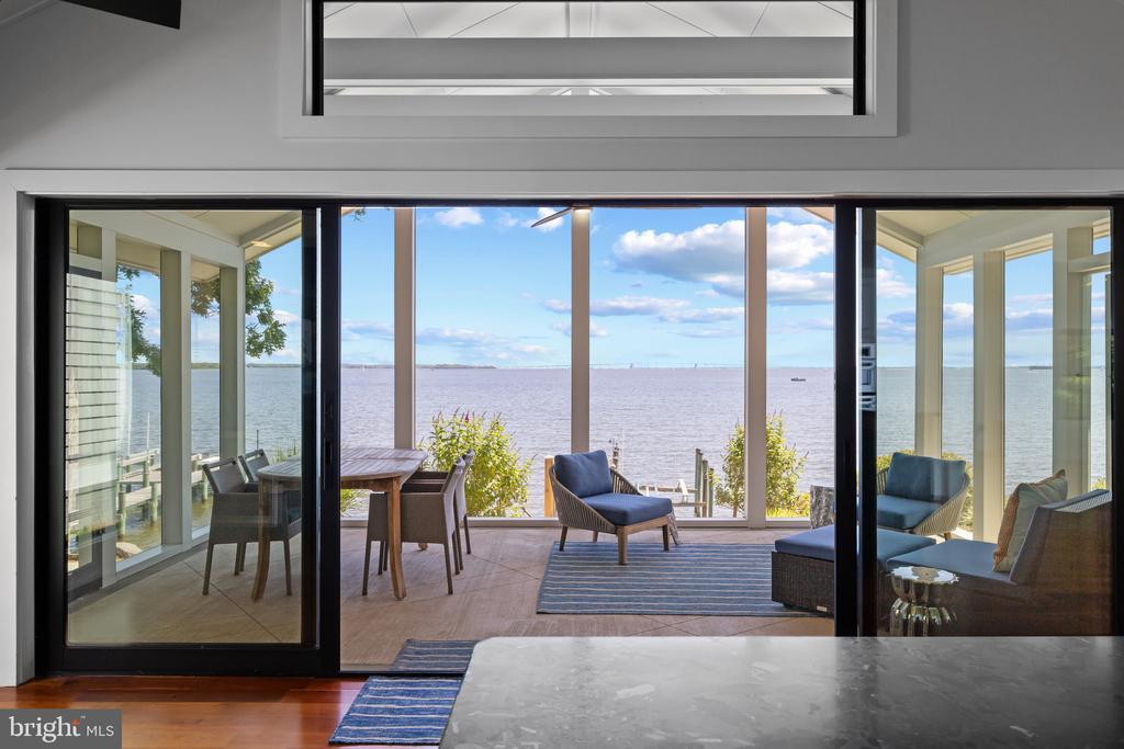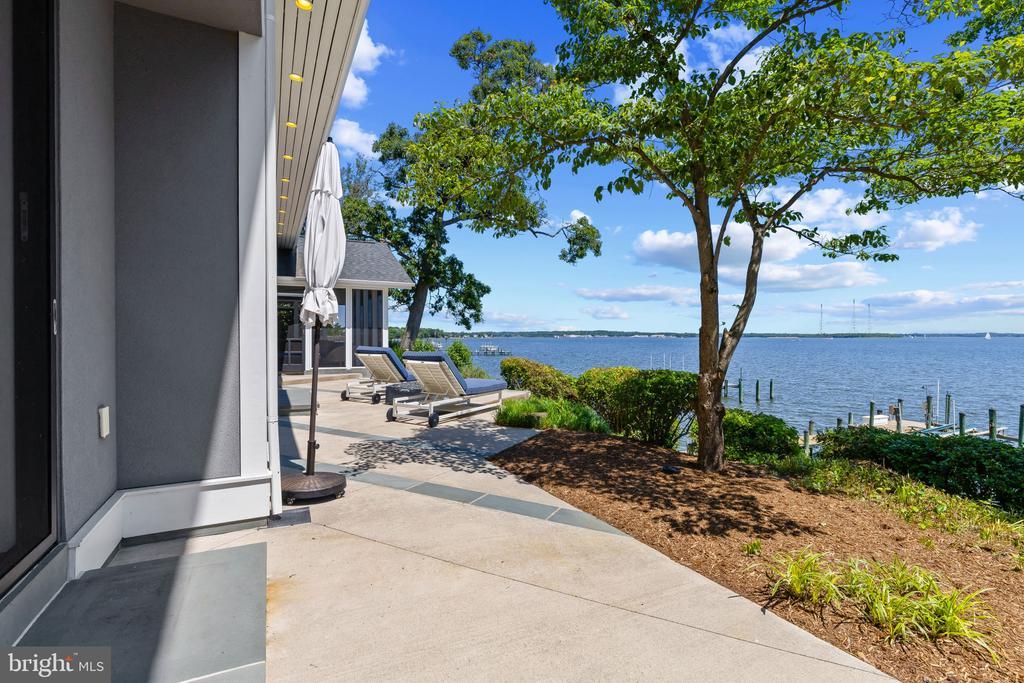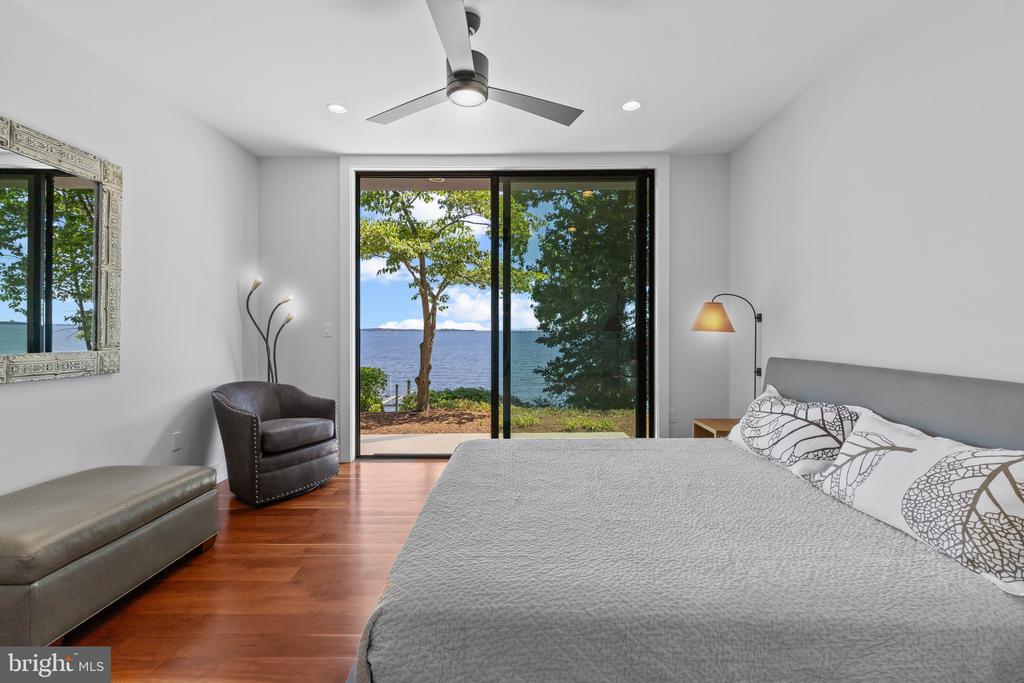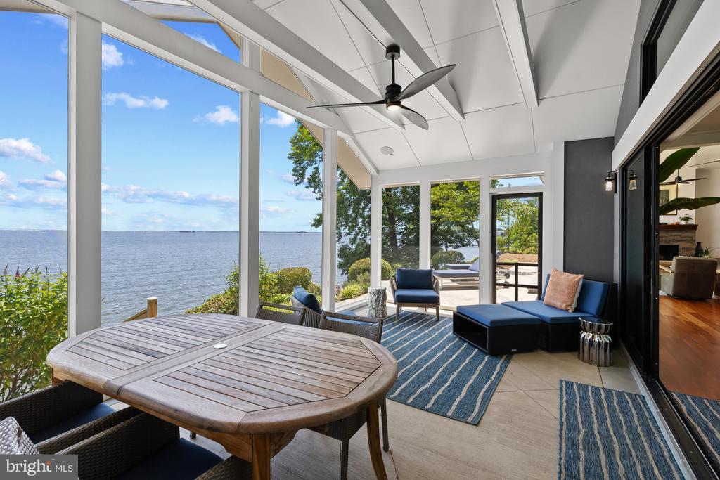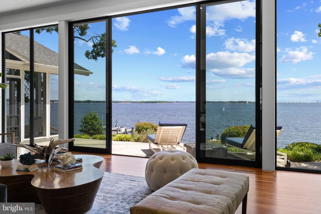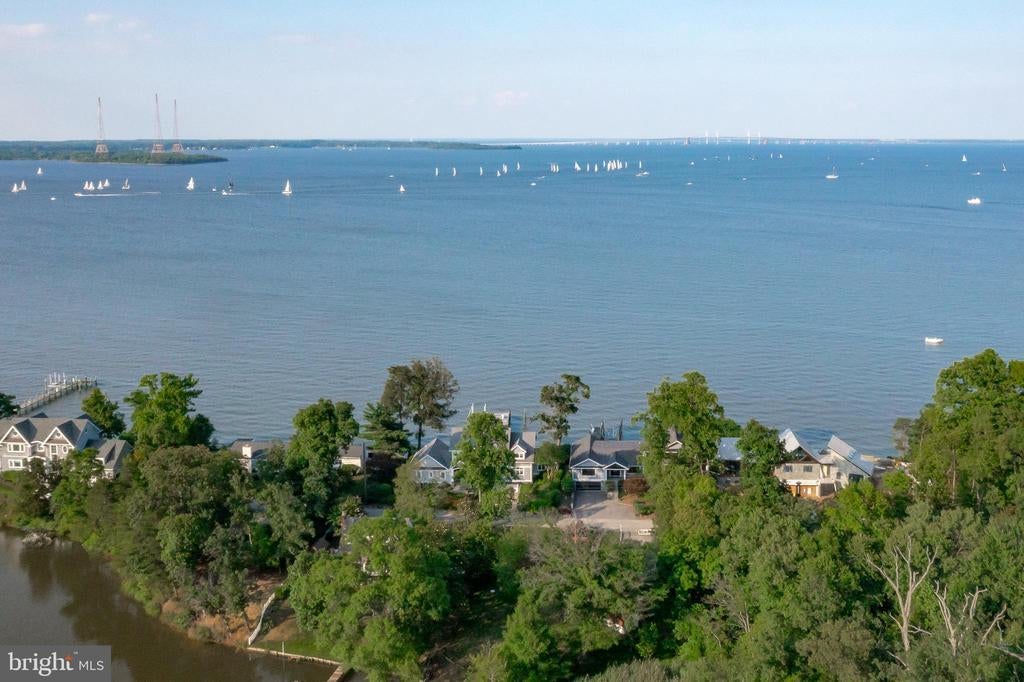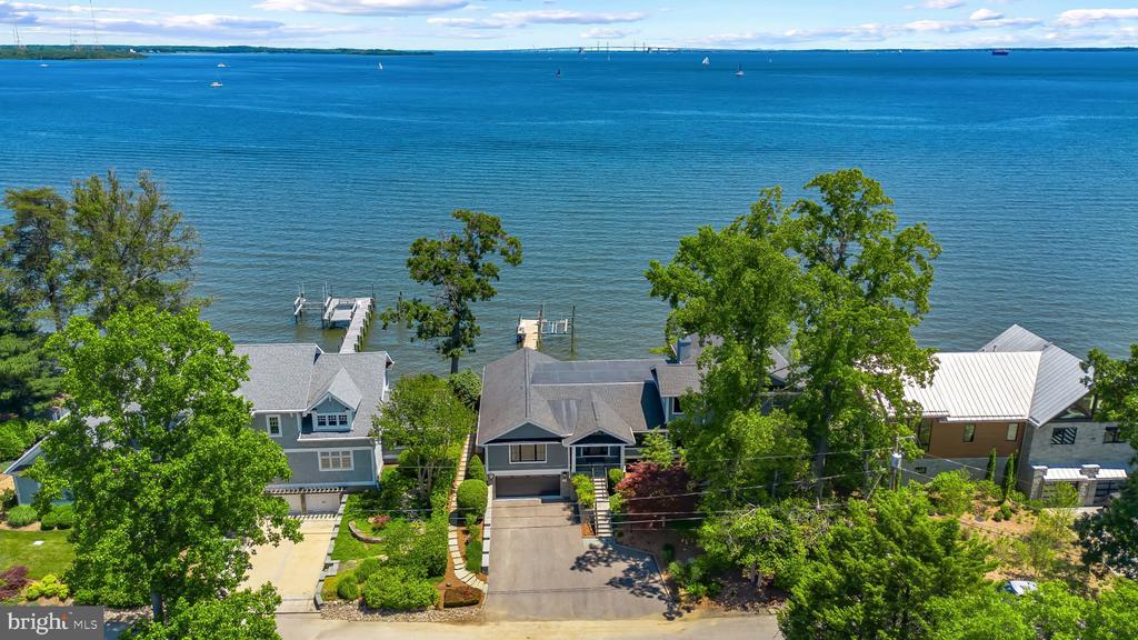 Life will never be the same. This slick and sleek coastal contemporary is beautifully designed for optimal waterfront living. With six bedrooms (FIVE ensuites), six full baths and one half bath, waterviews are visible from nearly all living spaces and bedrooms (and three bathrooms, to be fair). Witness the walls of windows on the first level, facing the Chesapeake Bay to the East and Severn River to the Northwest; one will never be bored with the marvelously incessant theatre of watercraft and nature. Enjoy morning coffee out on the open air patio, down at the pier, or in the large, screened porch. If weather is uncooperative, stretch out in the massive open living area, or retreat to one of two second floor water-facing rooms (one perfect for sitting room/office) to take in a new perspective. This home was fully renovated in 2017, sporting gorgeous custom light cherry 5" wood floors on the first and second level and showcasing unique custom, open staircases with black cable handrail system. There are two primary bedroom ensuites; one on the first floor featuring concrete shower floor, bathroom floor and cast concrete countertop. With generous, custom closets and oversized windows featured in each room, both residents and guests are guaranteed to render a five star rating for their stay and experience. This property is one block from 70 acres of walking trails and two blocks from the community beach, playground, picnic pavilion and firepit.