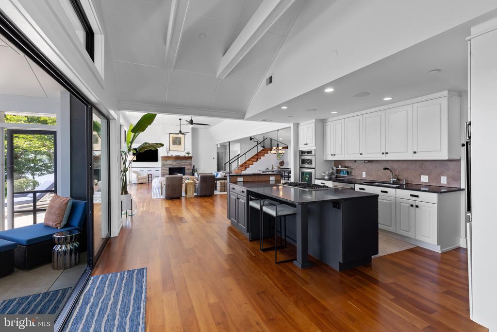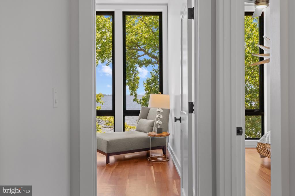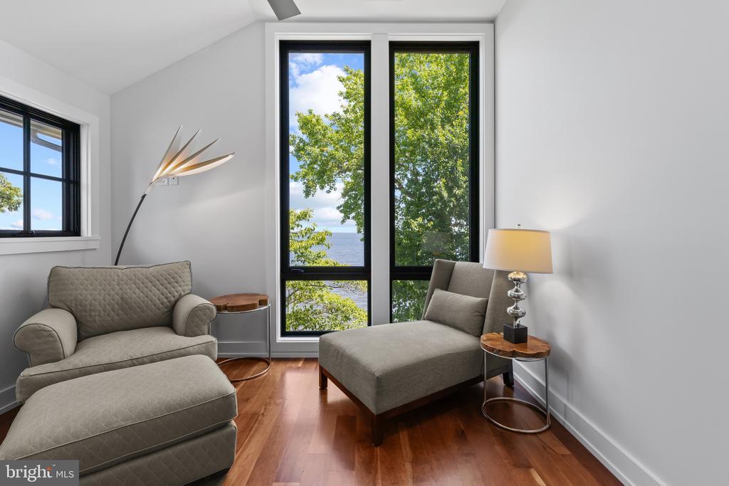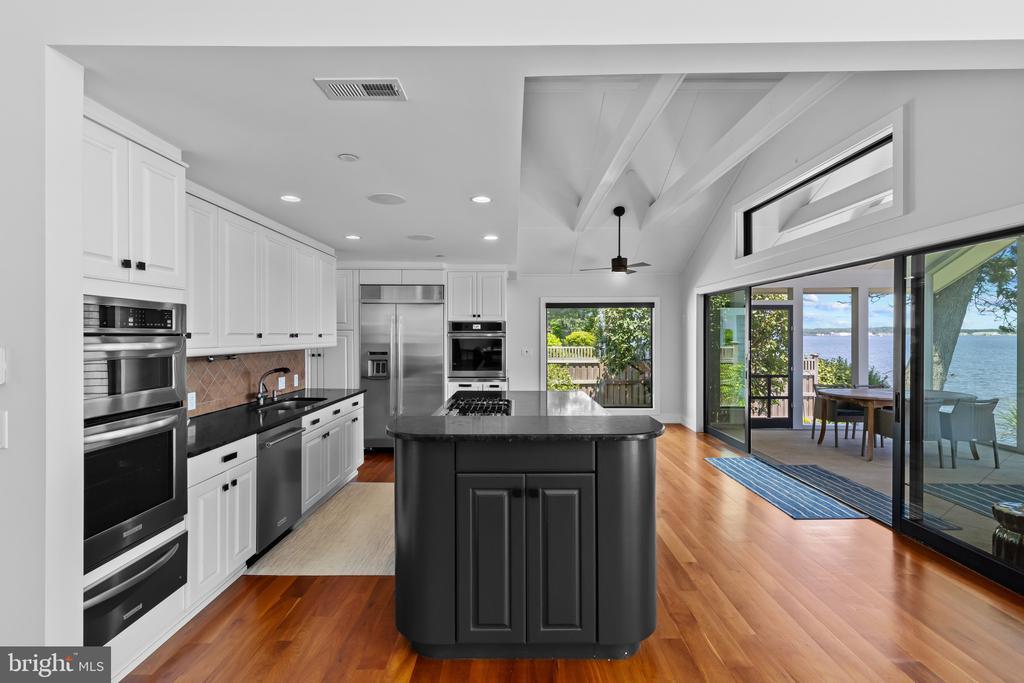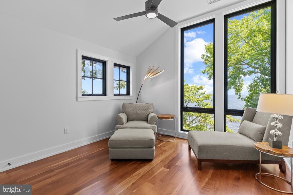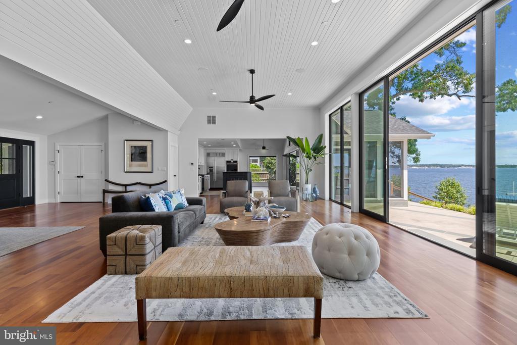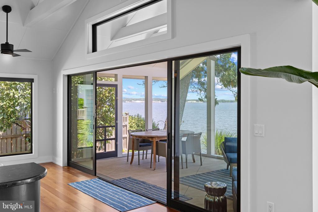 Life will never be the same. This slick and sleek coastal contemporary is beautifully designed for optimal waterfront living. With six bedrooms (FIVE ensuites), six full baths and one half bath, waterviews are visible from nearly all living spaces and bedrooms (and three bathrooms, to be fair). Witness the walls of windows on the first level, facing the Chesapeake Bay to the East and Severn River to the Northwest; one will never be bored with the marvelously incessant theatre of watercraft and nature. Enjoy morning coffee out on the open air patio, down at the pier, or in the large, screened porch. If weather is uncooperative, stretch out in the massive open living area, or retreat to one of two second floor water-facing rooms (one perfect for sitting room/office) to take in a new perspective. This home was fully renovated in 2017, sporting gorgeous custom light cherry 5" wood floors on the first and second level and showcasing unique custom, open staircases with black cable handrail system. There are two primary bedroom ensuites; one on the first floor featuring concrete shower floor, bathroom floor and cast concrete countertop. With generous, custom closets and oversized windows featured in each room, both residents and guests are guaranteed to render a five star rating for their stay and experience. This property is one block from 70 acres of walking trails and two blocks from the community beach, playground, picnic pavilion and firepit.