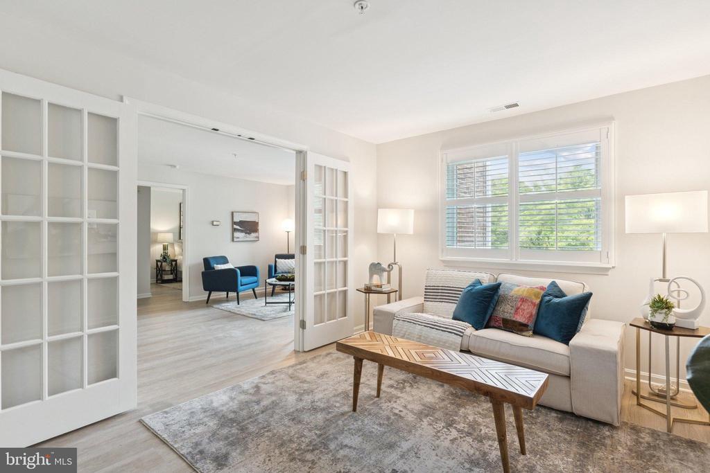 Welcome to your Annapolis retreat—Unit #211 is a bright and breezy 2-bedroom, 2-bath condo with a den, offering the largest floor plan in the community with over 1,150 sq ft. Located in the vibrant and active 55+ community of Heritage Harbor, this home is just steps from the South River and offers an exceptional blend of comfort, style, and resort-style amenities. Inside, you'll find an open layout with brand NEW wide-plank LVP flooring throughout, creating a seamless flow from the spacious living and dining areas to a private balcony perfect for relaxing. The den offers additional living space and has brand new French doors to extra privacy. The updated kitchen features white shaker cabinets, carrara-look countertops, and stainless steel appliances. The primary suite offers a walk-in closet, access to the private balcony, and a beautifully renovated en-suite bath. A full-sized NEW washer and dryer are included in-unit for added convenience, plus one assigned parking space also conveys with the unit. Other updates include fresh paint throughout including walls, ceiling, and trim. The building has recently installed a new elevator and carpet throughout the hallway. Residents of Heritage Harbor enjoy access to a wealth of amenities including pools, tennis and pickleball courts, a 9-hole golf course, kayak launch, boat slips on the South River, a clubhouse with dining, and even RV and boat storage on-site. Whether you're enjoying a quiet morning on the water or an active afternoon on the courts, Unit #211 offers the perfect balance of relaxation and recreation in a picturesque Annapolis setting.