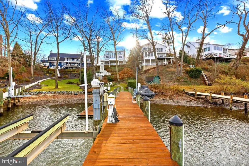 This beautiful waterfront home is back on the market — just in time for the holidays!! Discover timeless coastal elegance in this beautifully renovated 4BR/4BA Cape Cod waterfront home in the sought-after Linstead community. Nestled on a manicured 0.22-acre lot with 40’ of water frontage on Yantz Creek via the Severn River, this property offers a private pier with 5 ft MLW, 20,000-lb boat lift, jet ski lift, floating dock and a boathouse with rooftop deck—perfect for waterfront entertaining. Originally built in 1971 and fully transformed in 2016, this home boasts over 3,000 sq ft of refined living space. The open-concept main level features vaulted ceilings, hardwood floors, coffered dining room ceilings, and walls of windows that showcase panoramic water views. The chef’s kitchen is a showstopper, featuring custom cabinetry, quartz countertops, a La Cornue gas range, and a cozy breakfast nook. Upstairs, enjoy 3 spacious bedrooms and 2 full baths, including a luxurious primary suite with a marble double vanity, soaking tub, glass shower, and walk-in closet. A main-level 4th bedroom or office with an adjacent full bath adds flexibility. The finished lower level includes a rec room, 2nd fireplace, a full bath, a laundry, and a 2-car garage with EV charging. Enjoy outdoor living with a covered patio, boathouse entertaining area, and access to Linstead’s private beaches, pier, pavilion, playground, and community events. Minutes to Severna Park, Annapolis, and commuter routes—this is waterfront living at its finest.