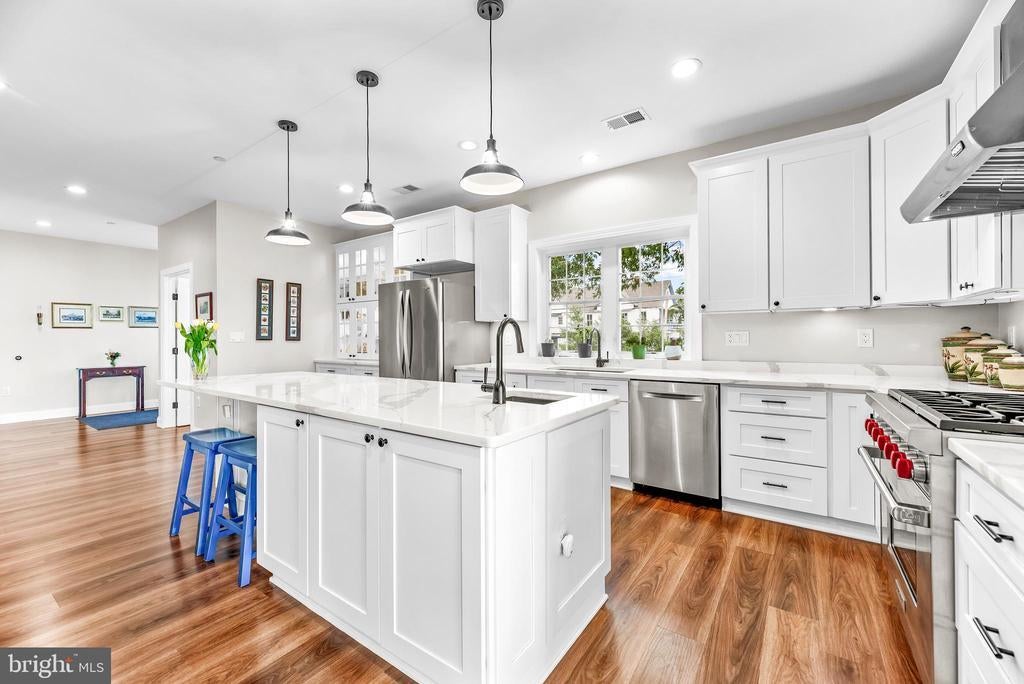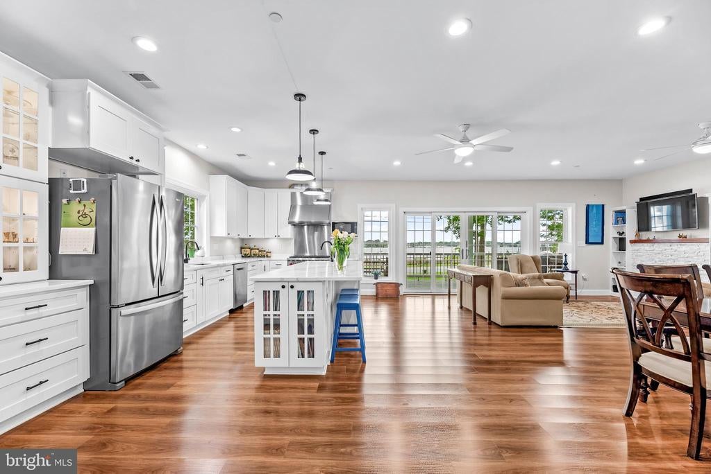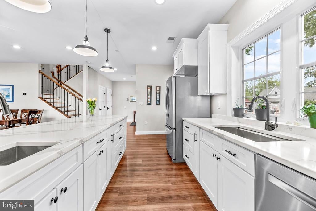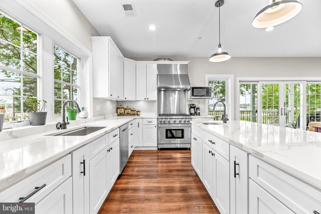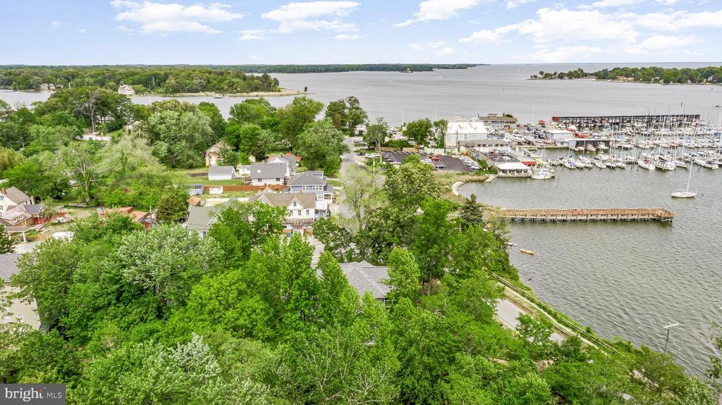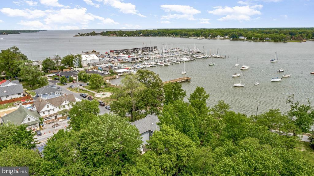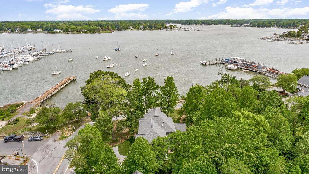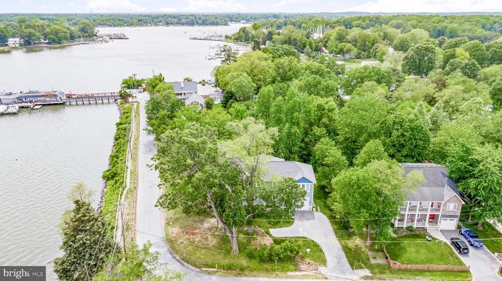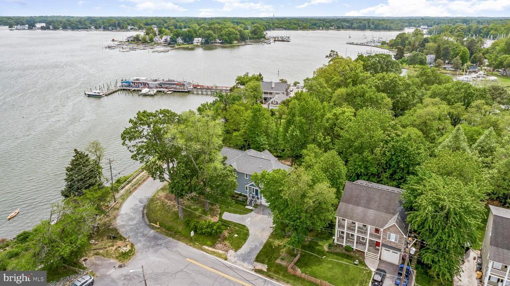 LOCATION, LOCATION, LOCATION!! Be prepared to be blown away as you enter this incredible Custom Built ONE OF A KIND GEM with expansive views of the West River. With 5 bedrooms, 3.5 baths, over 3,300 square feet of living space, and an attached 1-car garage equipped with a built-in EV Charger. This rare opportunity offers luxury in an unmatched location. Situated on .56 acres, the home is just a short walk to some of Southern Anne Arundel County’s best restaurants, shopping, and marinas—with stunning views of the boats and water in every direction. Feel like taking a swim? Purchase a pass and enjoy the marina pool, which is only a two-block walk from the home! Sellers installed a mooring slip so you can keep your sailboat front and center! There are currently two deeded boat slips for sale at the Marina just steps away starting at $11,000. For $11,000 you could have a deeded protected slip and access to the Marina pool and amenities! Additional details can be provided upon request. No details were spared in the construction of this custom home! Inside, you are greeted by a cozy foyer equipped with built-ins. A half bath is just to your left as you enter. Gorgeous LVP flooring flows into the beautifully appointed kitchen featuring white shaker cabinet, quartz countertops, and luxury appliances. The great room, kitchen, and dining combination make for the perfect open concept for entertaining. The main-level primary suite includes walk-out access to the full-length covered porch, perfect for morning coffee with a view. The ensuite bathroom is well appointed boasting tile flooring, a custom vanity loaded with storage, a marble vanity top, luxurious fixtures, and a show stopping wet space that includes both a large shower and a jetted tub! The laundry room includes a large pantry area and built-ins with a large mop sink and a small wine cooler. Upstairs offers four more large bedrooms, two well-appointed bathrooms, an office, and a separate living area complete with a wet bar, and private access to the upper-level porch—perfect for extended guests or multi-generational living. The home was built with luxury, energy efficiency, and eco-friendliness in mind. Outside you will find several rain gardens that are as functional as they are beautiful. The grounds are meticulously landscaped which draws in the eyes of just about everyone who passes by. The public pier and boat ramp across the street make it easy to drop in your small tender boat to access your mooring slip! The lifestyle provided by the location of this home, the custom craftsmanship, and the expansive west river views make this home truly one of a kind. You will NEVER find another one like it! Set up a tour to see this home ASAP before this opportunity passes you by!