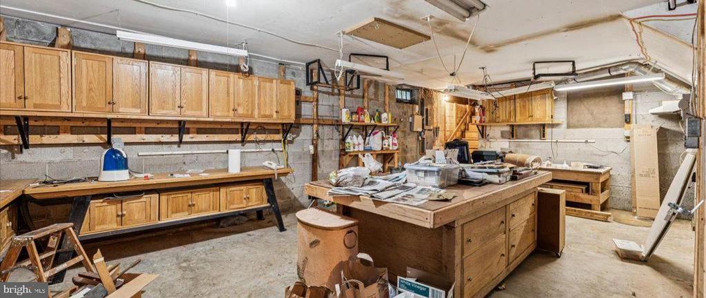 Connecting Stairway, Poured Concrete, Rear Entrance, Unfinished, Workshop