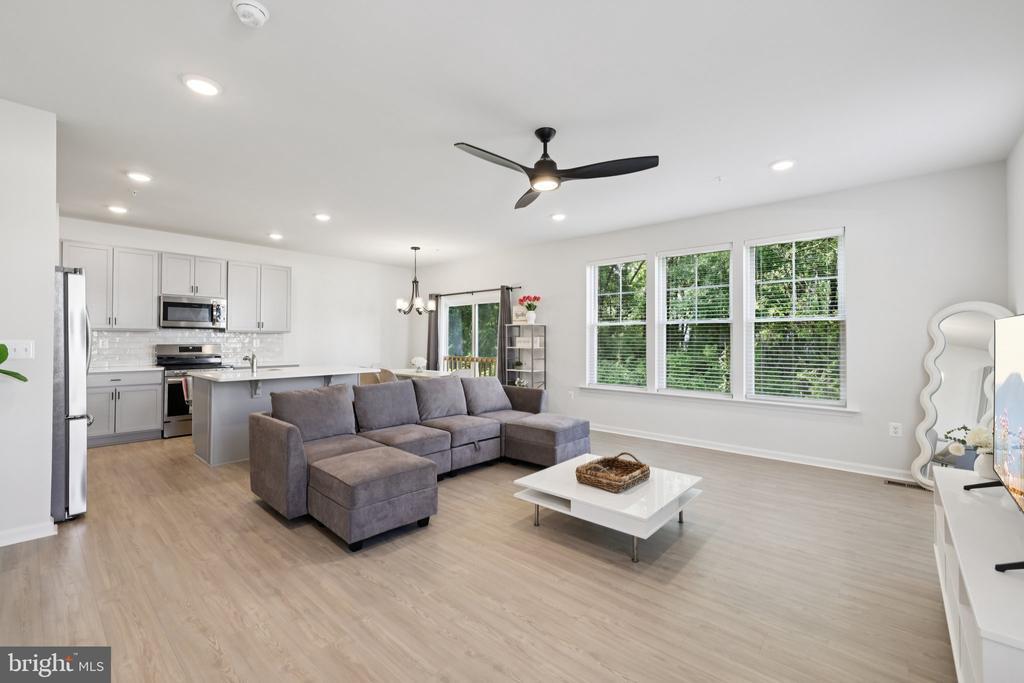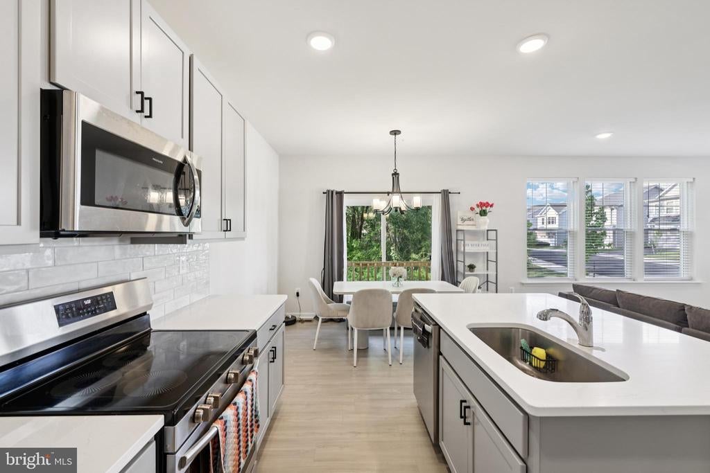 Welcome to Woodside Glen living at its finest! This stunning 5-bedroom, 3.5-bath home combines modern comfort with timeless craftsmanship. The solid concrete foundation is crowned by durable 30-year architectural shingles, while the attached 2 car garage with keyless entry and a electric car plug in access with a paved asphalt driveway add daily convenience. The exterior showcases maintenance-free vinyl Dutch lap siding, decorative exterior lighting, seamless gutters and downspouts, plus two hose bibs and exterior electric outlets for ultimate functionality. Step inside to discover soaring 9-foot ceilings on the main level, elegant oak railings, and a sleek 6-foot sliding glass door that fills the space with natural light. The chef-inspired kitchen is a true highlight, featuring luxury 42" Craftsman-style soft-close cabinetry, gleaming granite countertops, and a full suite of stainless steel appliances, including a side-by-side frost-free refrigerator with icemaker, a 30" self-cleaning electric smooth-top range, four-cycle dishwasher, and an oversized stainless steel sink with garbage disposal. Whether hosting guests or enjoying quiet evenings with family, this home has the space, quality, and thoughtful details to make every day exceptional. Lawn has been reseeded!