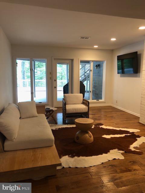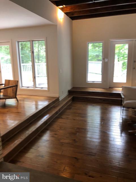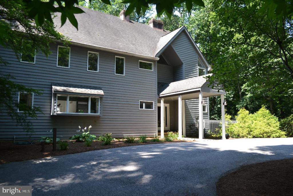 Welcome home to this one of a kind, custom built home in the desirable Huntington Woods. This contemporary beauty is located on a private, wooded lot with an extended circular driveway leading to the entrance. The property is situated on a 1.45 acre lot and is adorned with an over abundance of hardwood trees. The rear of this home is offers windows and glass doors on every floor which gives a view of the great outdoors including the in ground pool from most rooms. The massive primary suite has been improved with Hickory hardwoods and is adorned with a Palladium window, fireplace, walk in closet, sitting area, and vaulted ceilings. The open bridge from the upper level gives a view of the expansive great room and foyer below. Located on the main floor, the great room has wood beamed ceilings and a floor to ceiling fireplace. The main floor office offers built in's and access to the deck. All lower level rooms have walkout to the patio and pool deck. located on the lower level, you will find an additional bath, one additional bedrooms a family room with the third fireplace, and the laundry room. Floors on the main and upper level have been improved with Hickory Hardwood , all Kitchen appliances except refrigerator replaced in 2025 and bathrooms updated 2022. This home is centrally located between Annapolis, Washington DC, and Baltimore. It is approximately 15 minutes from Annapolis. The home will be sold in as is condition .