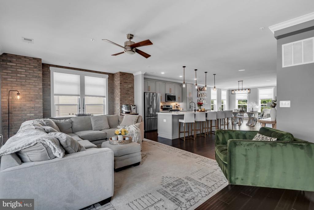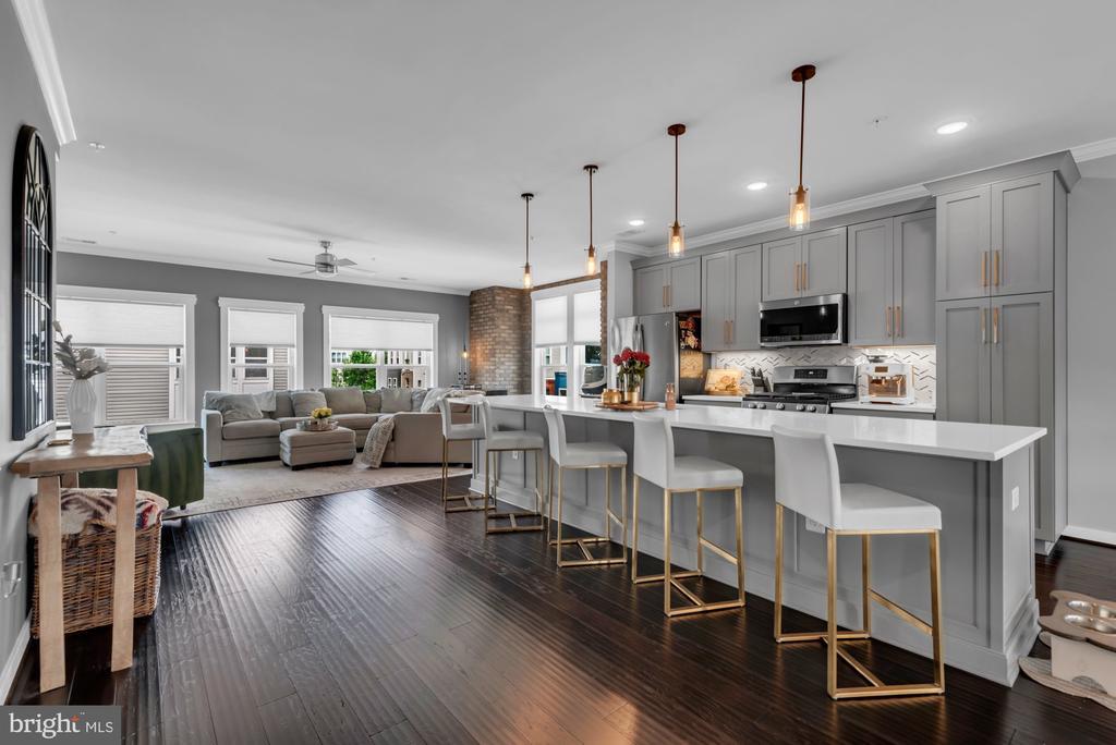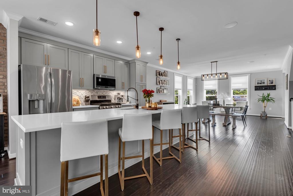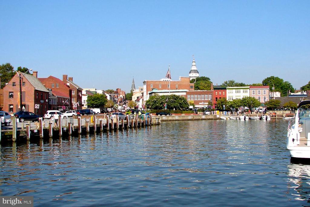 PRiCE IMPROVEMENT! COSMOPOLITAN ANNAPOLIS TOWNHOME BOASTING SKYLINE ROOFTOP DECK! ADMIRALS SQUARE DUAL ASPECT CORNER UNIT offering 2 levels of living with upscale detailing and finishes! 9-Foot ceilings, terrace-like walls of windows, a turnkey urban neutral palette, brick accent walls, and upgraded flooring to enhance any décor. The entry staircase will take you into an open concept Dining area and chef’s choice restaurant-inspired dining bar Kitchen showcasing sleek quartz & stainless steel surfaces. Adjoining the kitchen is a glass-encased living room with a gas fireplace to further enhance ambiance. Upstairs you’ll find a Generous Primary Bedroom Suite with 2-sided walk-in closet w/organizers & luxe spa Bath! The upper level also has two Additional bright ‘n’ airy Bedrooms (flexible use spaces) and a Full Bath with a double vanity. Stairs ascend to a PANORAMIC ROOFTOP VIEW DECK for alfresco dining and entertaining beneath sun & stars! Extended, rear access parking pad & 1-car garage. Minutes to Downtown City Dock harbor, the USNA, Westfield/Towne Centre Malls, eclectic restaurants & crab cake eateries, marinas/boating, and commuter RTs 50/97/2. NYC SOPHISTICATION IN TANDEM WITH RELAXED BAY LIVING!
